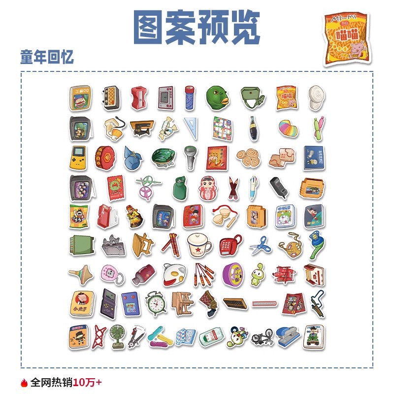 童年回忆贴纸卡通可爱创意治愈手账咕卡咕背封口贴手机壳diy防水