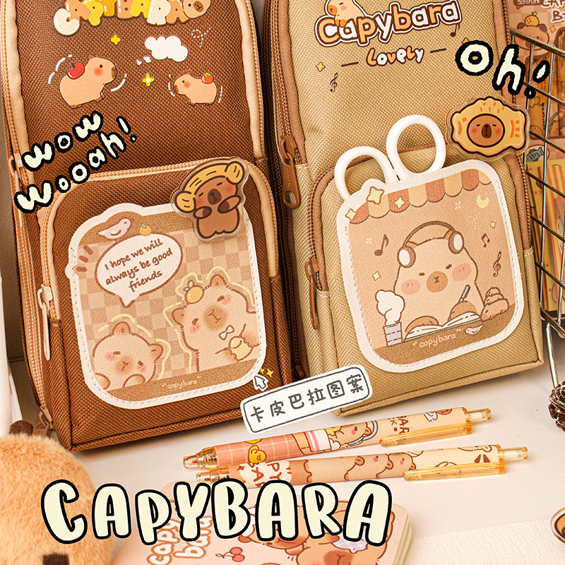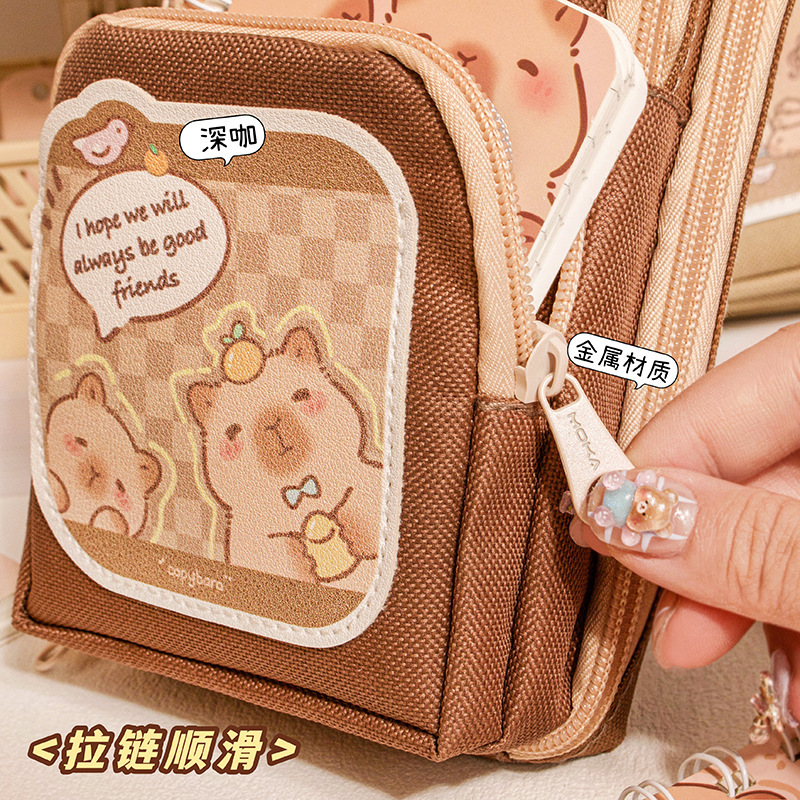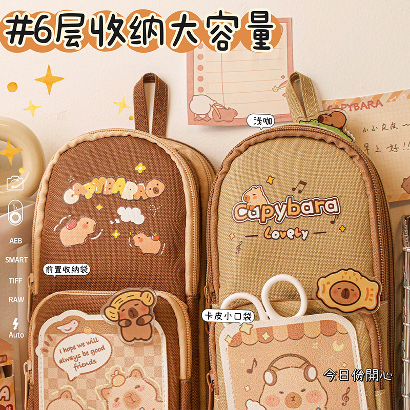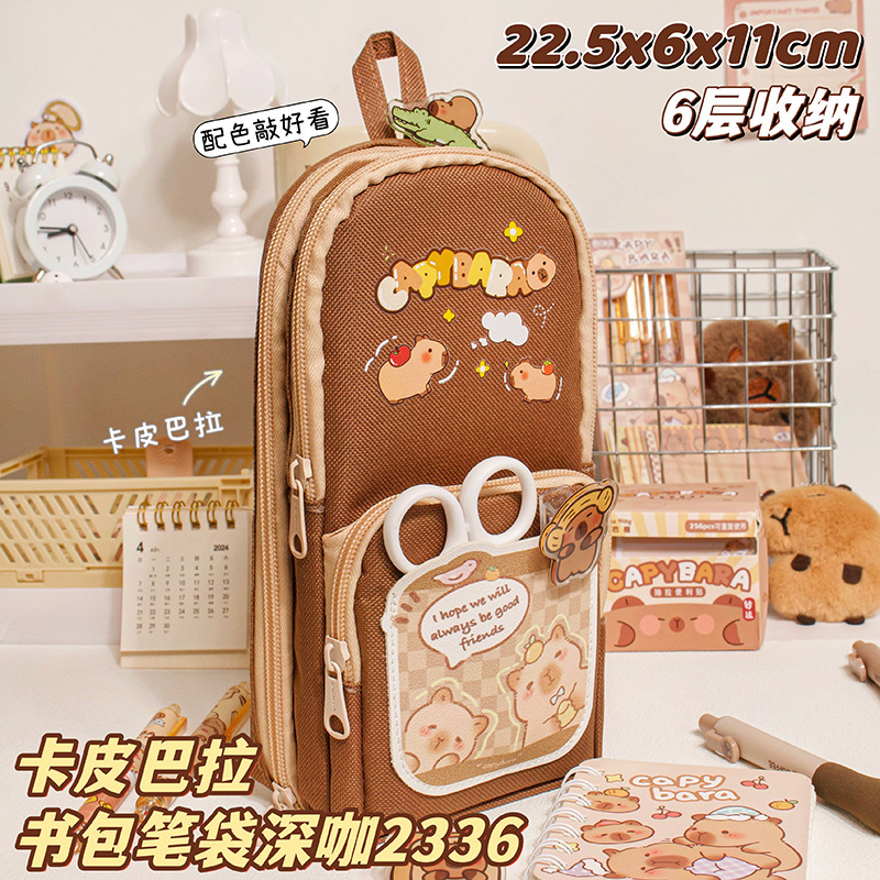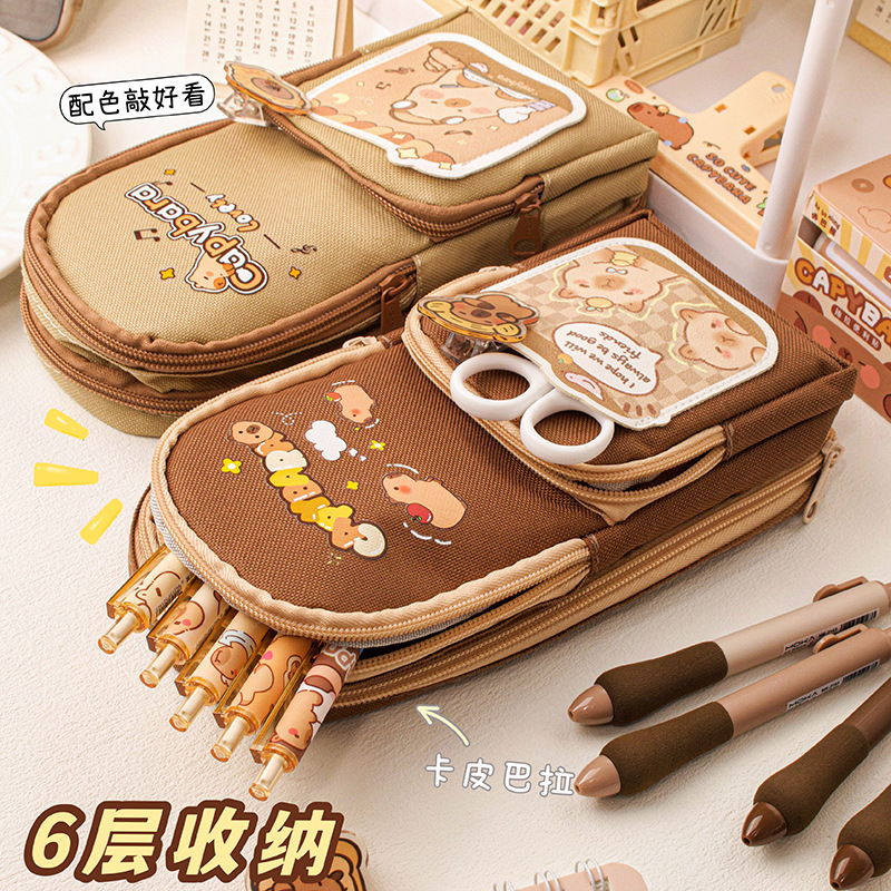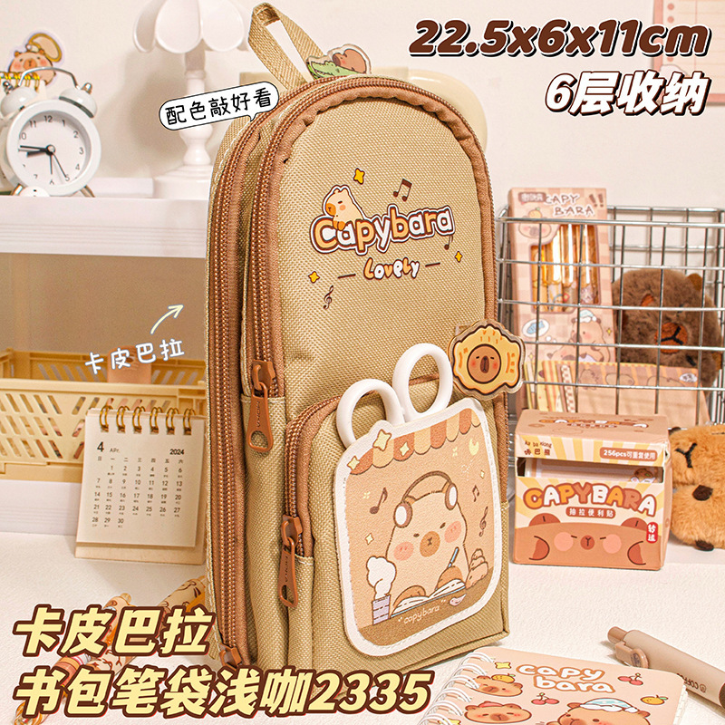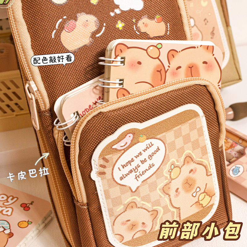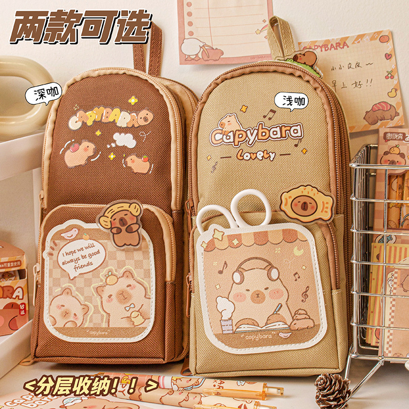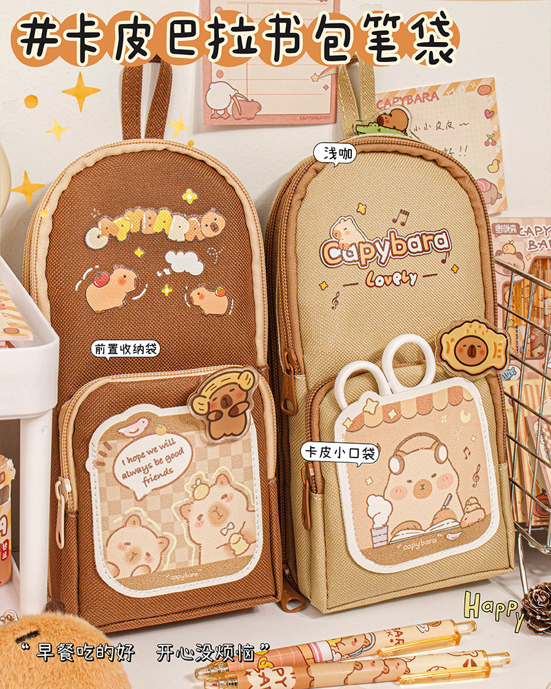 卡皮巴拉卡通书包笔袋大容量小众铅笔袋耐脏儿童小学生文具盒帆布