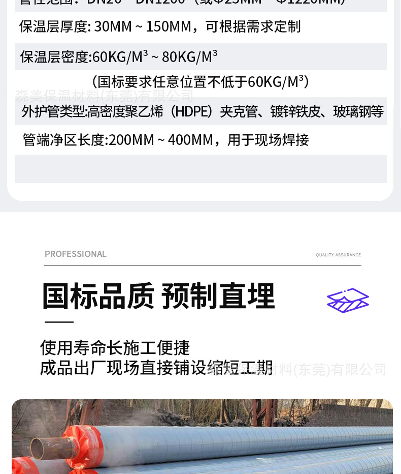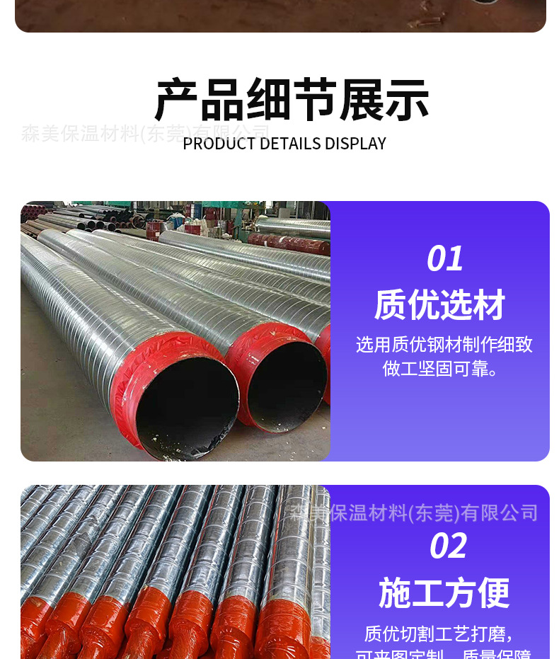 热力彩钢镀锌铁皮外护层聚氨酯螺旋钢管暖气发泡保温管