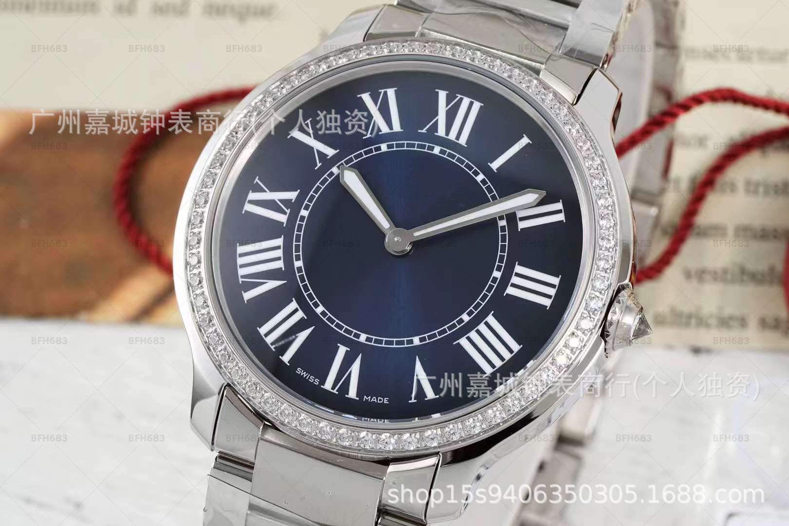 AF卡家伦敦钢带镶钻手表女士复古手表女款瑞士石英表鳄鱼皮带钢带