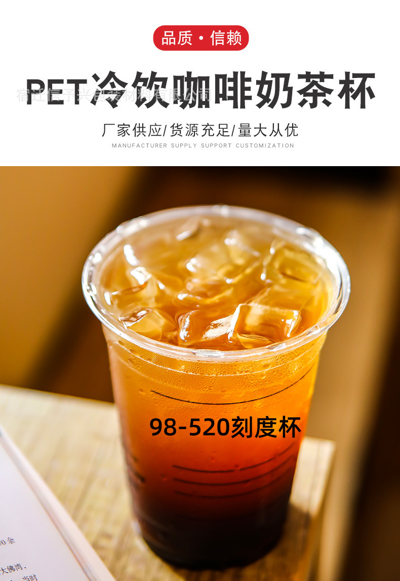98刻度杯一次性奶茶杯商用咖啡打包杯轻奢高级感冷饮杯饮品果汁杯
