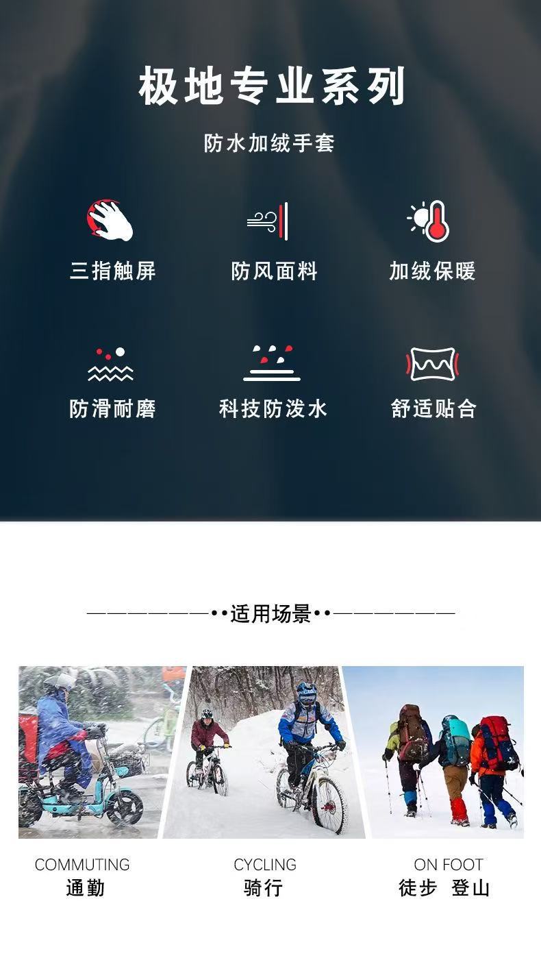 冬季手套骑行防水保暖加绒加厚户外骑车防风滑雪触屏男女款 A15-M