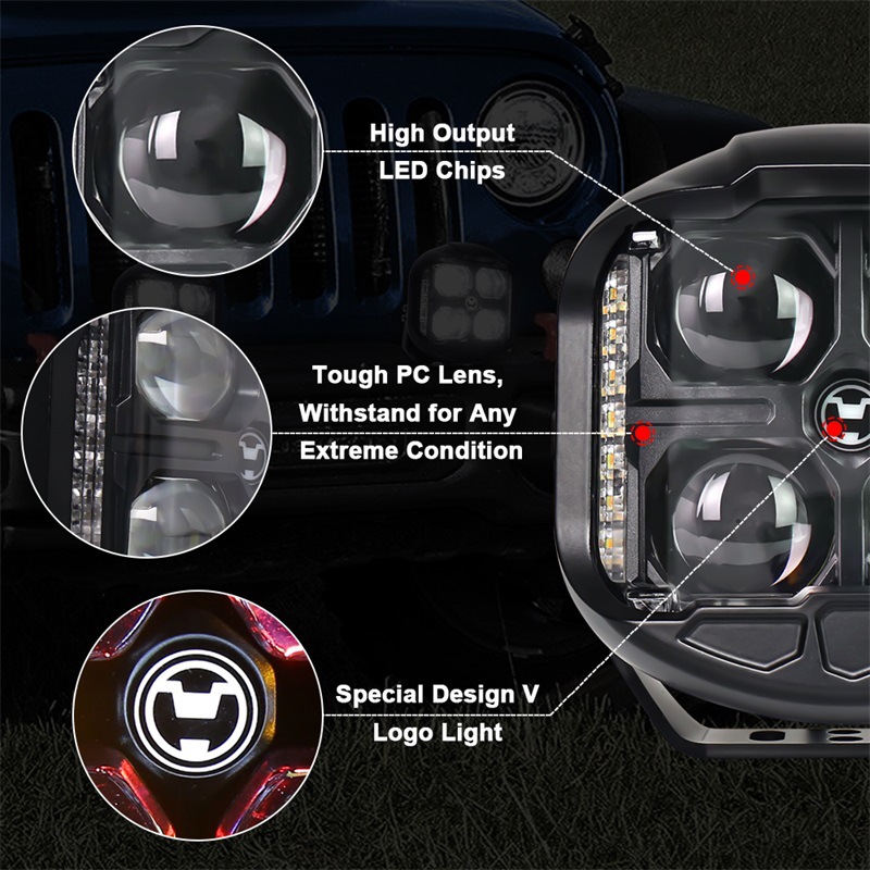 产品功能:主灯、DRL日行灯、背景灯、频闪转向灯、车标灯