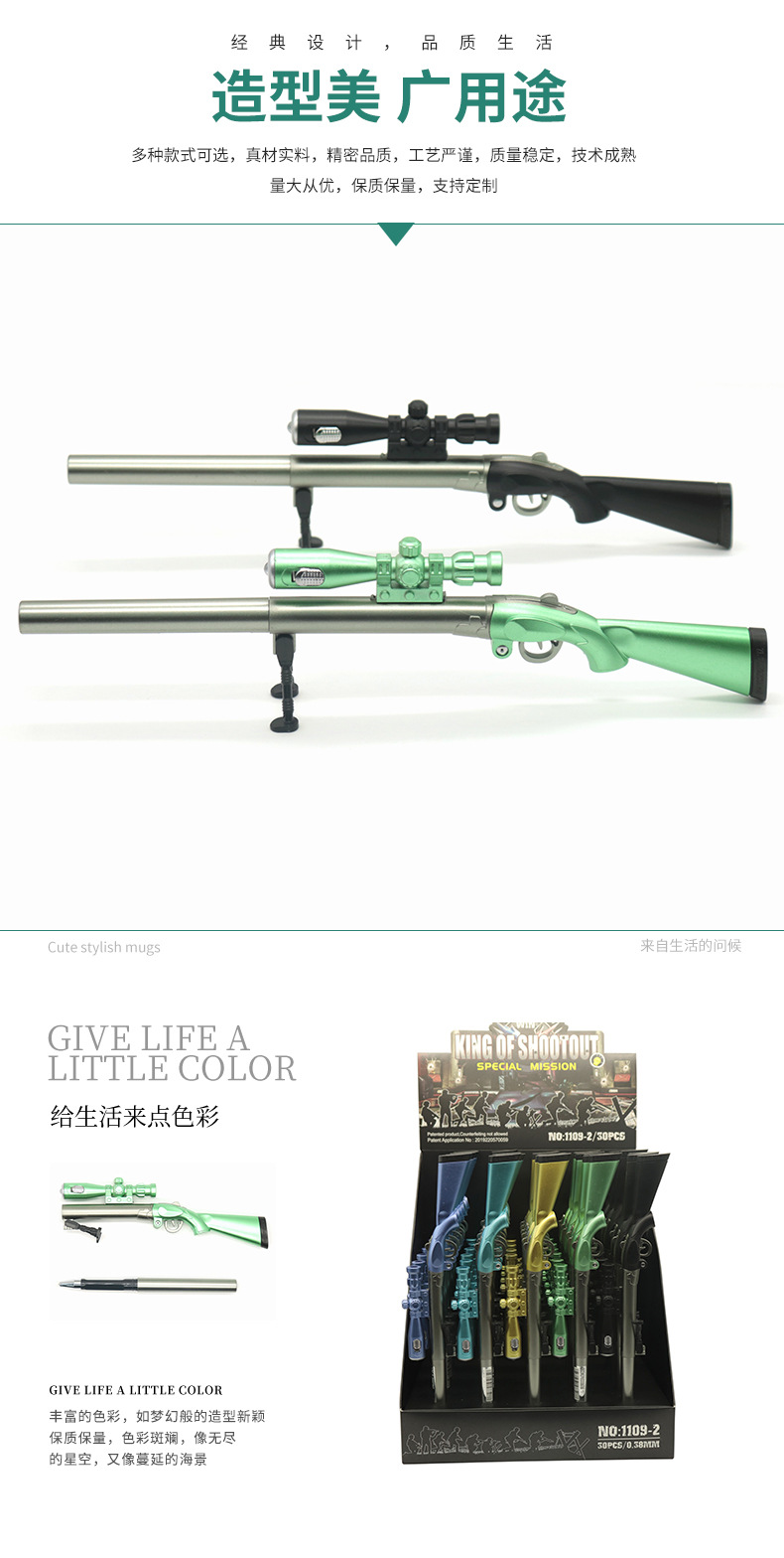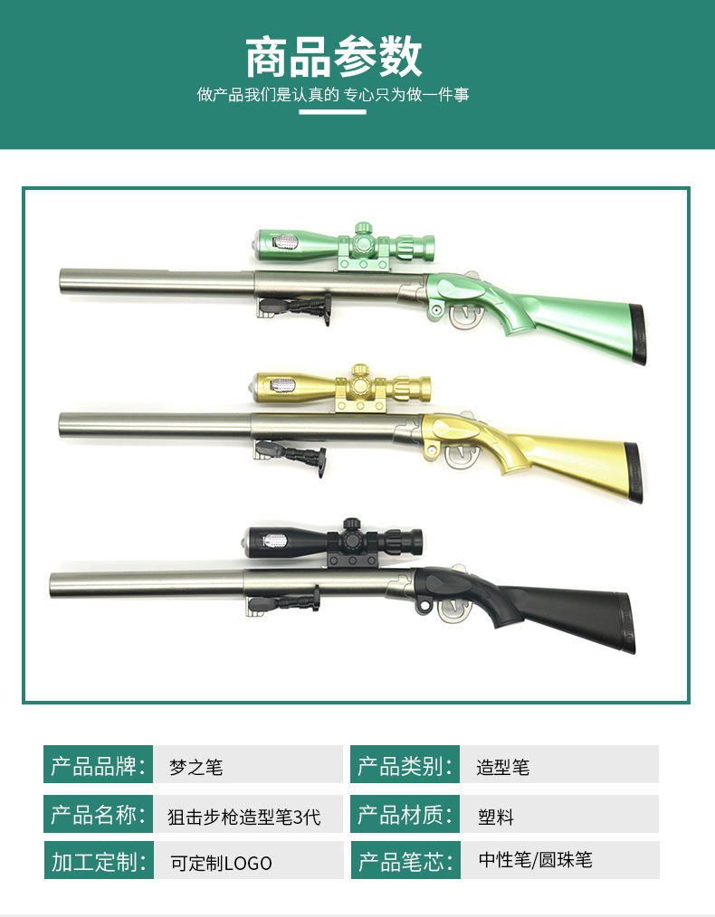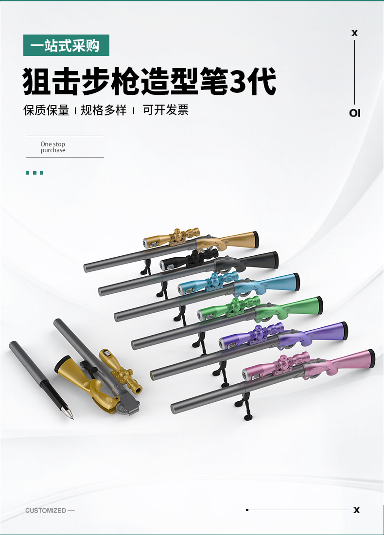 趣味学习用品狙击步枪造型中性笔带灯可发光圆珠笔创意diy签字笔