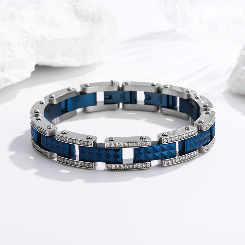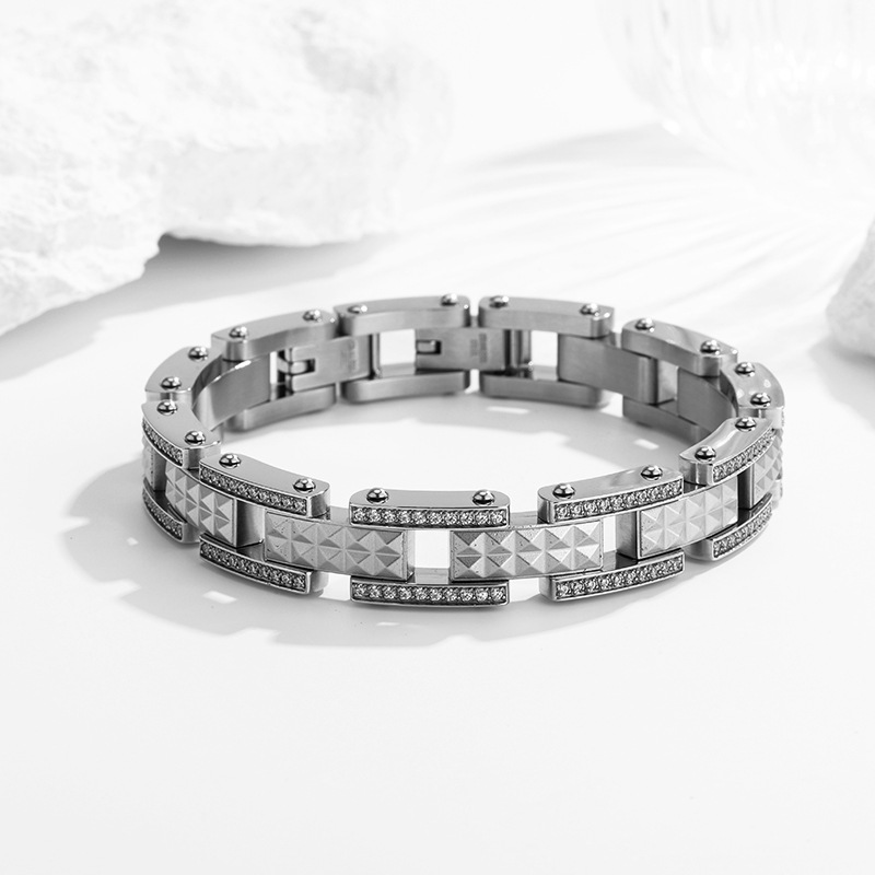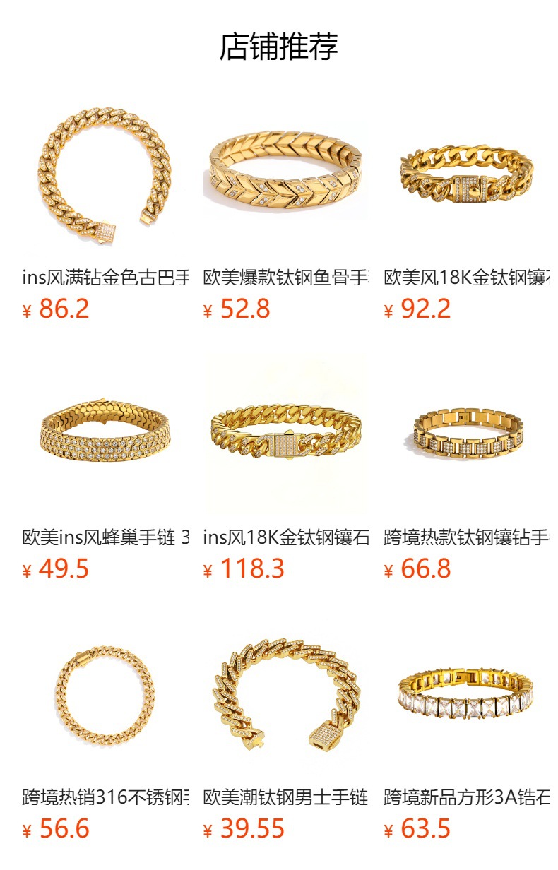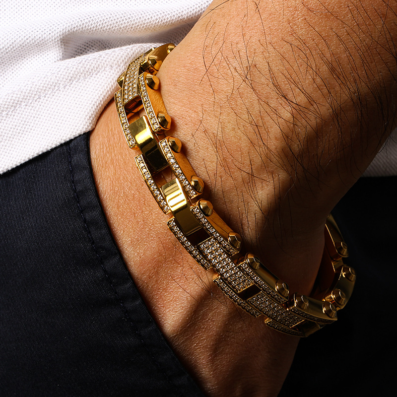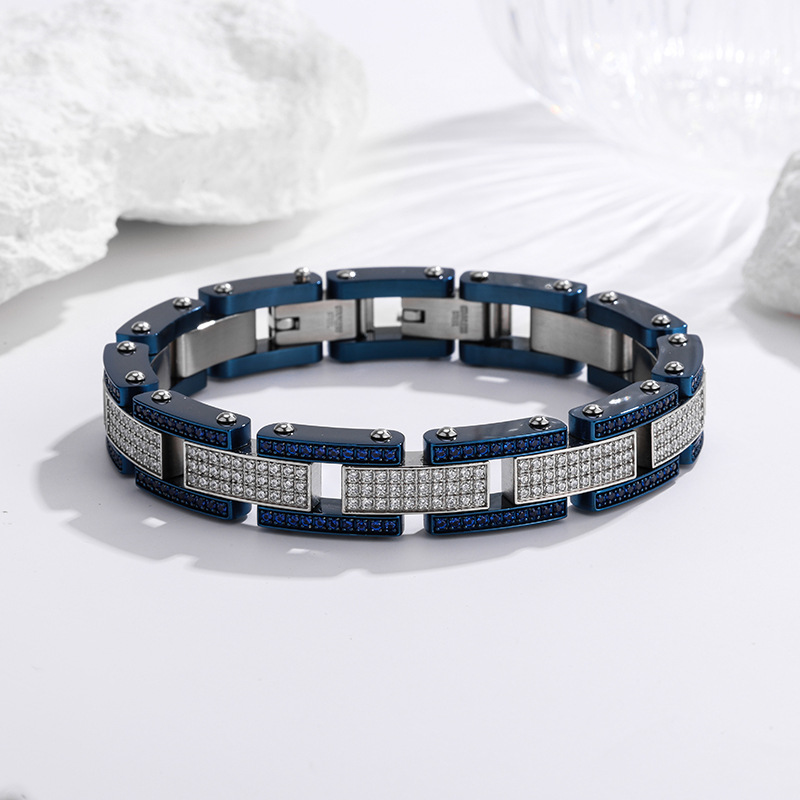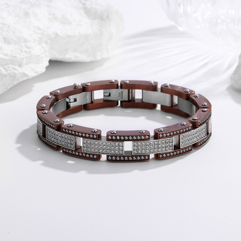 源头工厂欧美钛钢镶钻手链 316不锈钢真空18K古巴链 男士手链精品