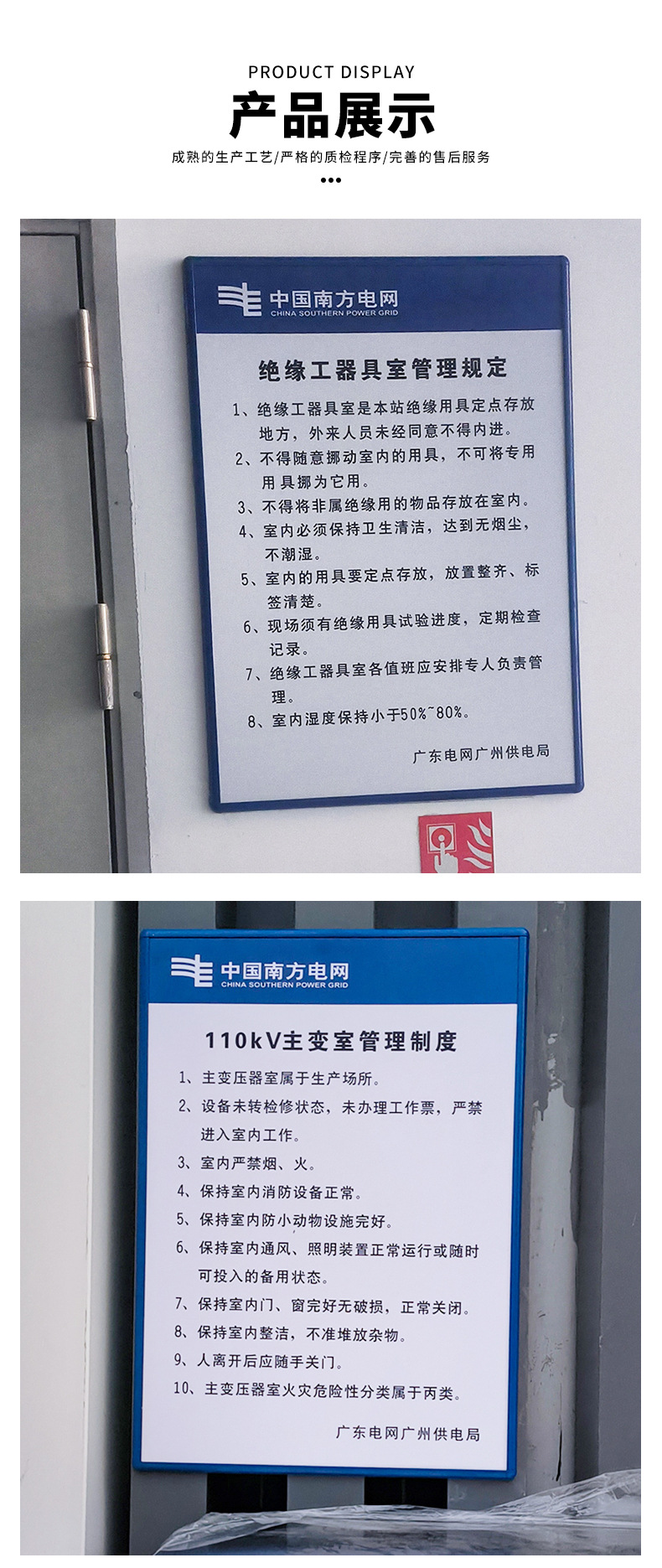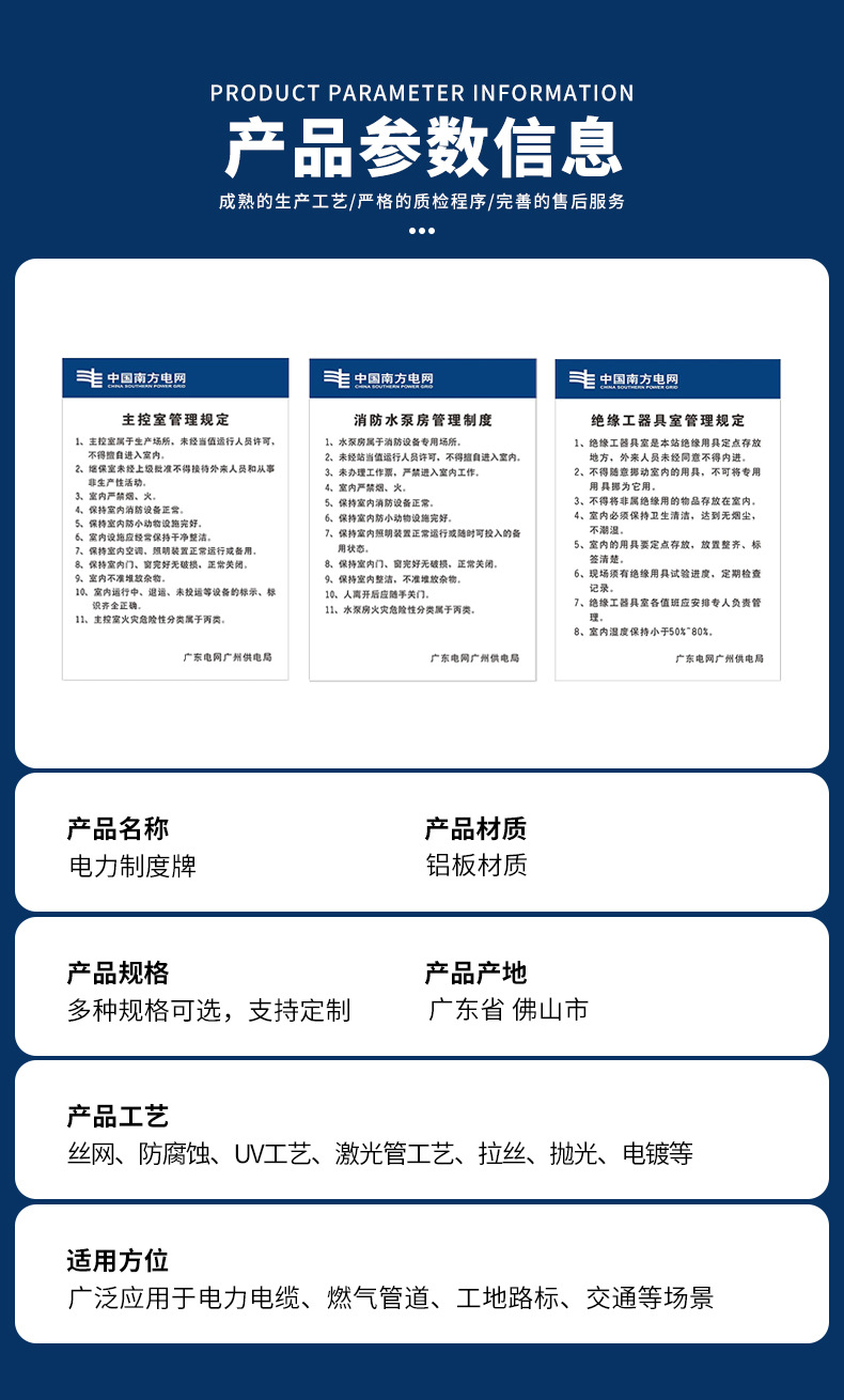 中国南方电网电力制度牌安全标识牌标示贴铝板反光管理规则新国标