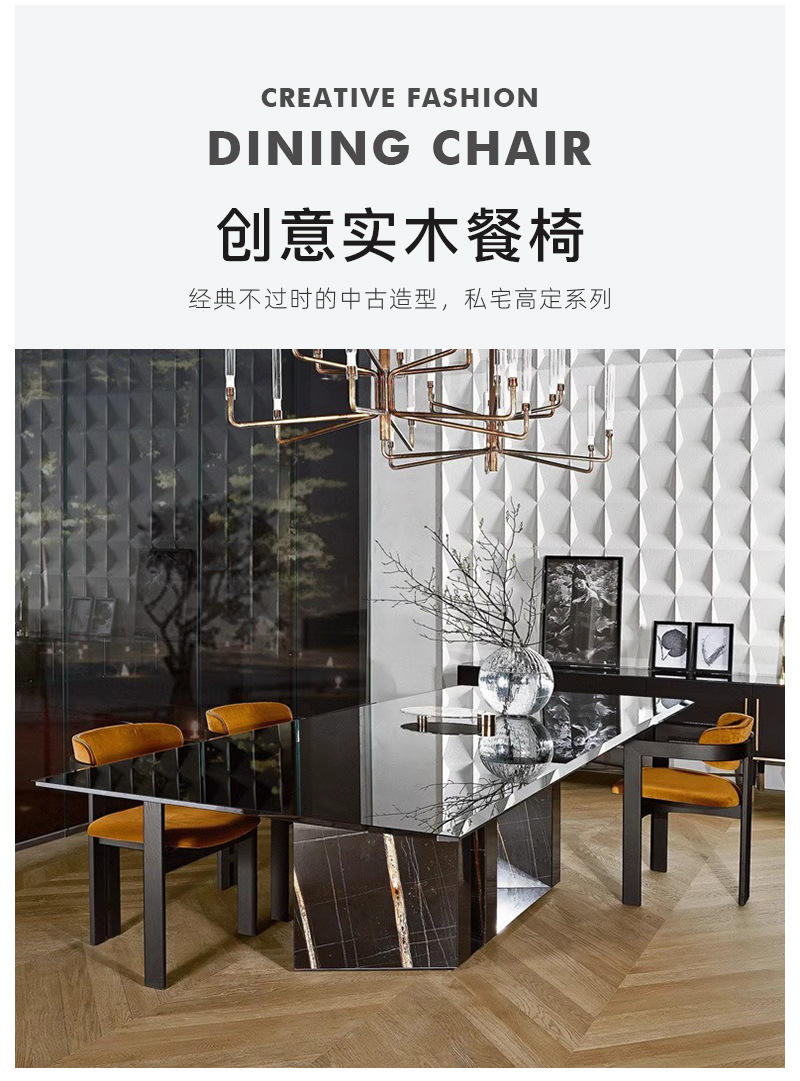 定 制实木餐椅家用餐桌椅简约靠背椅酒店商务洽谈椅设计师扶手椅