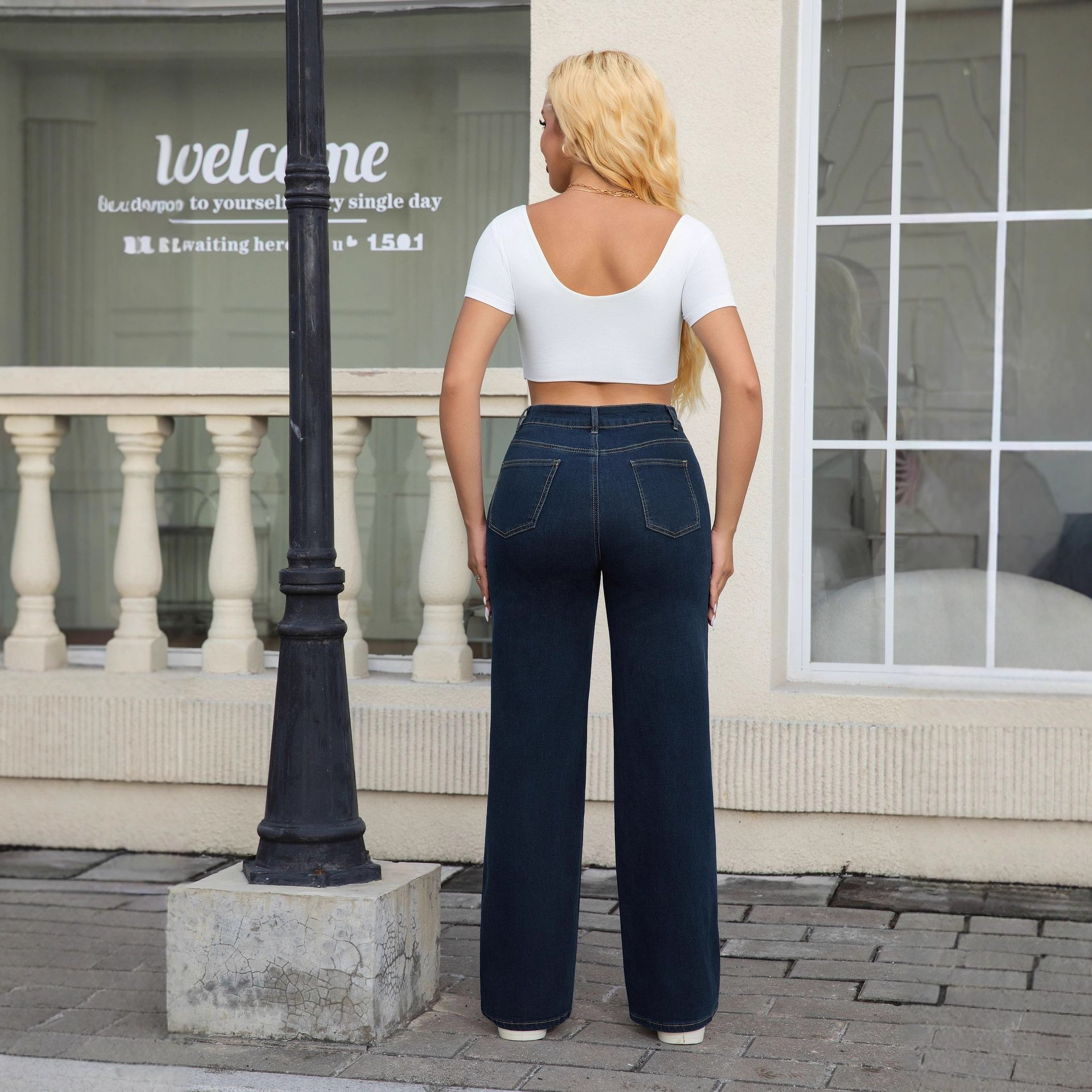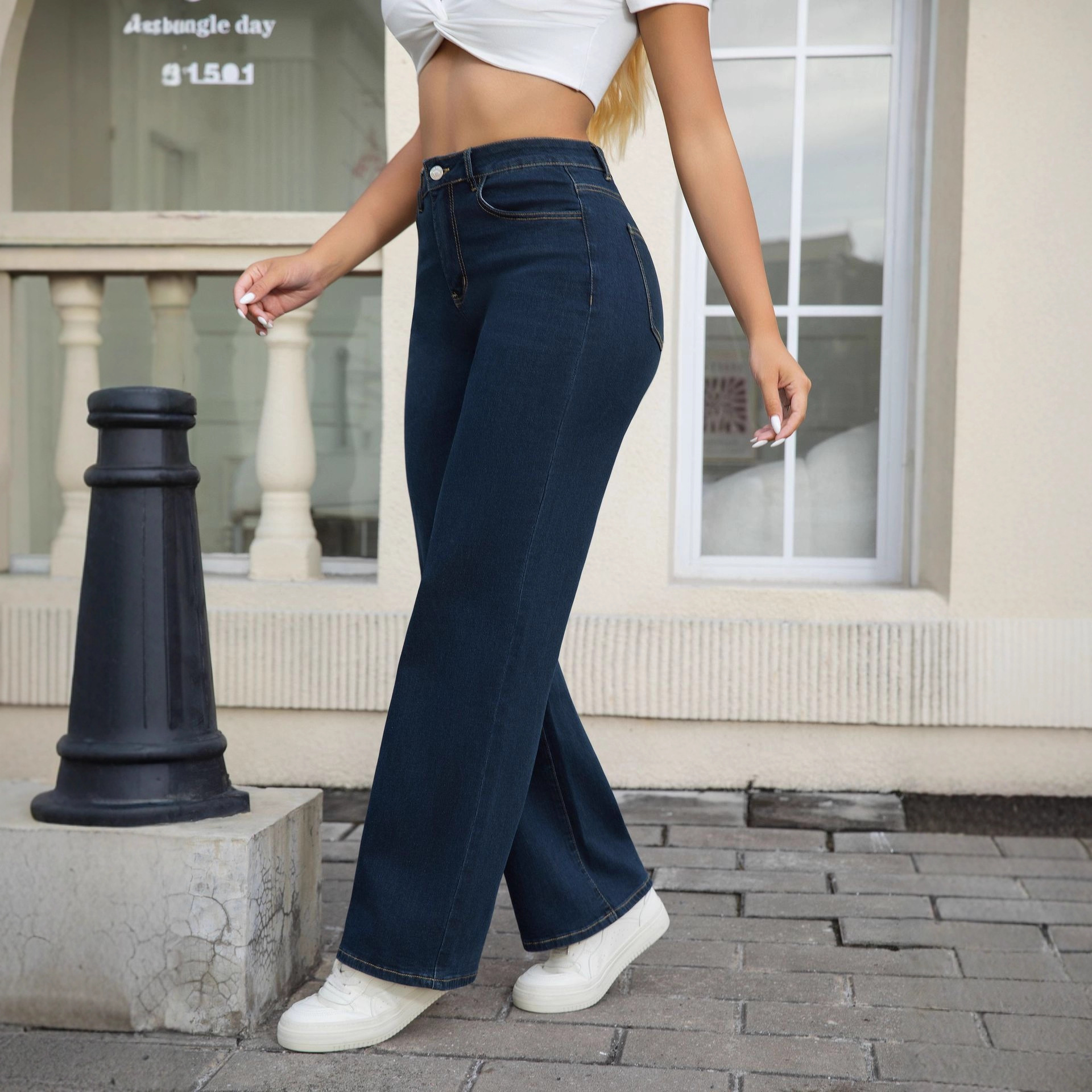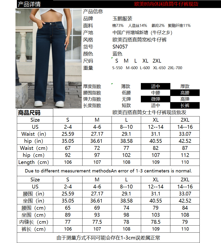 跨境亚马逊速卖通秋季做旧水洗新款牛仔裤2025高腰阔腿牛仔裤女