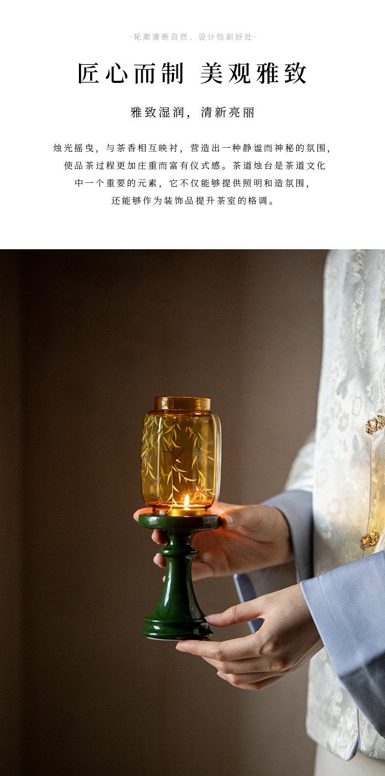 柳燕嬉春明清烛台烛台灯禅意茶室氛围灯家用落地蜡烛灯装饰摆件