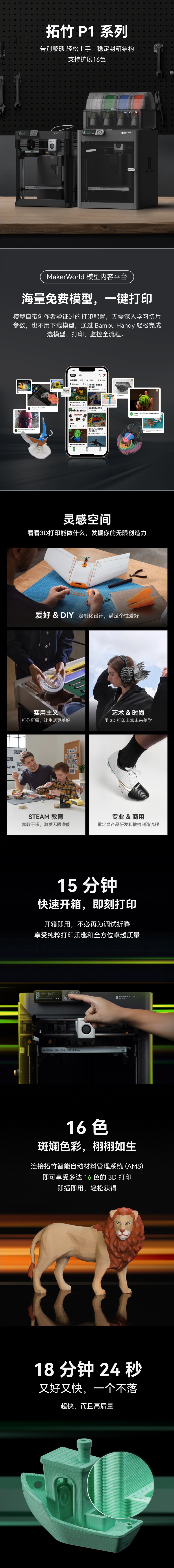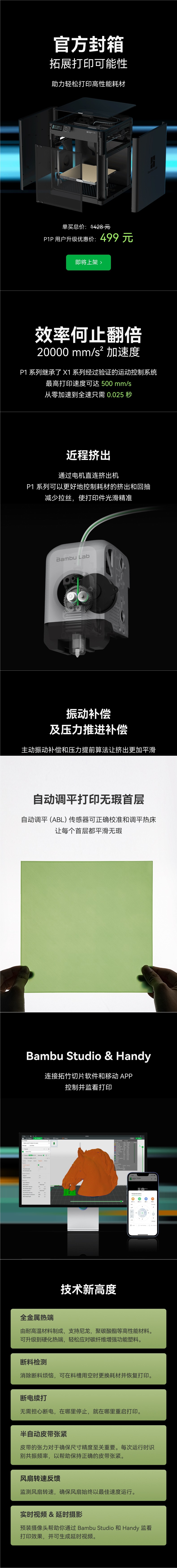 P1系列 3D打印机 桌面家用FDM 全自动调平 大尺寸多色高速