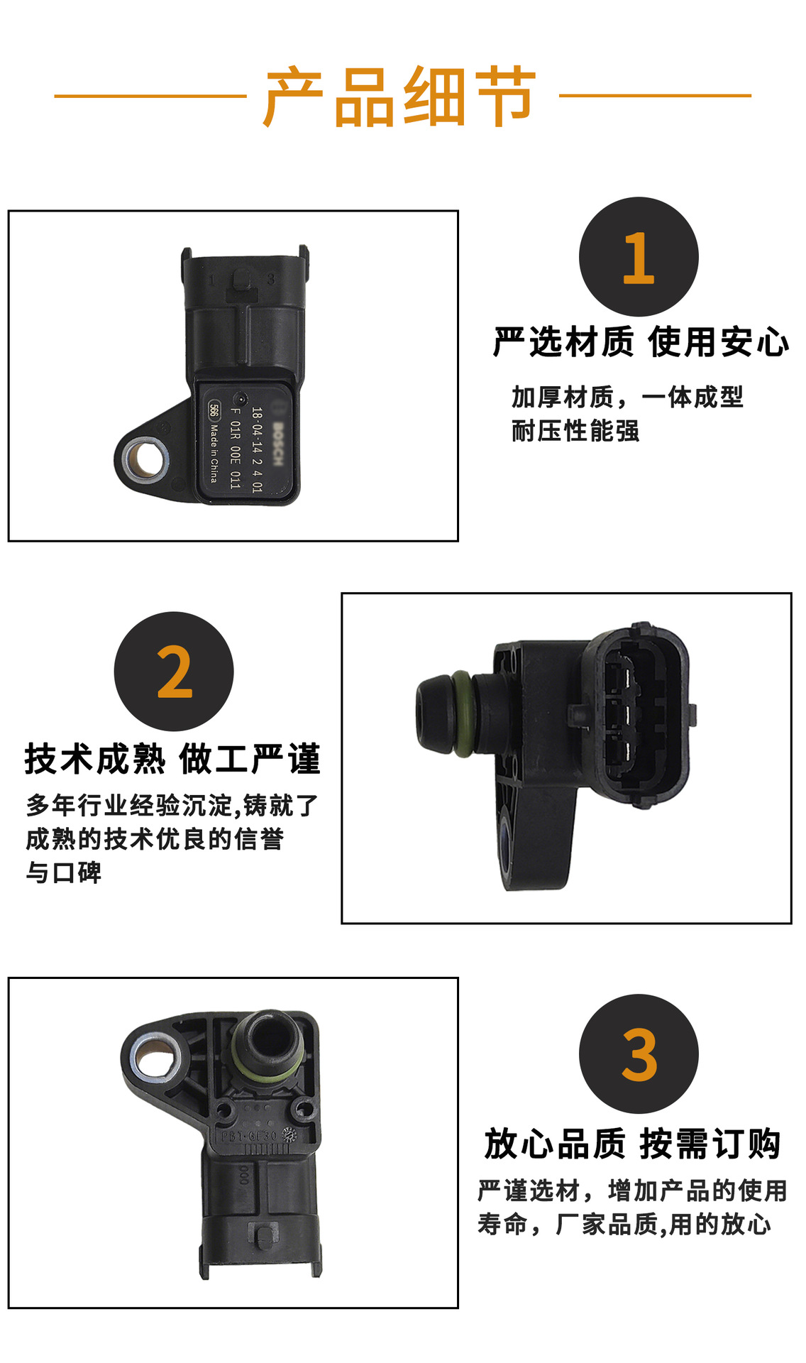 BOCH歧管绝对压力地图传感器F01R00E011进气压力传感器适用吉利