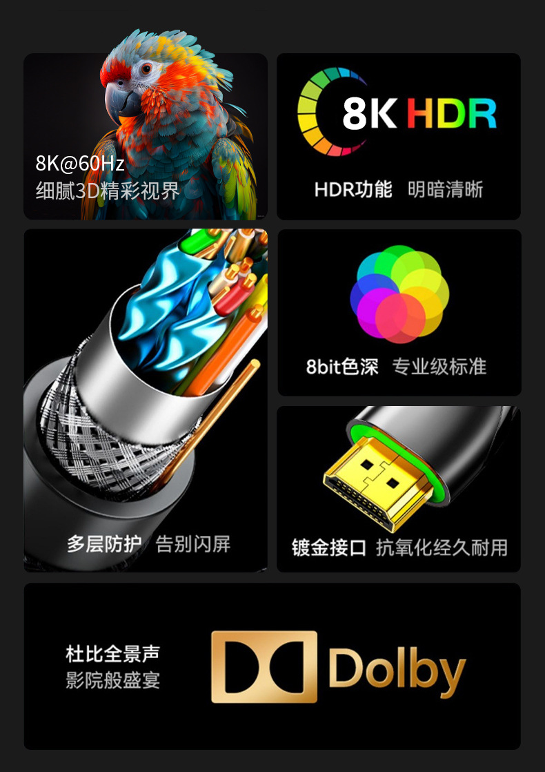 [ 商业 ] HDMI线2.1版 8K60Hz高清视频连接线电脑电视投影仪3D数字连接线