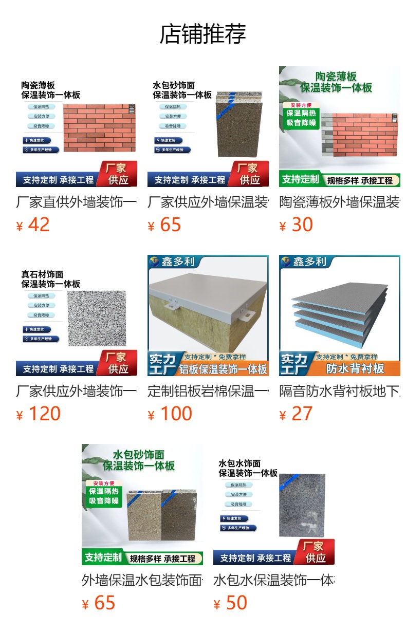 厂家供应外墙保温装饰一体板水包砂挤塑板岩棉外墙装饰一体板