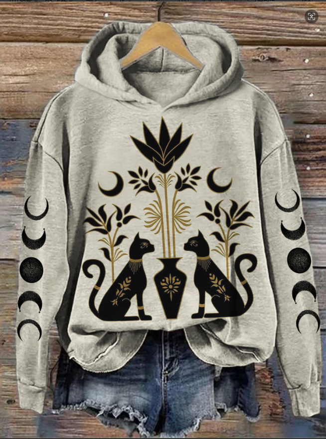 2025欧美冬季圣诞快乐带口袋连帽衫批发男女宽松套头数码印花卫衣