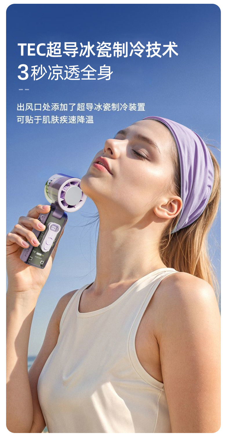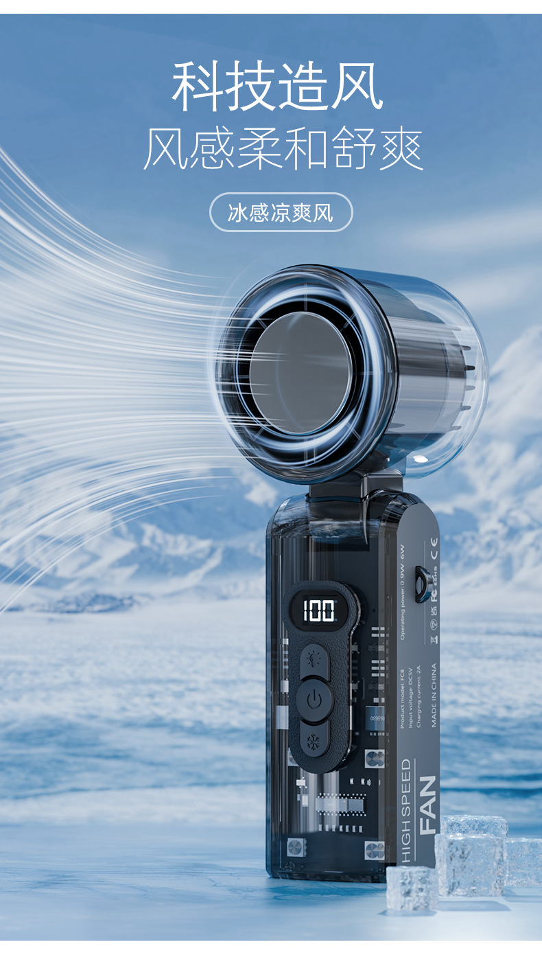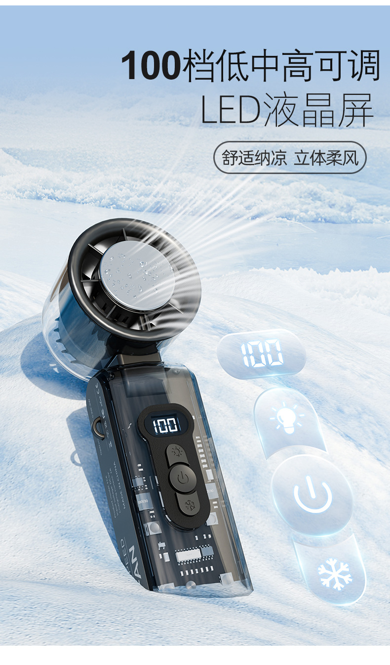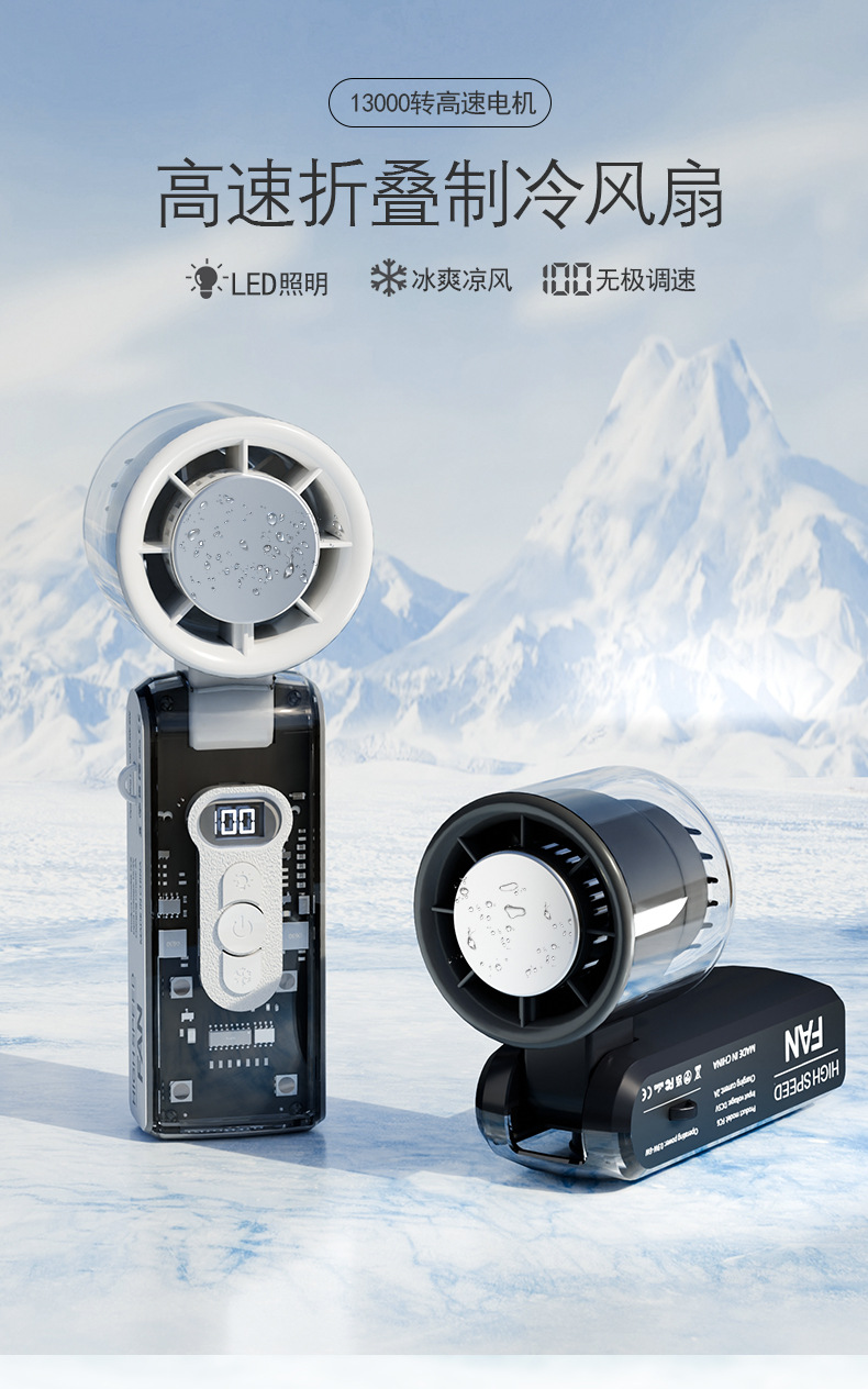 25爆款数显迷你便携usb充电折叠冰敷风扇大风力手持高速半导体