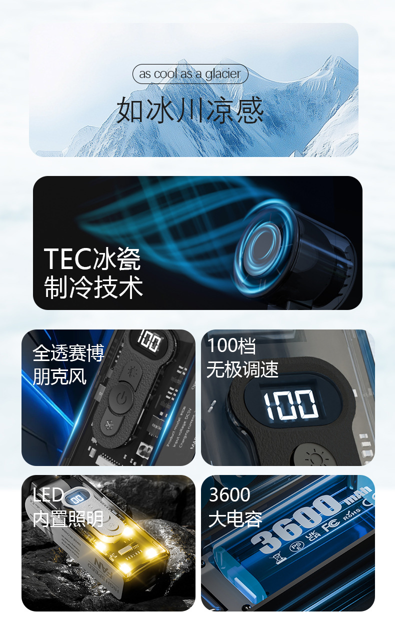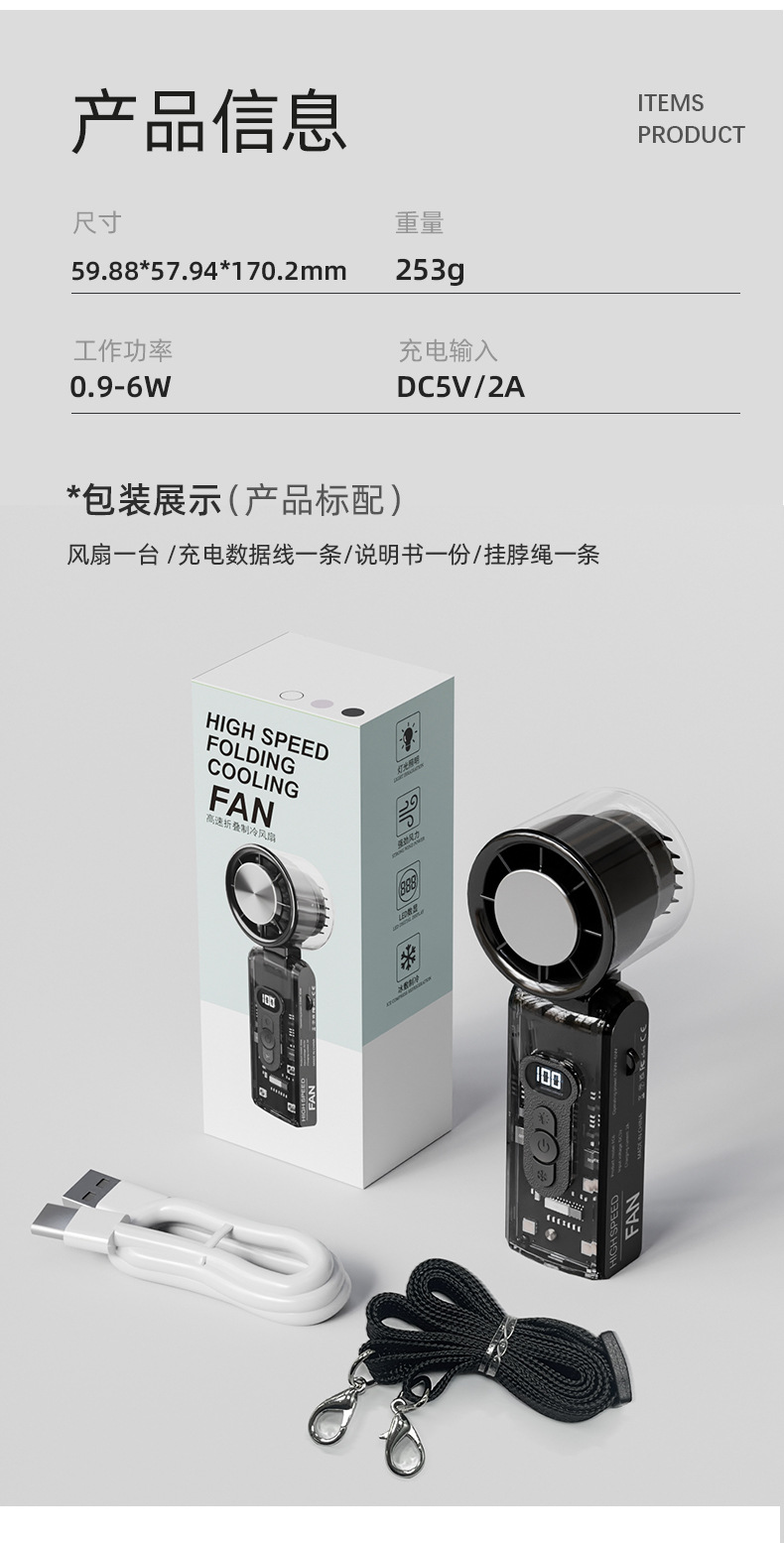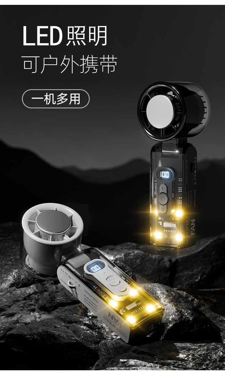 25爆款数显迷你便携usb充电折叠冰敷风扇大风力手持高速半导体