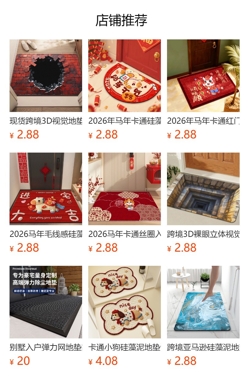 2026马年硅藻泥喜庆红门垫吸水速干卫生间浴室地垫代发玄关地垫