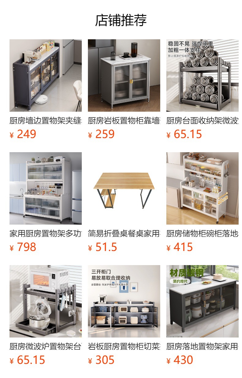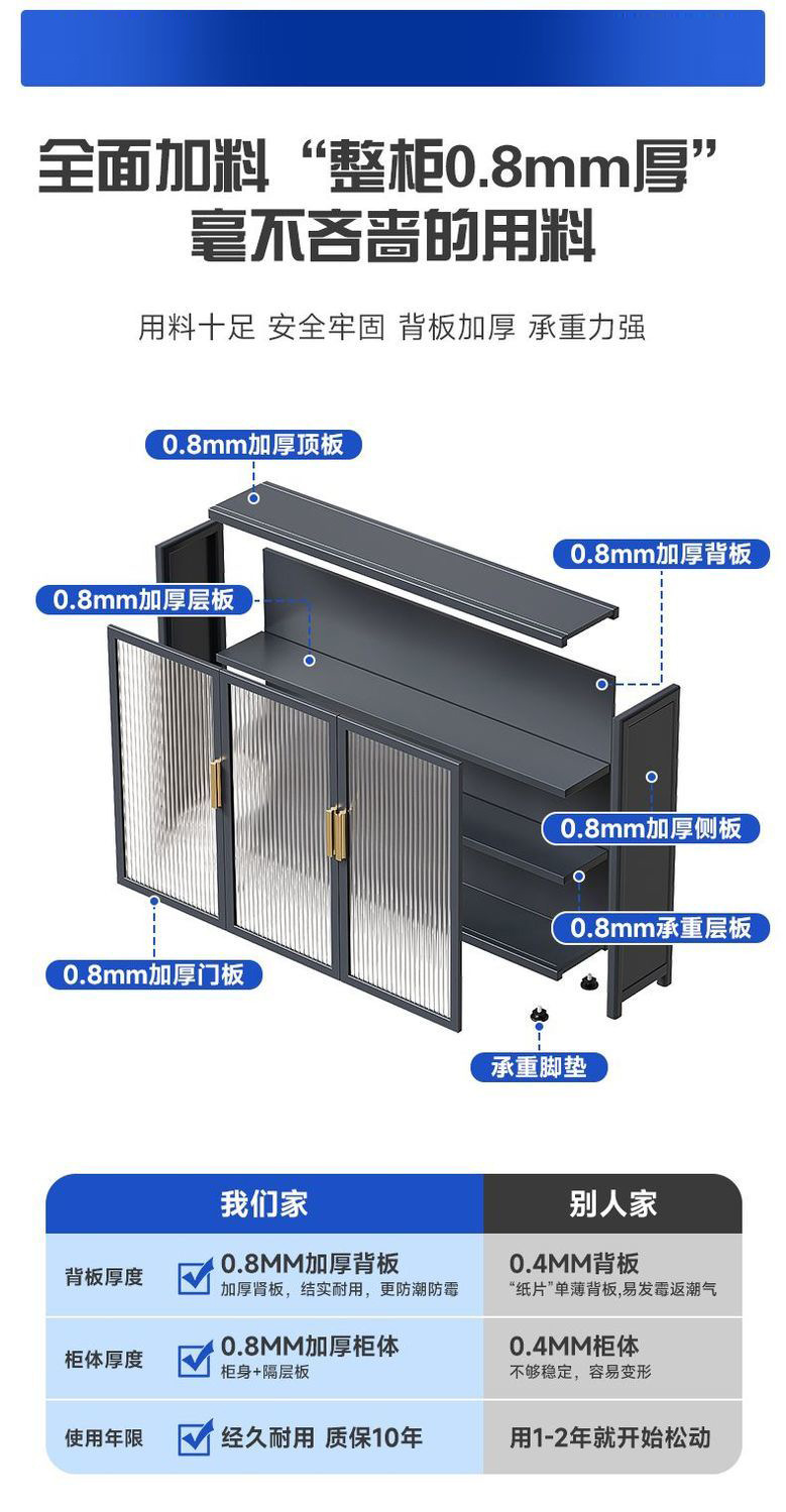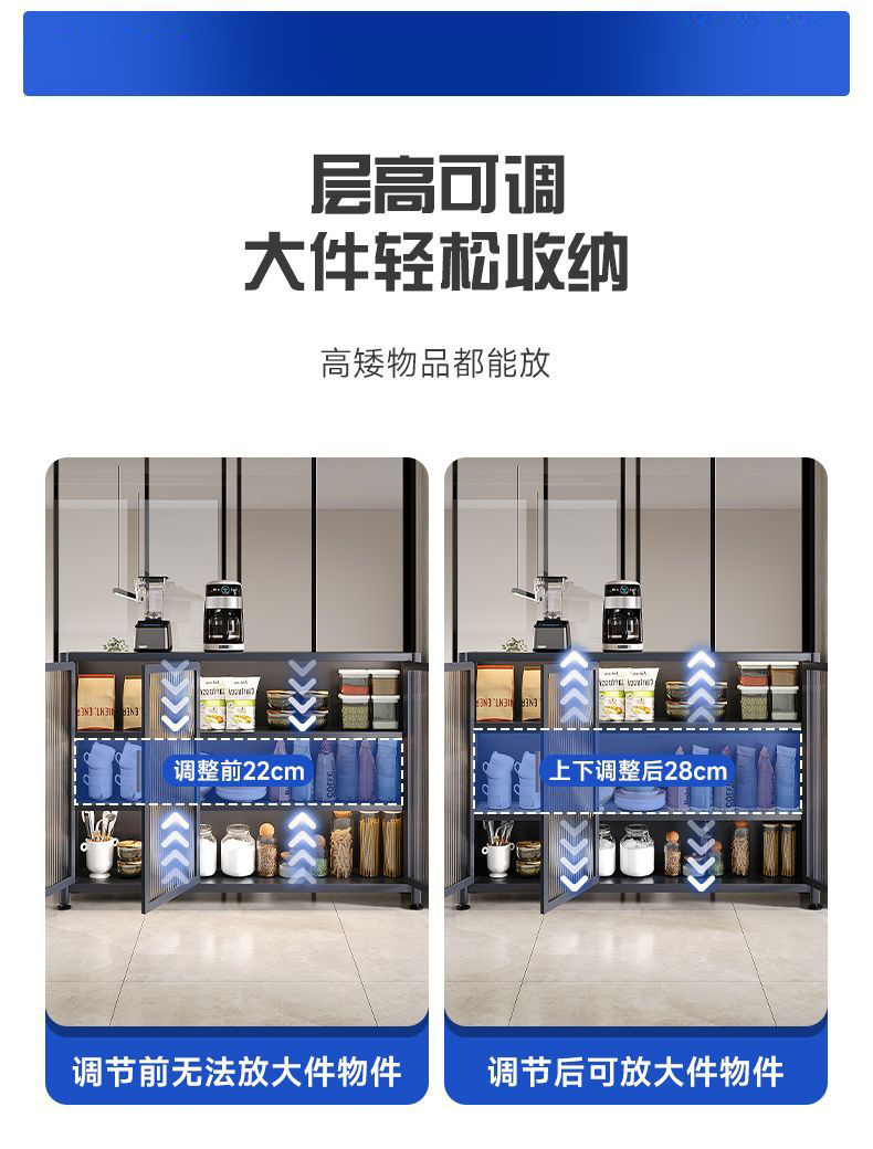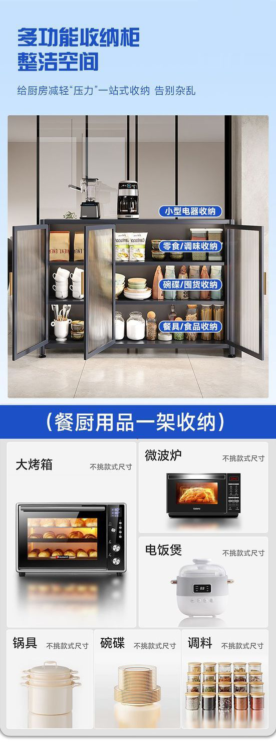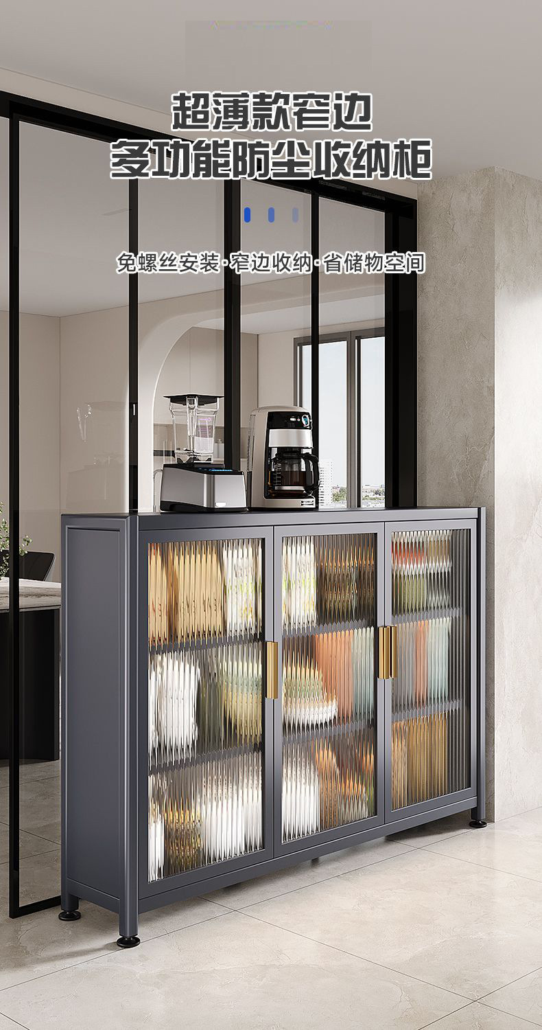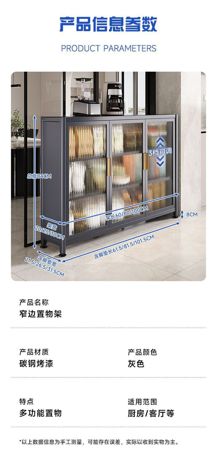 厨房墙边置物架夹缝岩板置物柜落地靠墙餐边柜多开柜门收纳橱柜