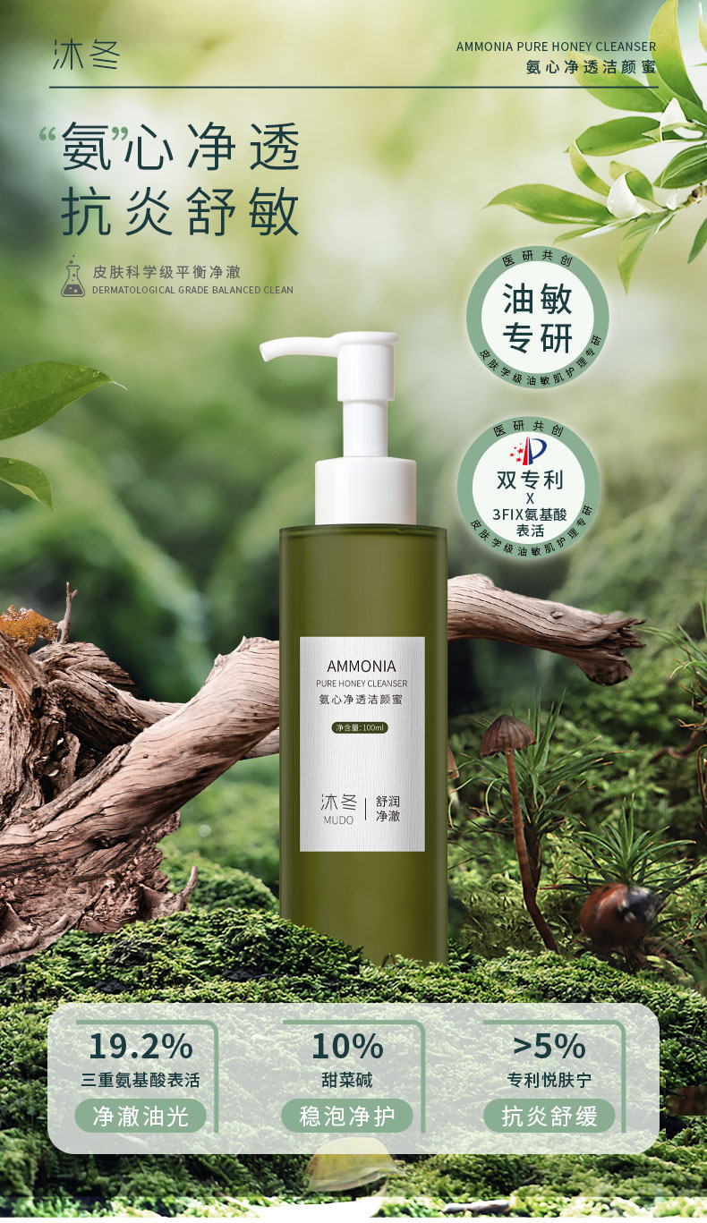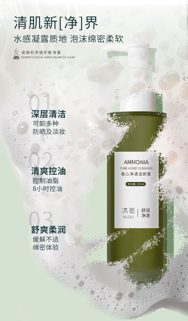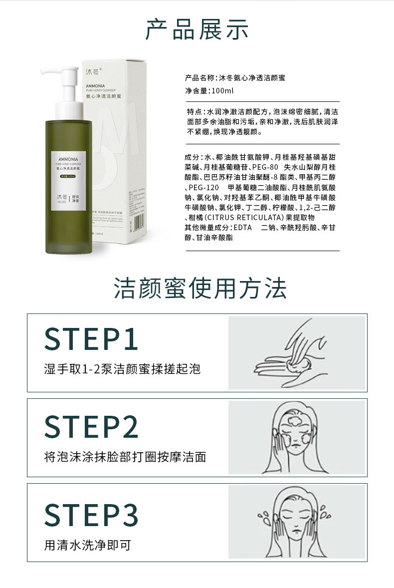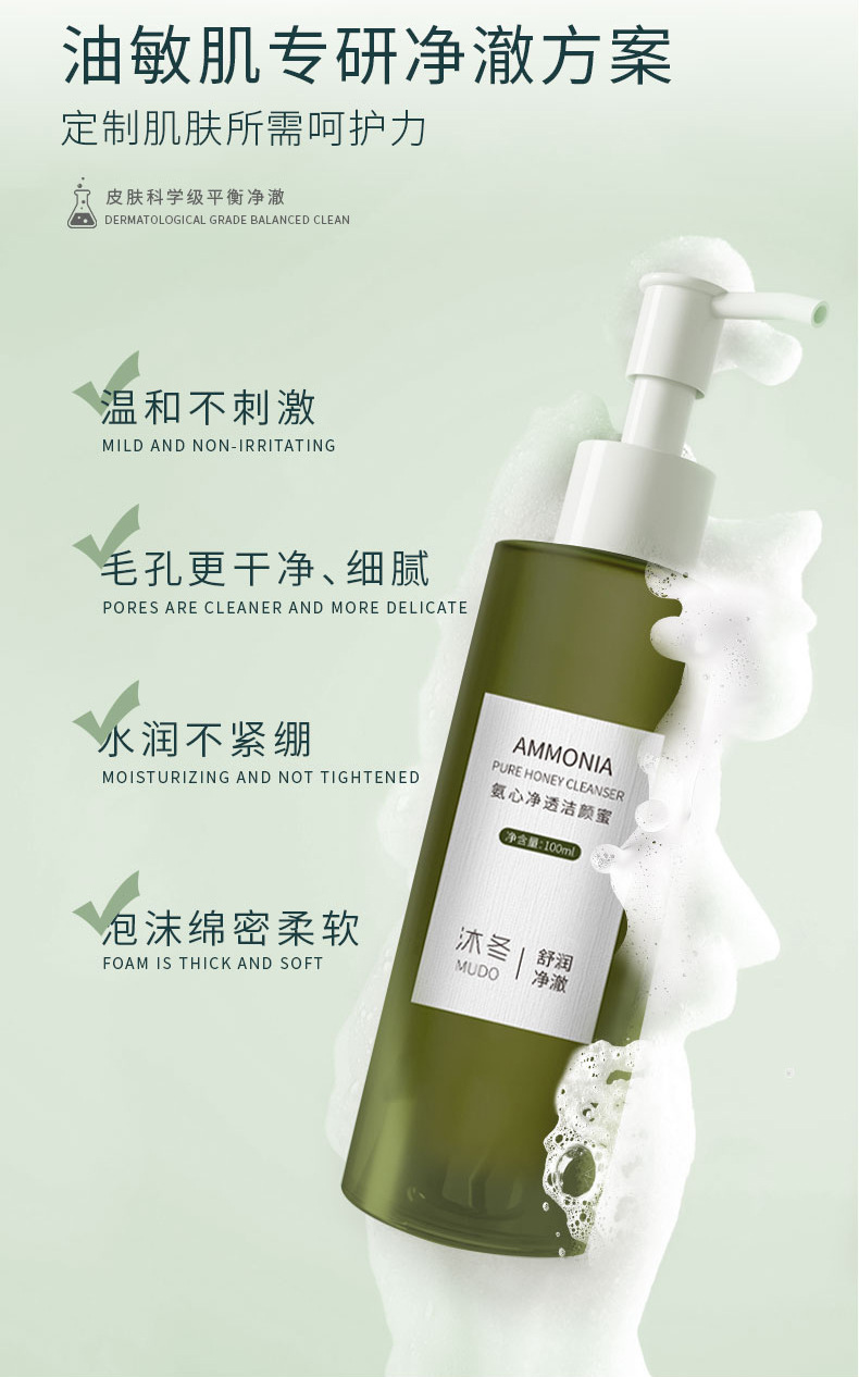 沐冬氨心净透洁颜蜜毛孔净透控油舒缓净肤洗面奶洗卸二合一洁面乳