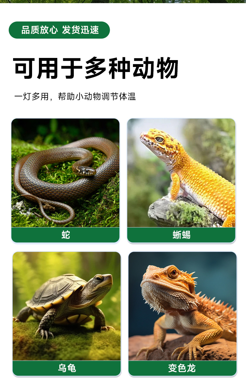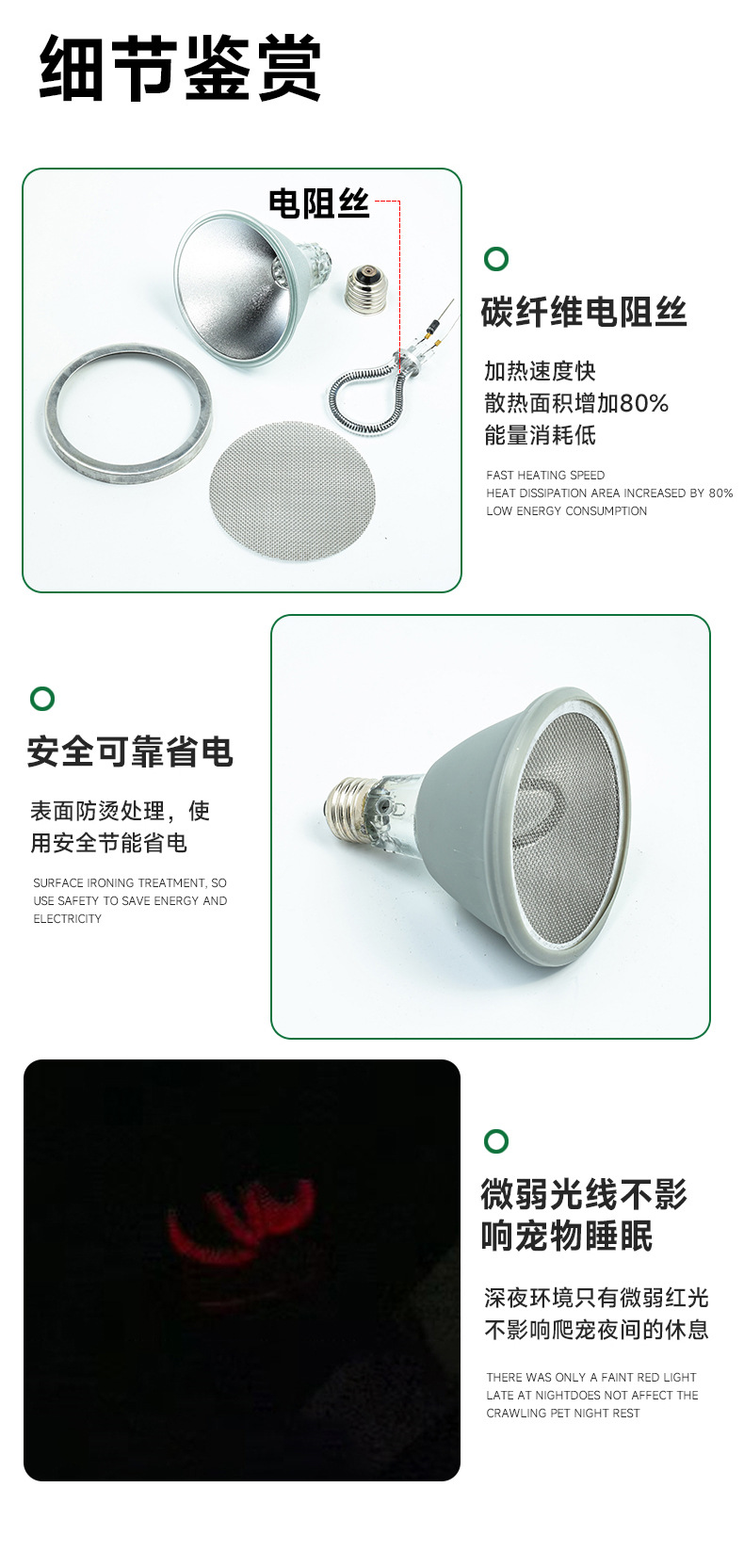 100W爬行动物取暖灯乌龟蜥蜴箱爬宠饲养加热灯碳纤维加热恒温
