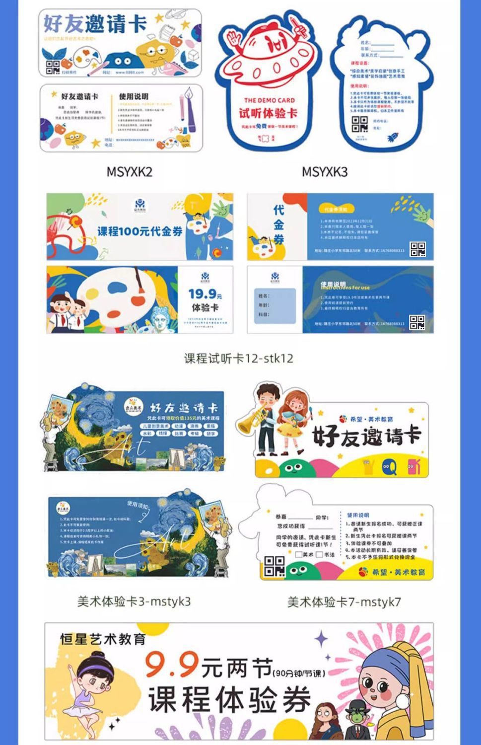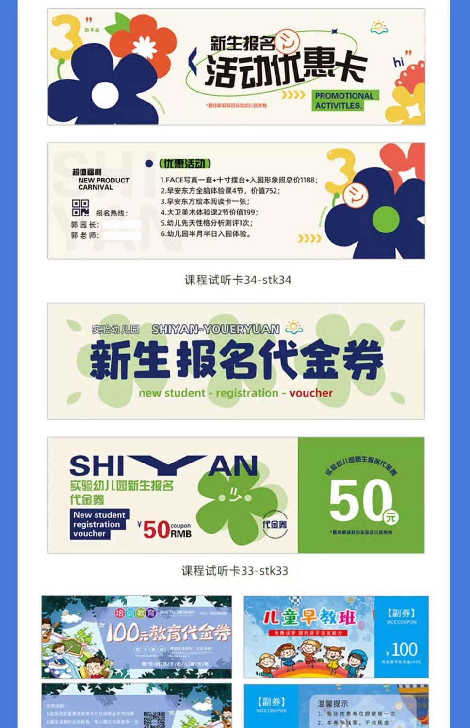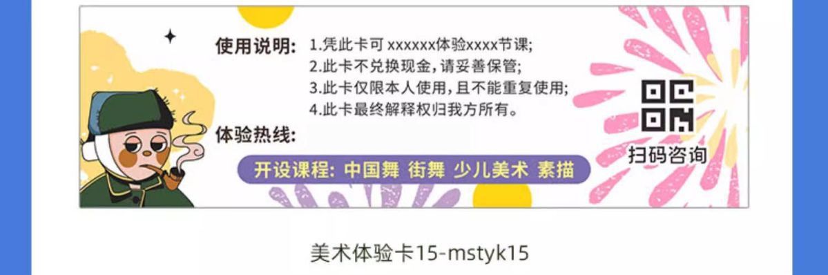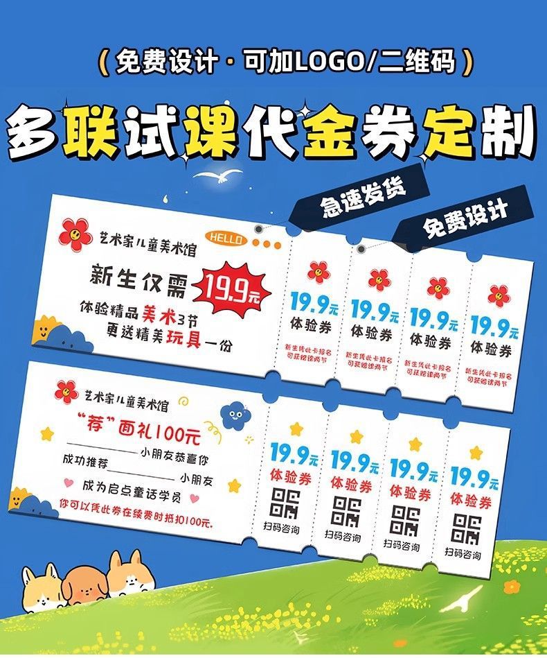 关键词:体检卡试听卡多联代金券定制学生辅导班体验卡儿童趣味异形卡片定