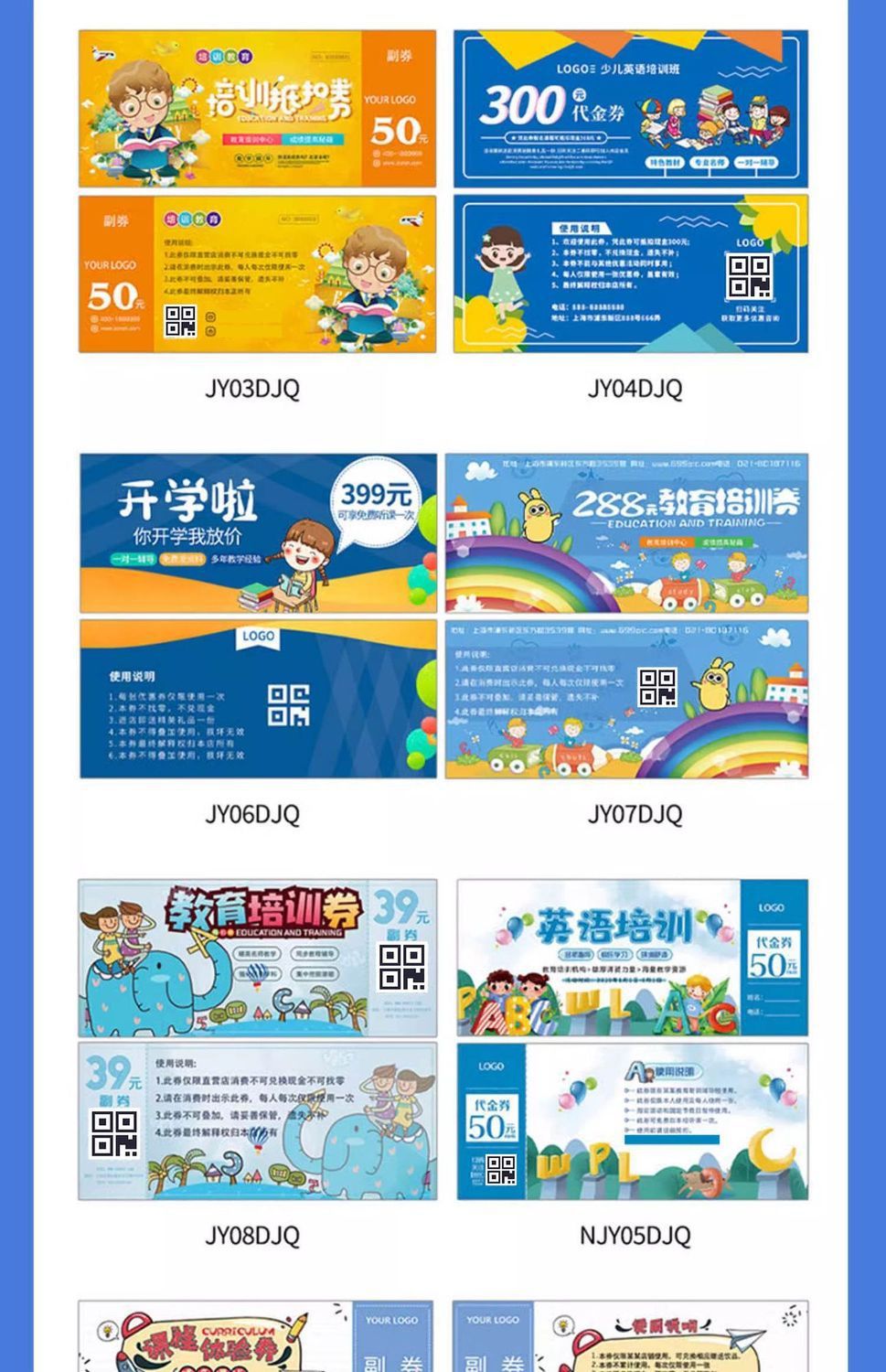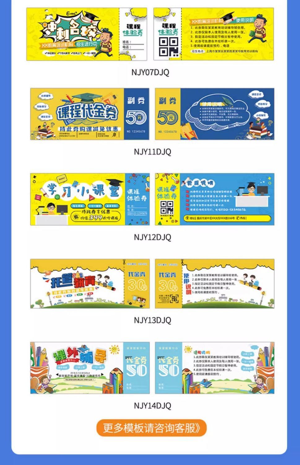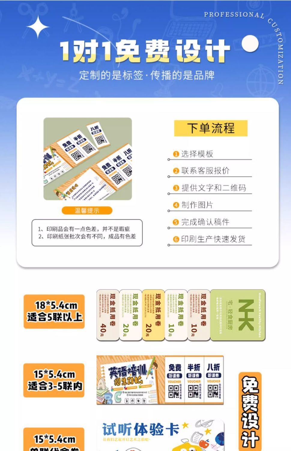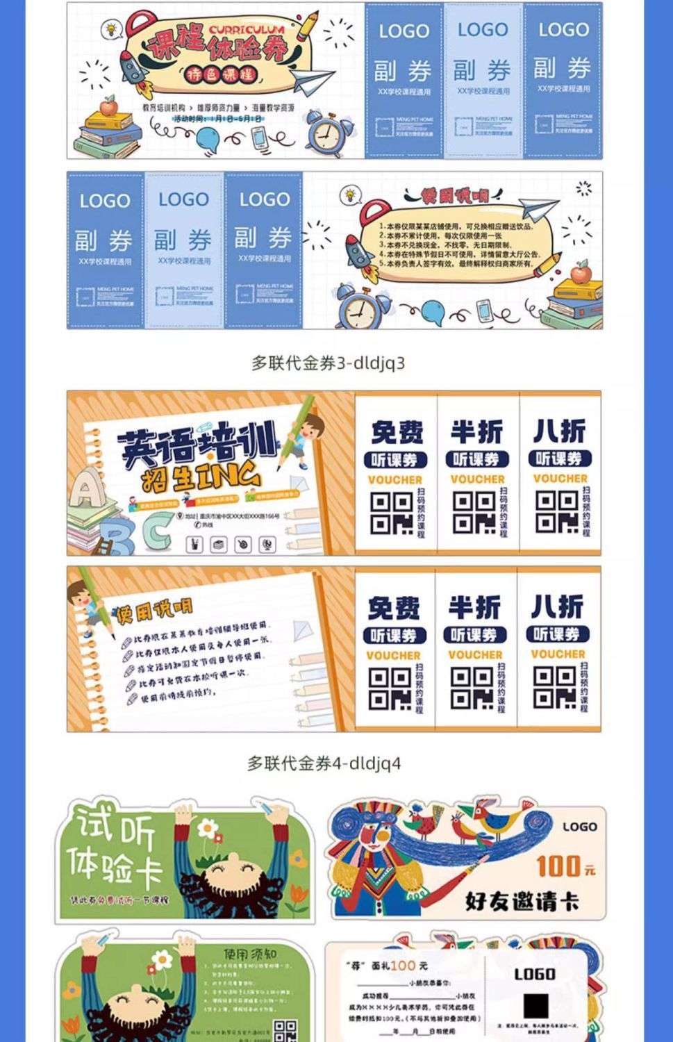 关键词:体检卡试听卡多联代金券定制学生辅导班体验卡儿童趣味异形卡片定