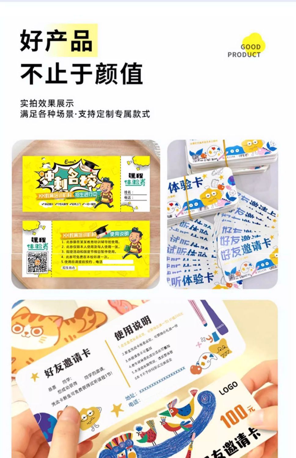 推荐理由:体检卡试听卡多联代金券定制学生辅导班体验卡儿童趣味异形卡片定