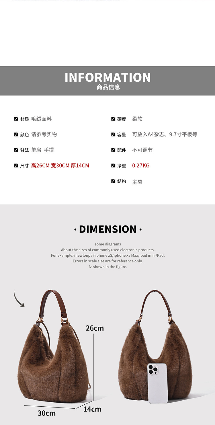 秋冬新款仿貂毛绒包女新款毛毛托特包大容量毛茸茸手提单肩斜挎包