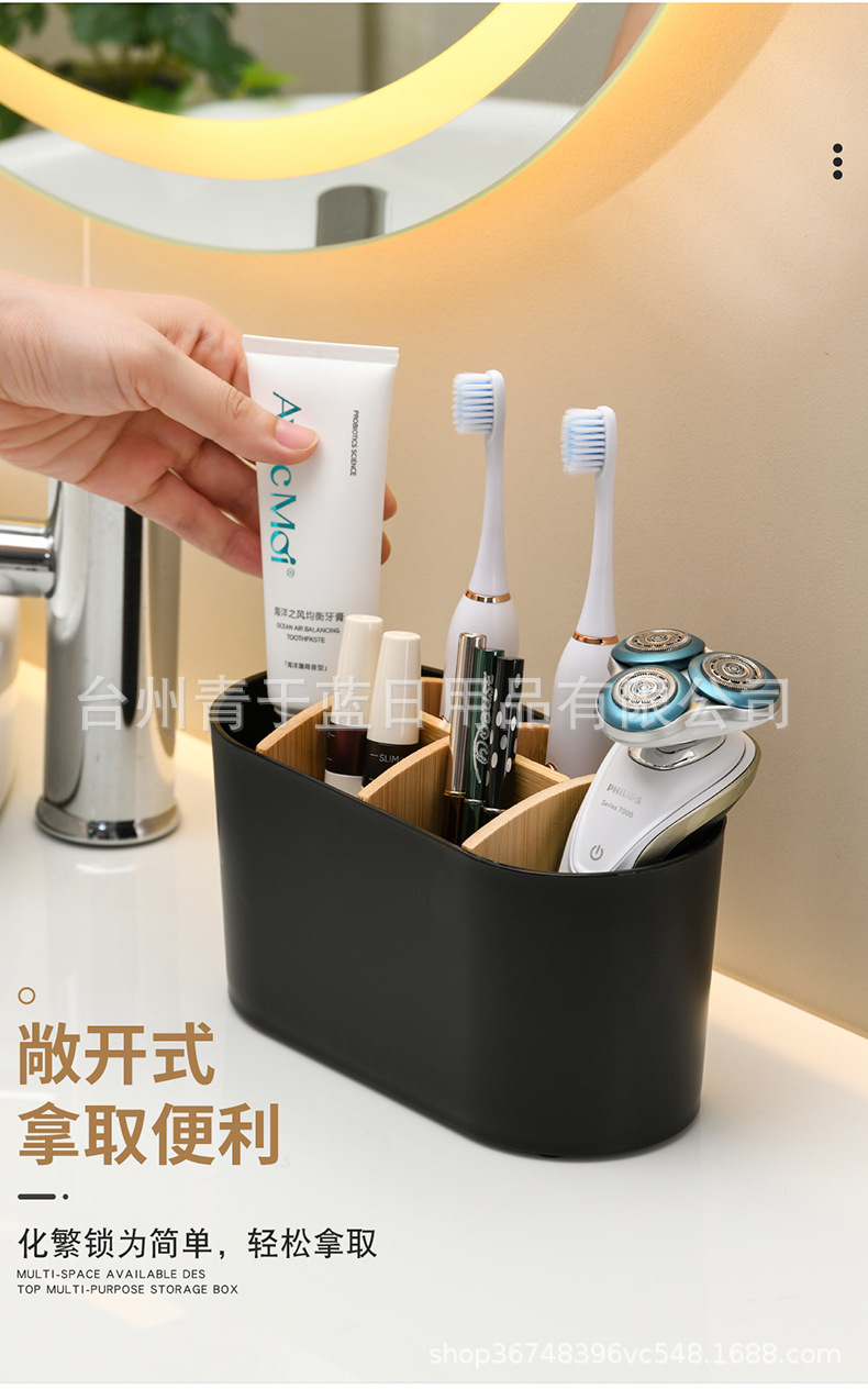 竹片王字收纳盒一格一物分区收纳合理分格底部防滑多用途多功能