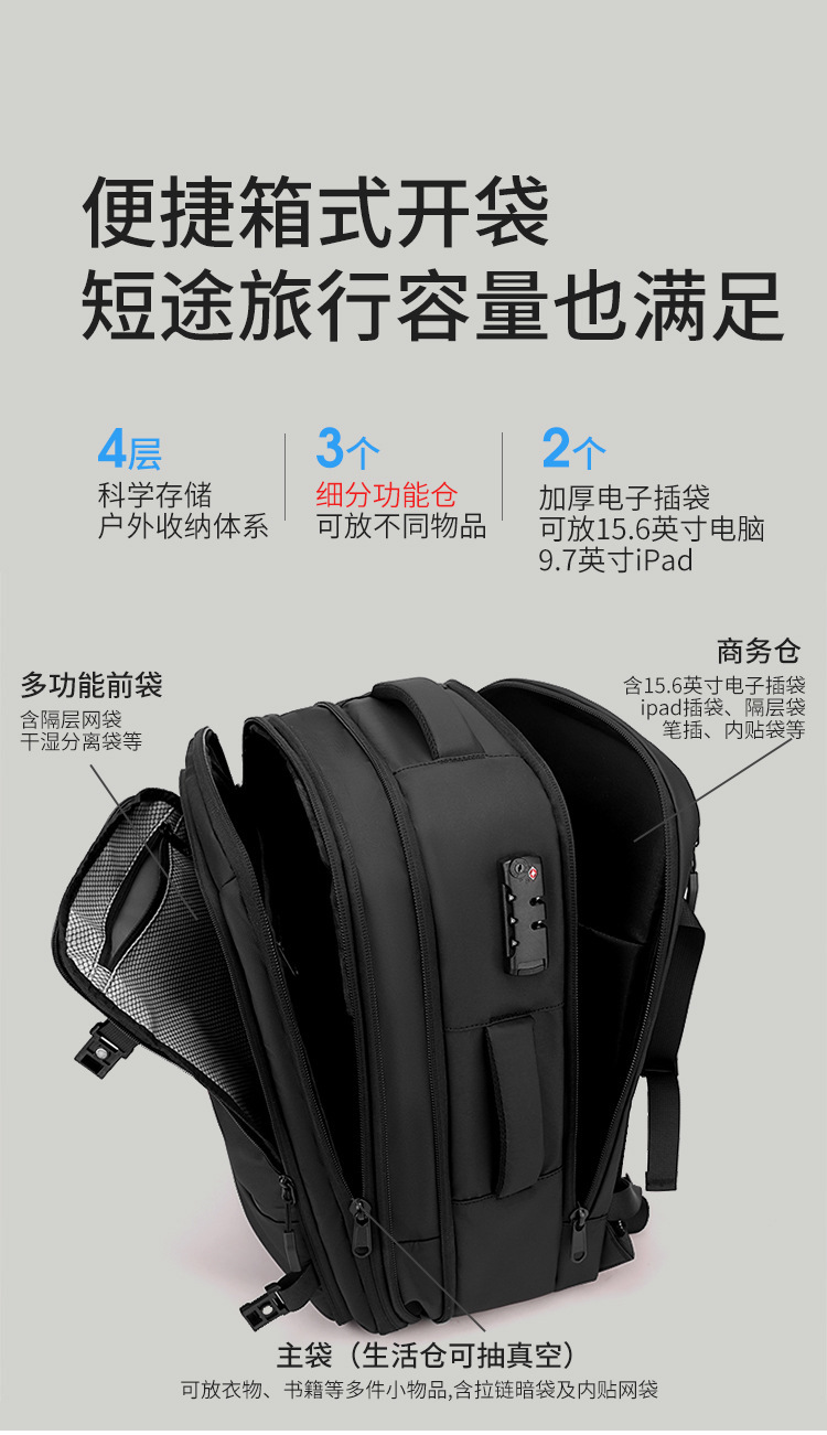 真空压缩背包通用大容量干湿分离通勤旅行包可登机可扩容双肩背包