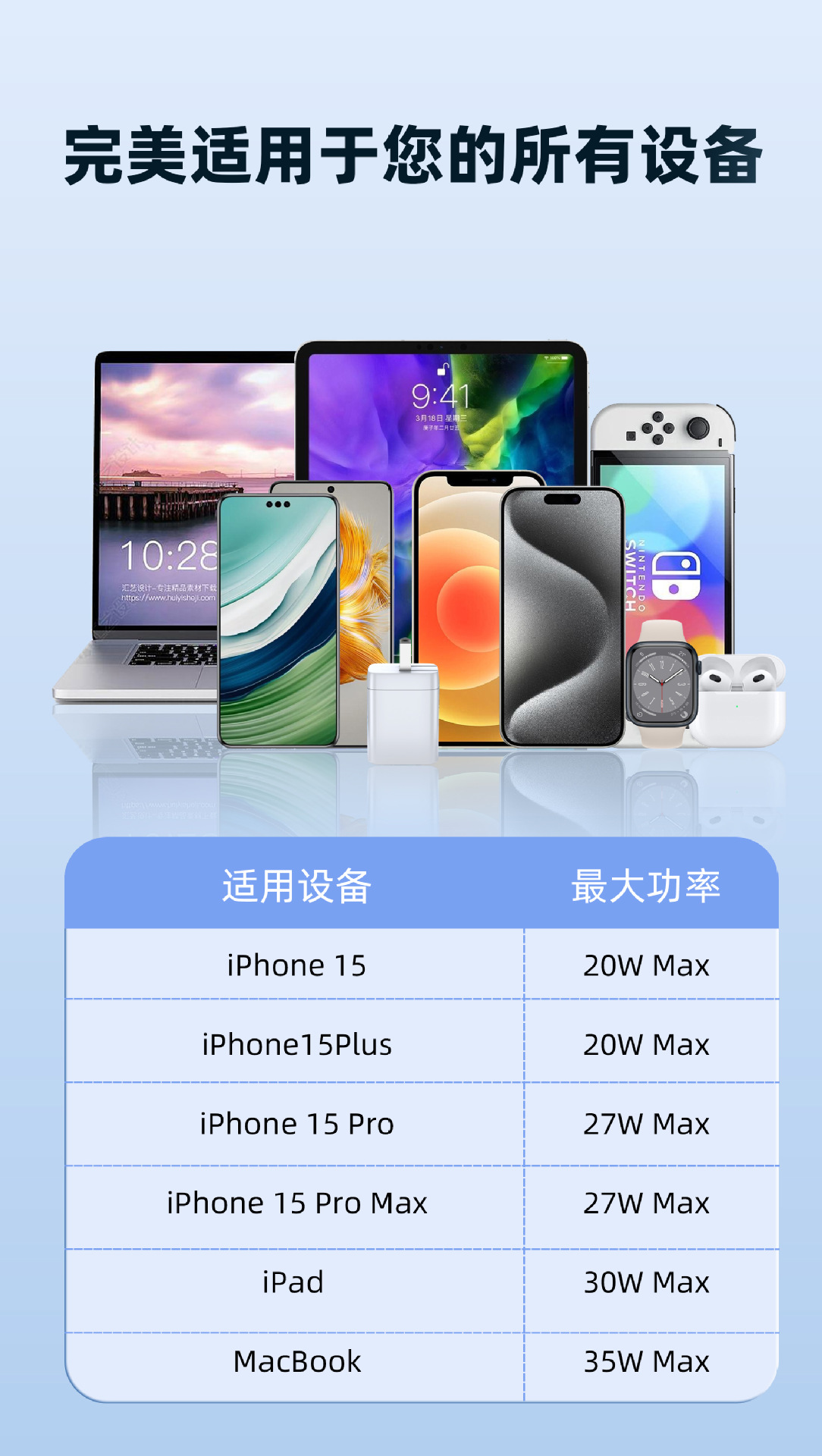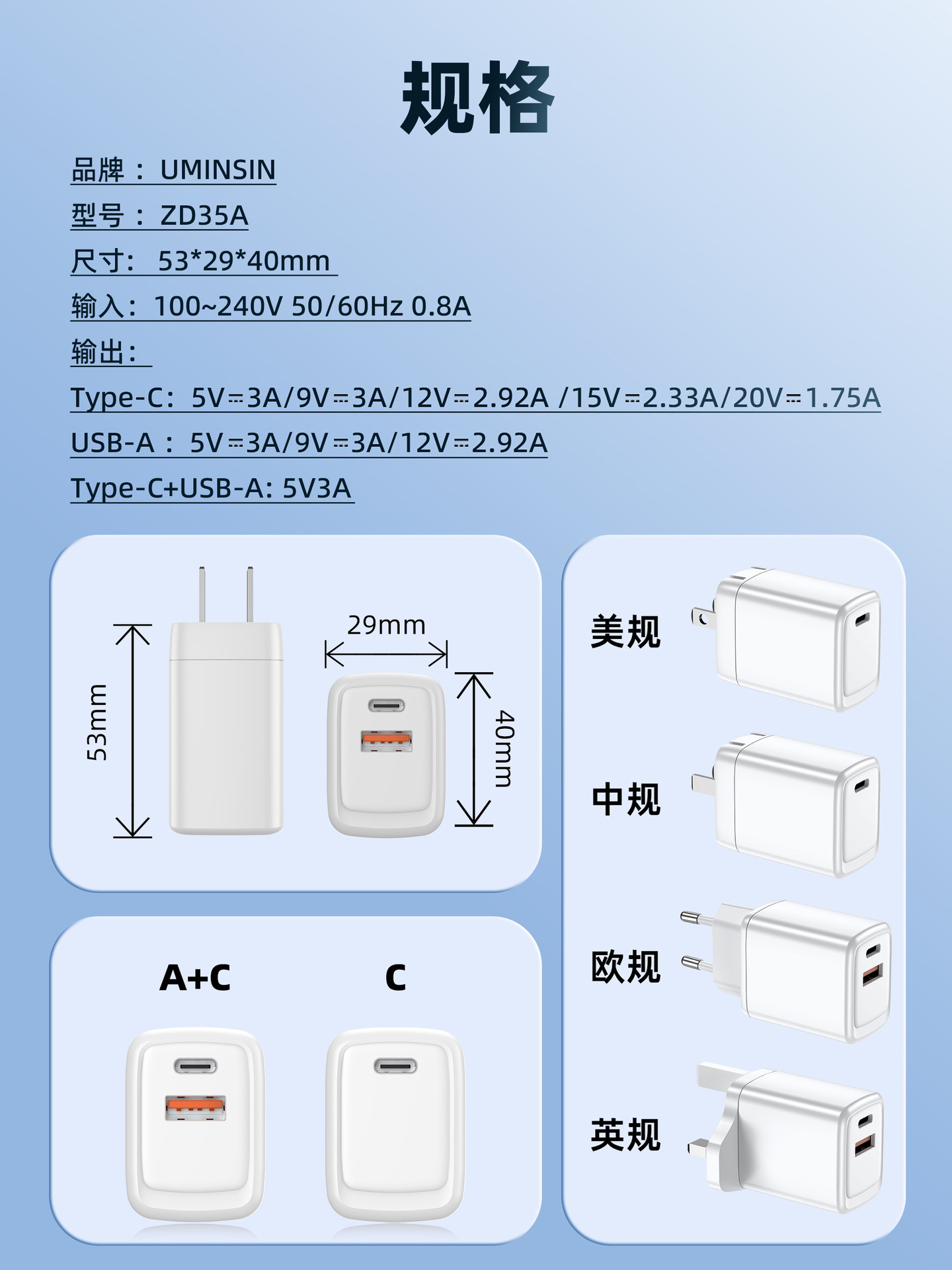 单口输出: 5V-3A/9V-3A/12V-2.92A/15V-2.33A/20V -1.75A