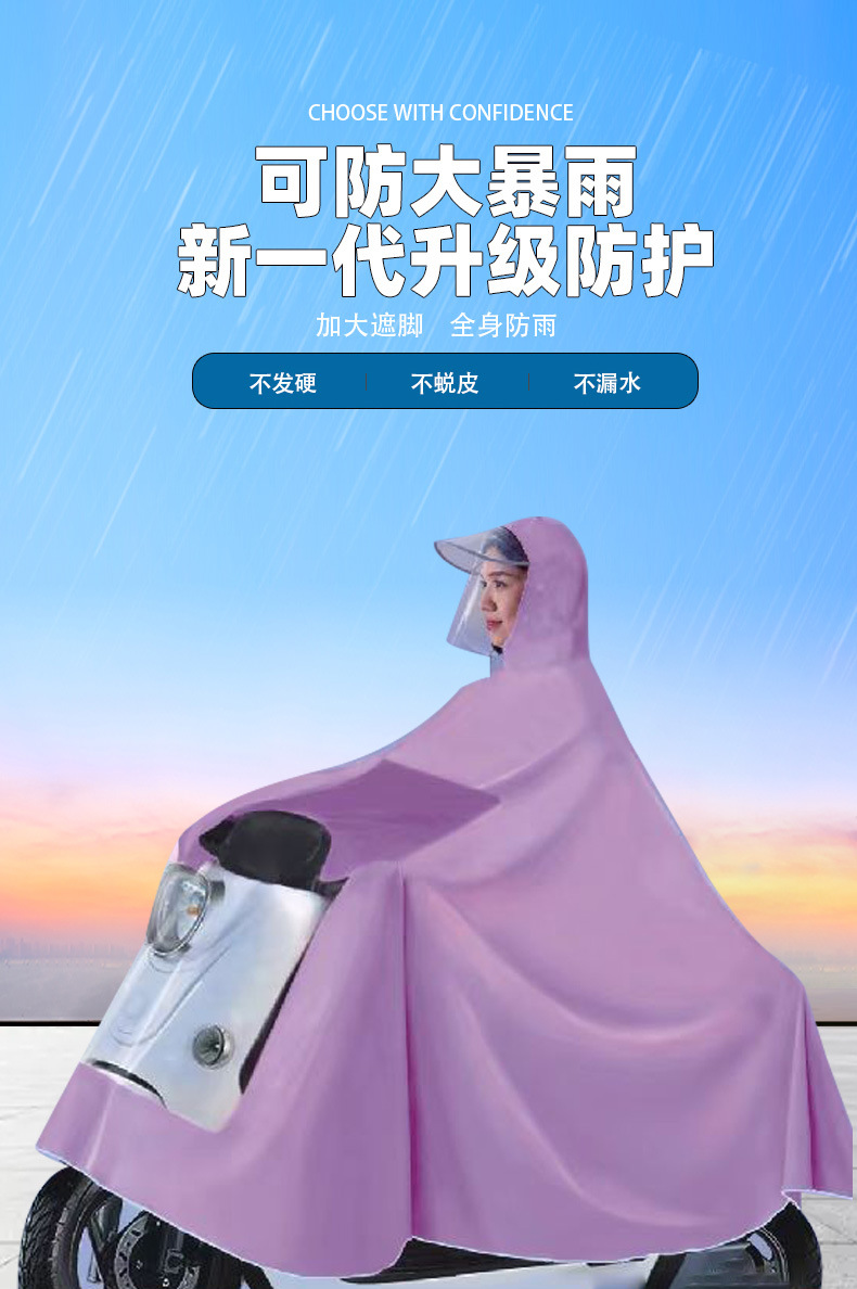 关键词:雨衣骑行雨披单人双帽雨衣电动车雨披加大遮脚雨披