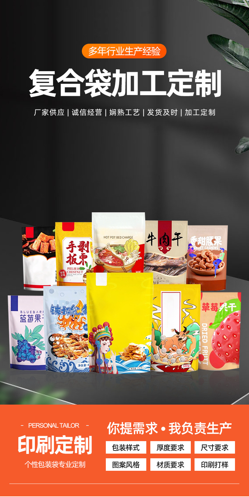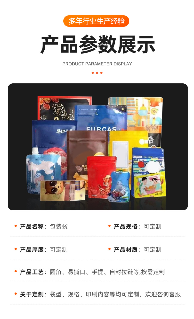 三边封八边封食品包装袋零食塑料铝箔袋自立袋自封袋异型袋定制