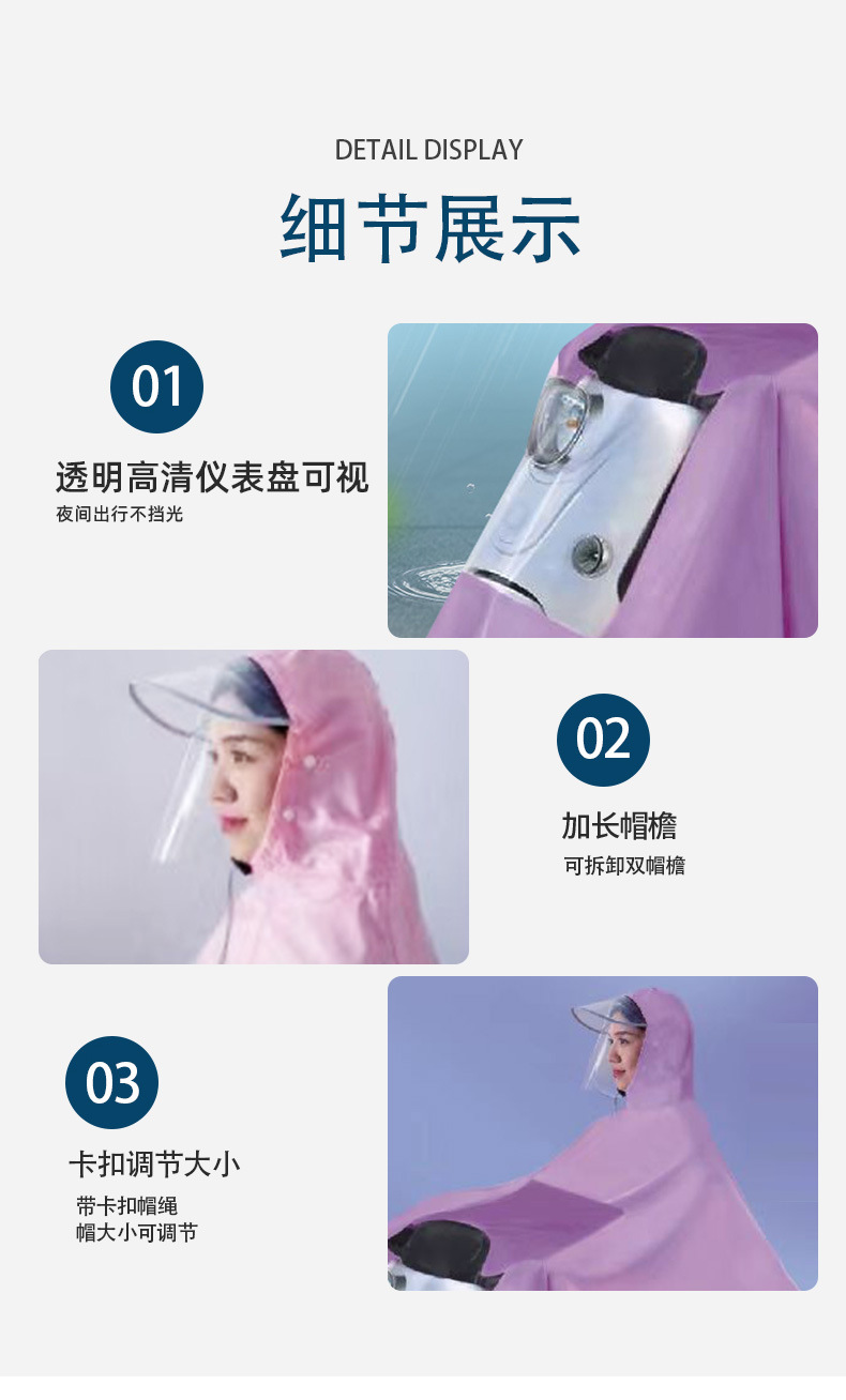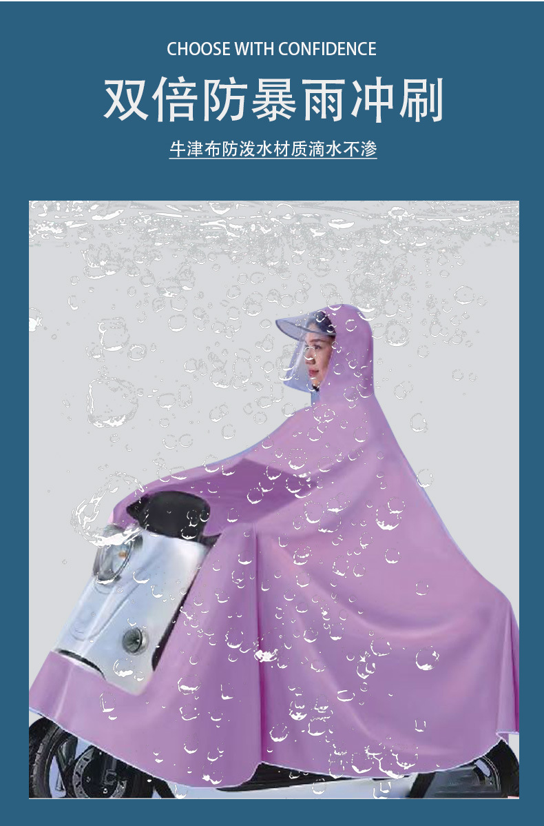 [ 商业 ] 厂家批发骑行雨披可视仪表盘防雨双帽加大加厚单人电动车骑行雨衣