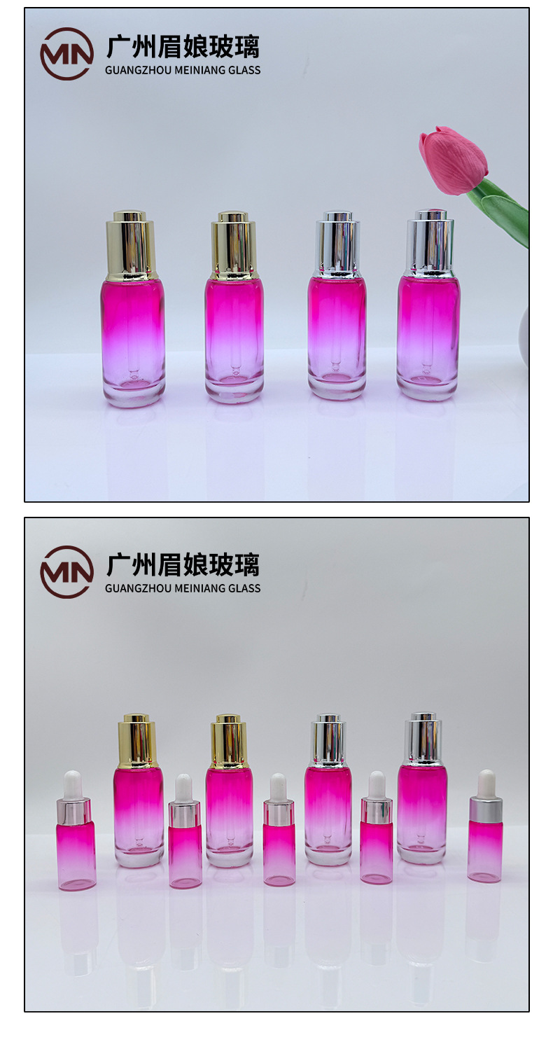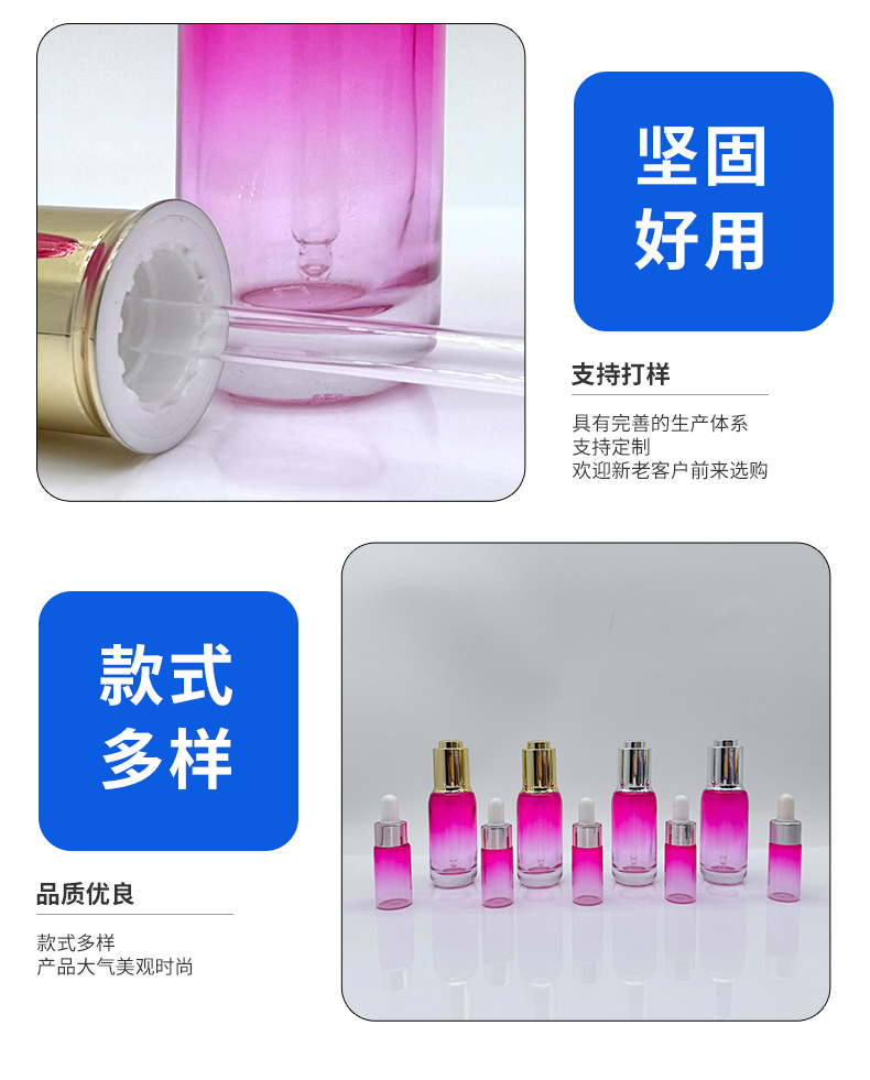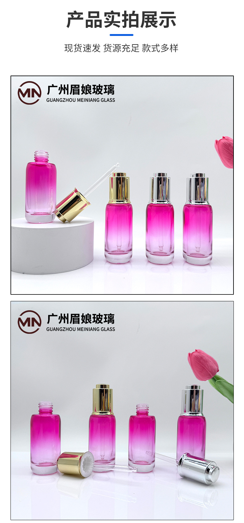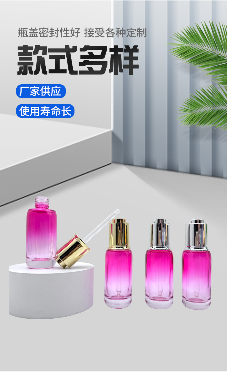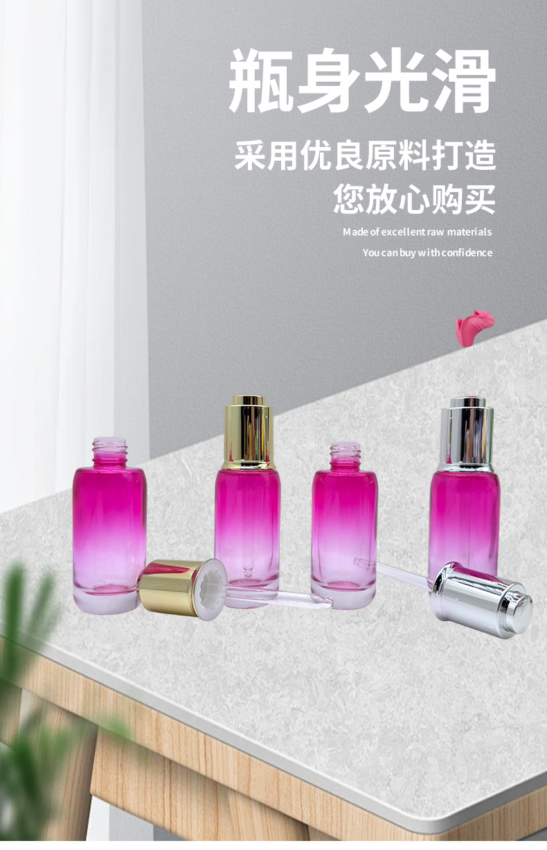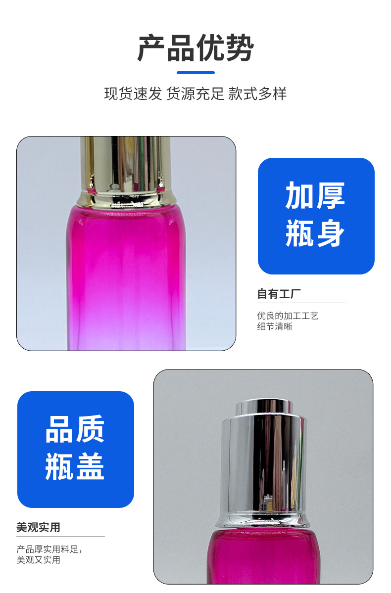 30ml精华液瓶海迷精华瓶渐变色圆柱瓶按压滴管精华液分装瓶包材