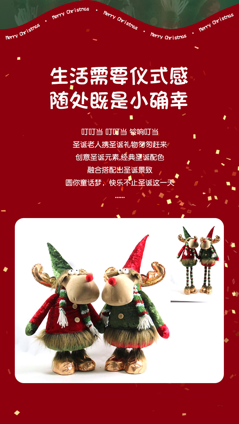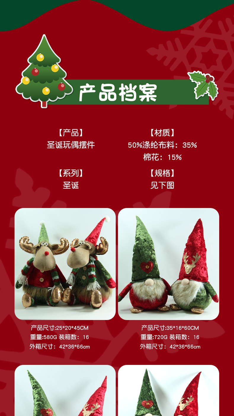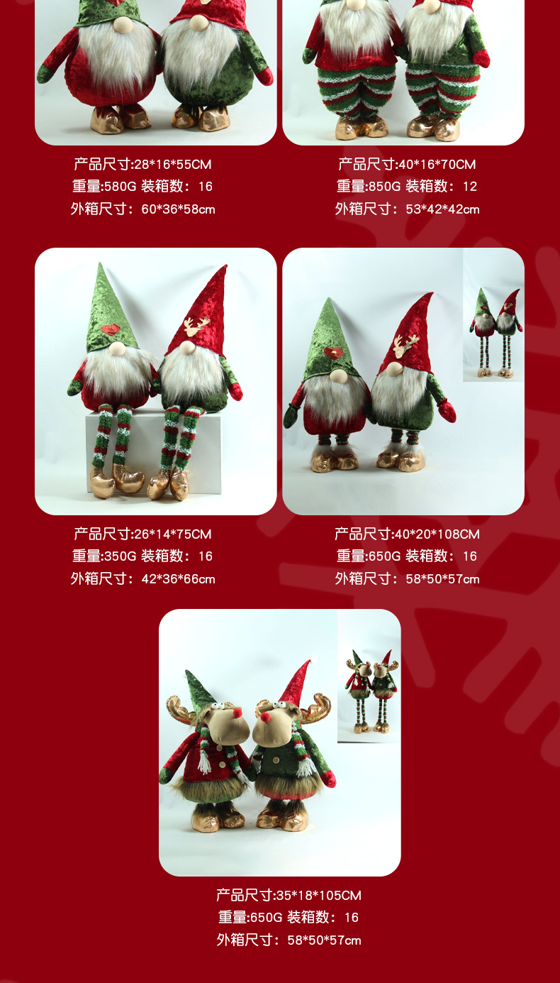 [ 商业 ] 新款创意圣诞地精红绿帽子站姿公仔布艺摆件跨境节日礼品批发