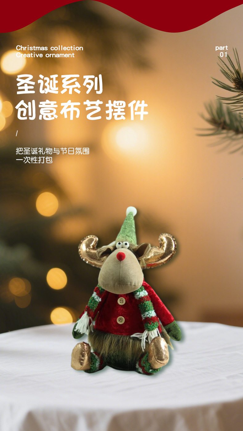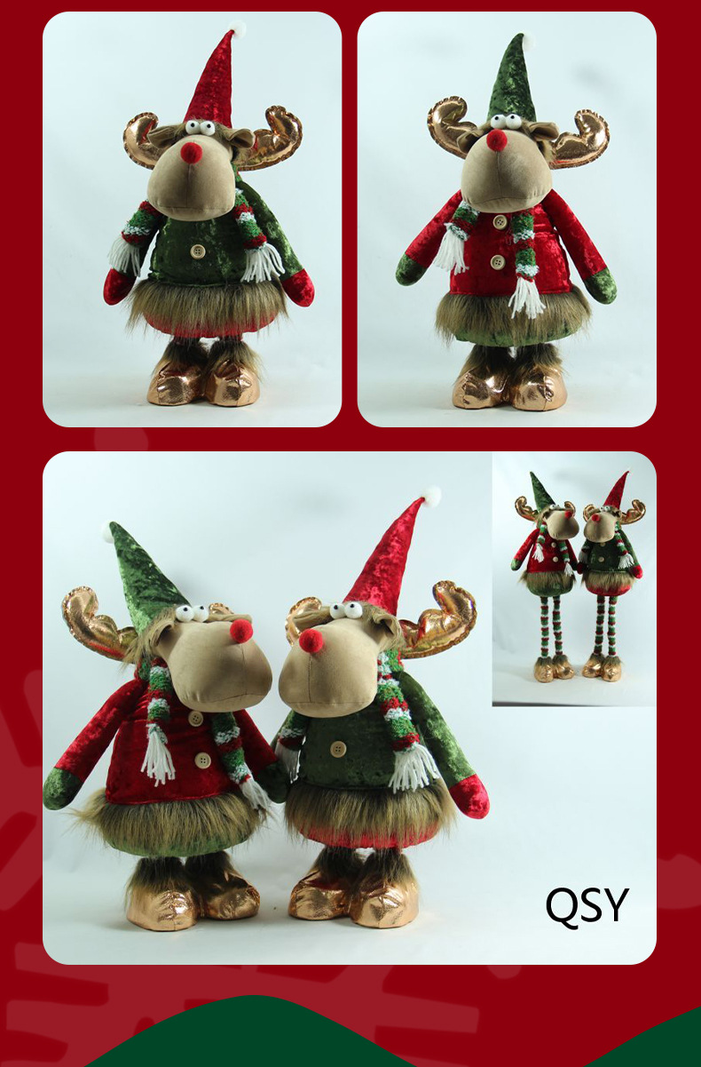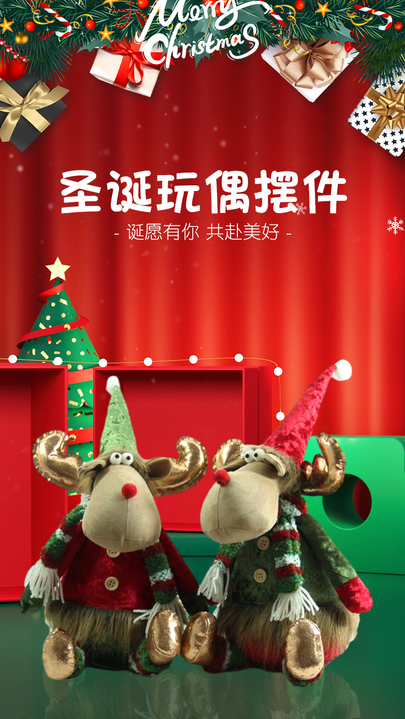 [ 商业 ] 新款创意圣诞地精红绿帽子站姿公仔布艺摆件跨境节日礼品批发