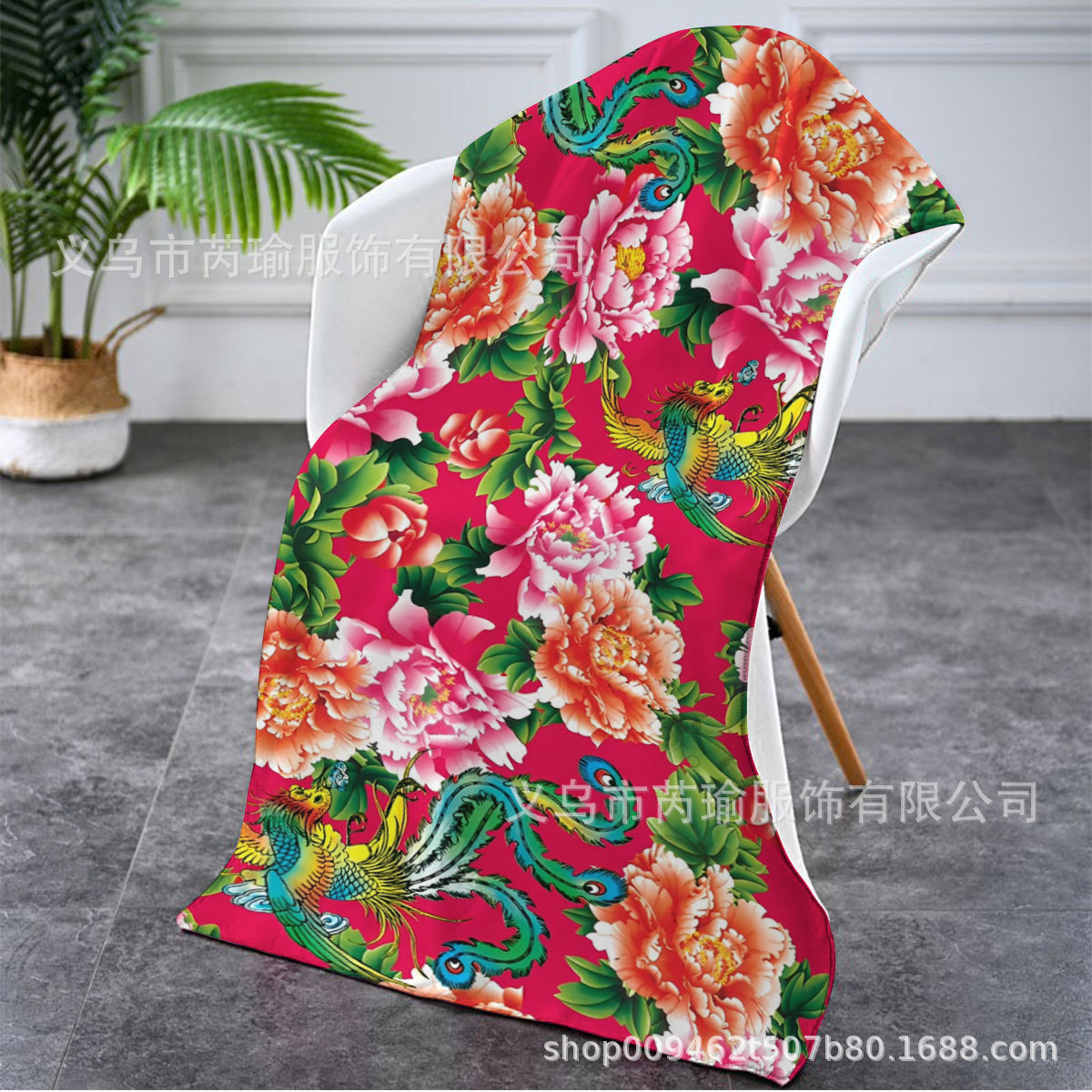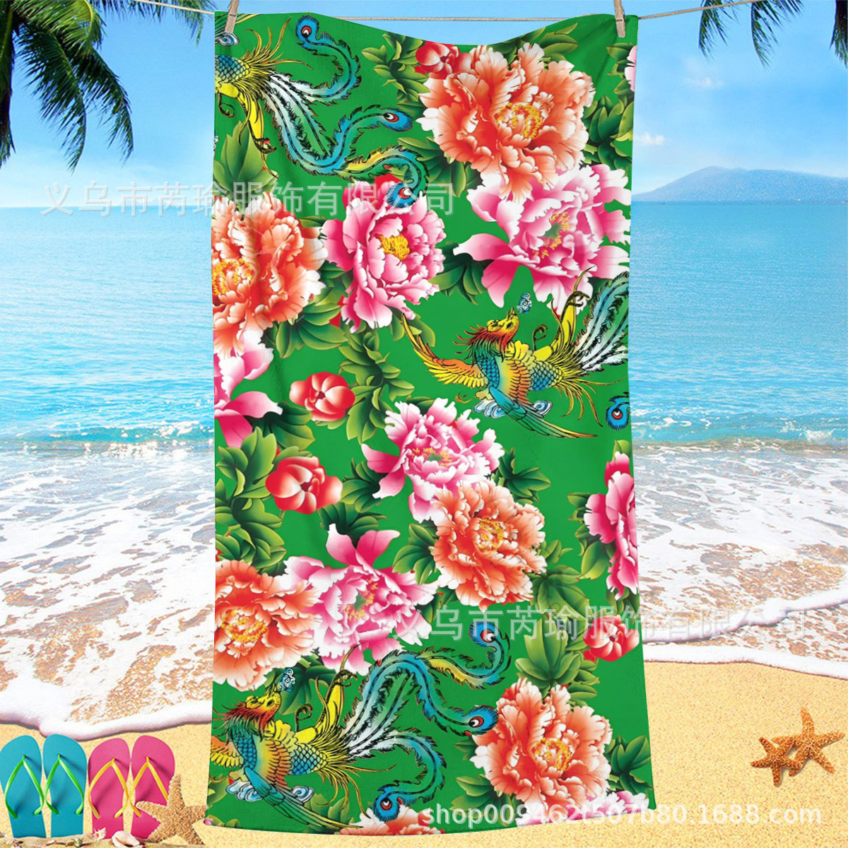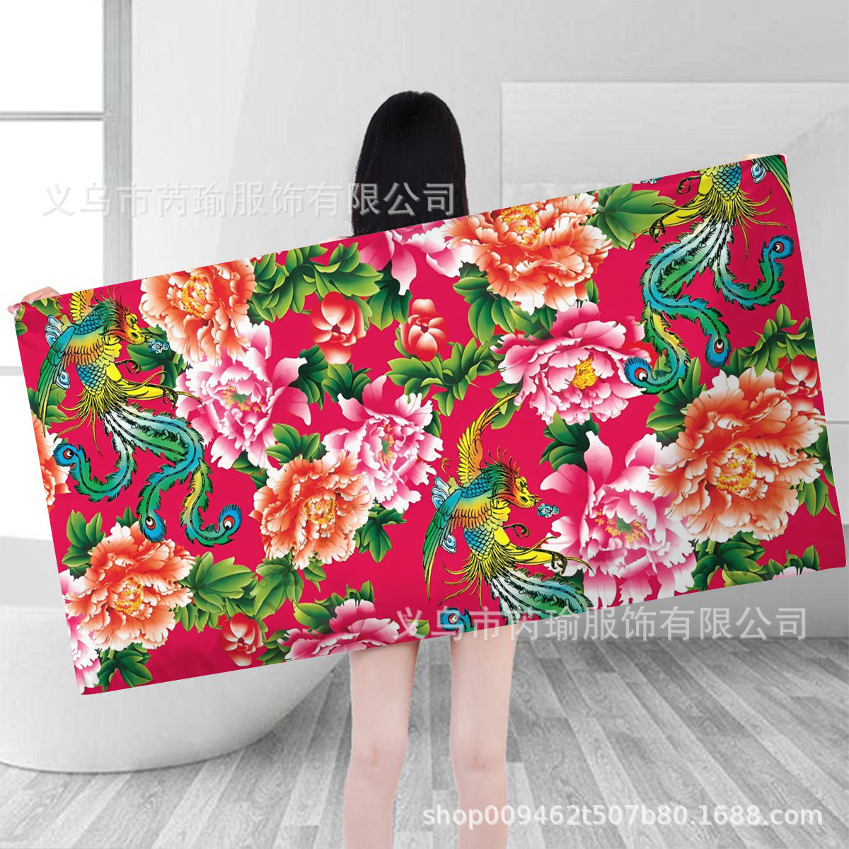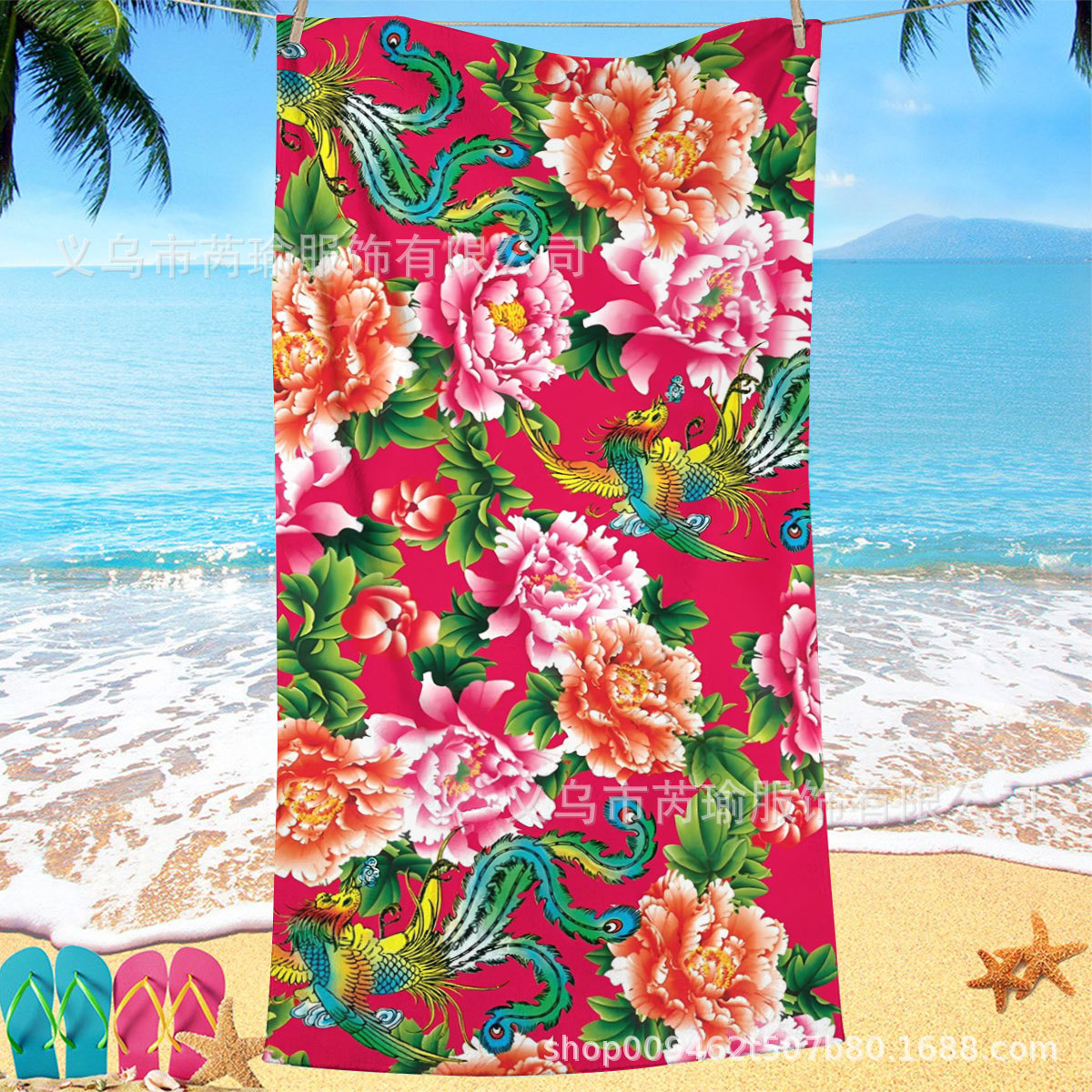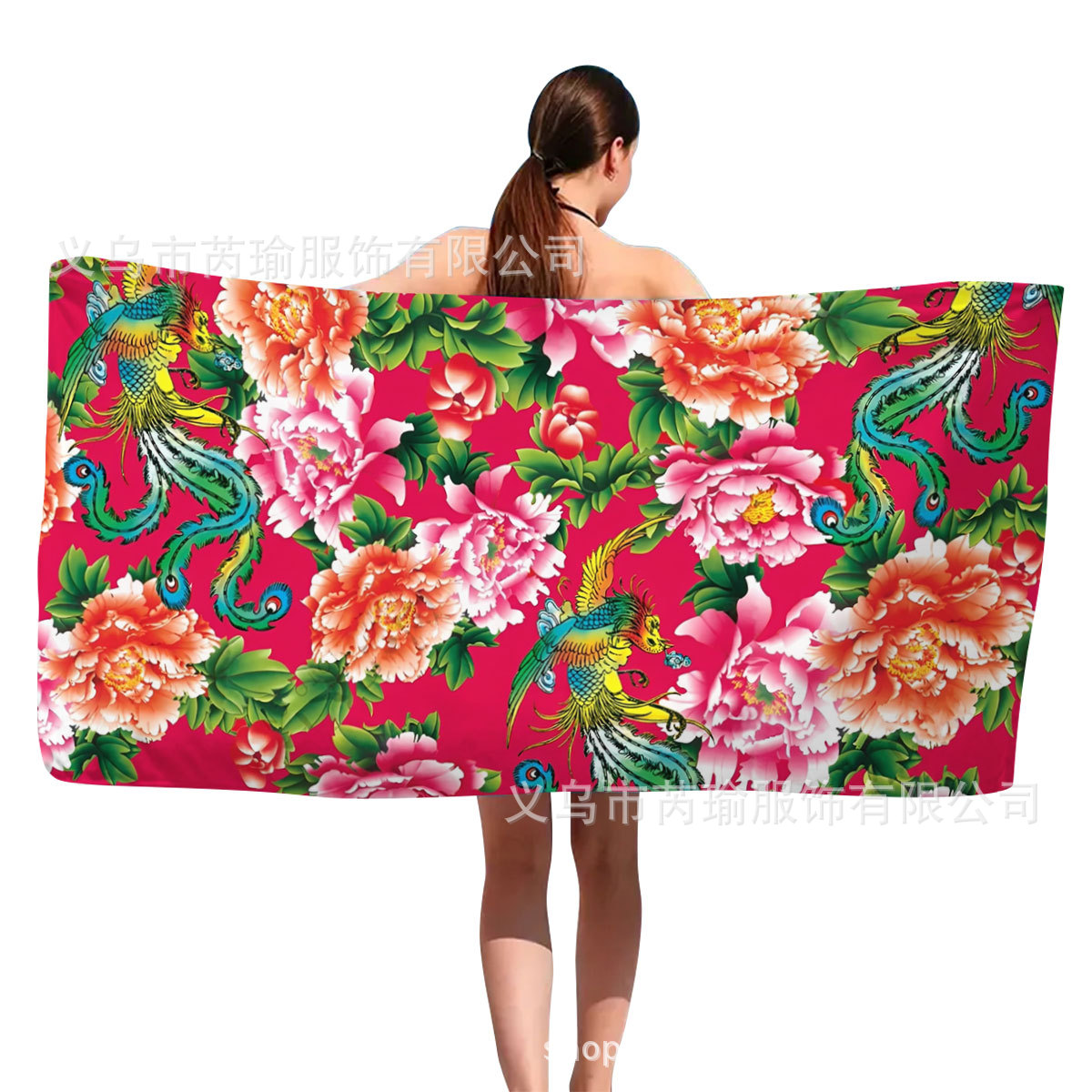 亚马逊速干东北大红花沙滩巾成人超细纤维海边吸水户外游泳浴巾