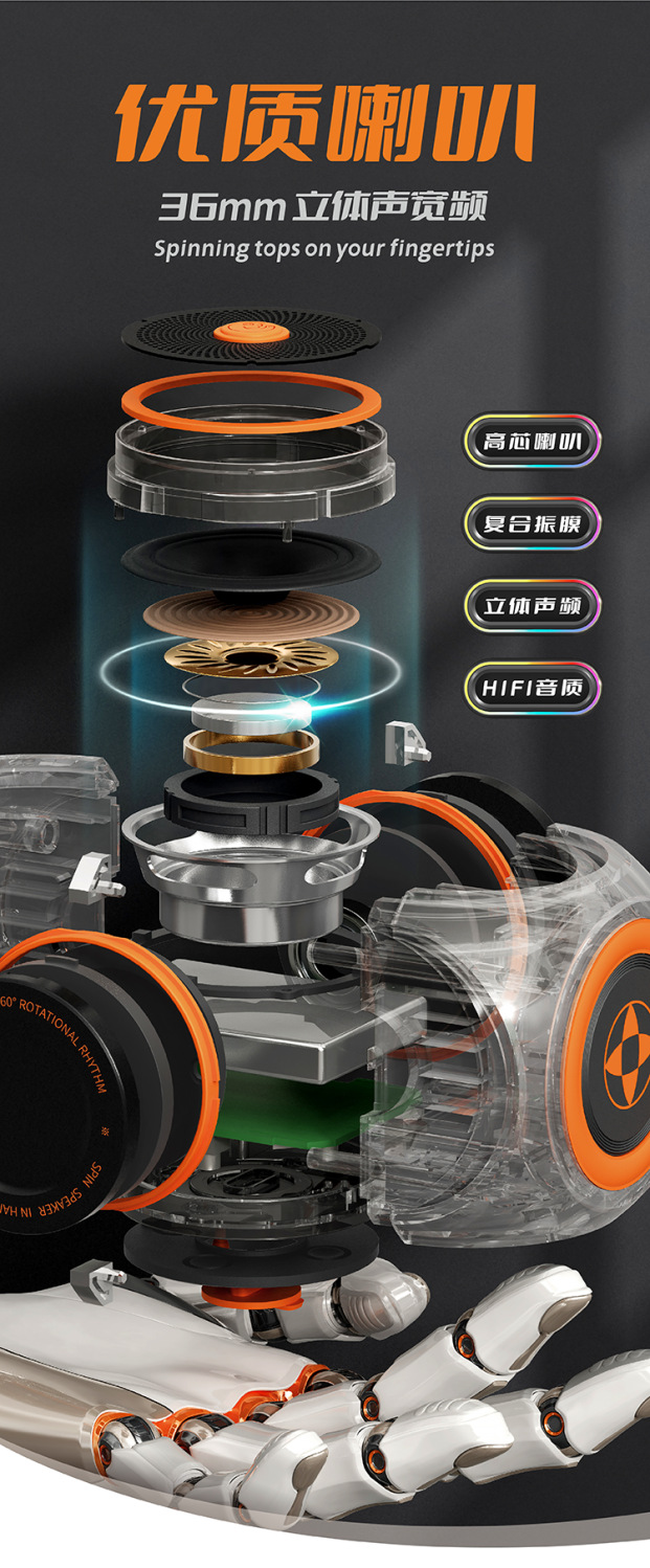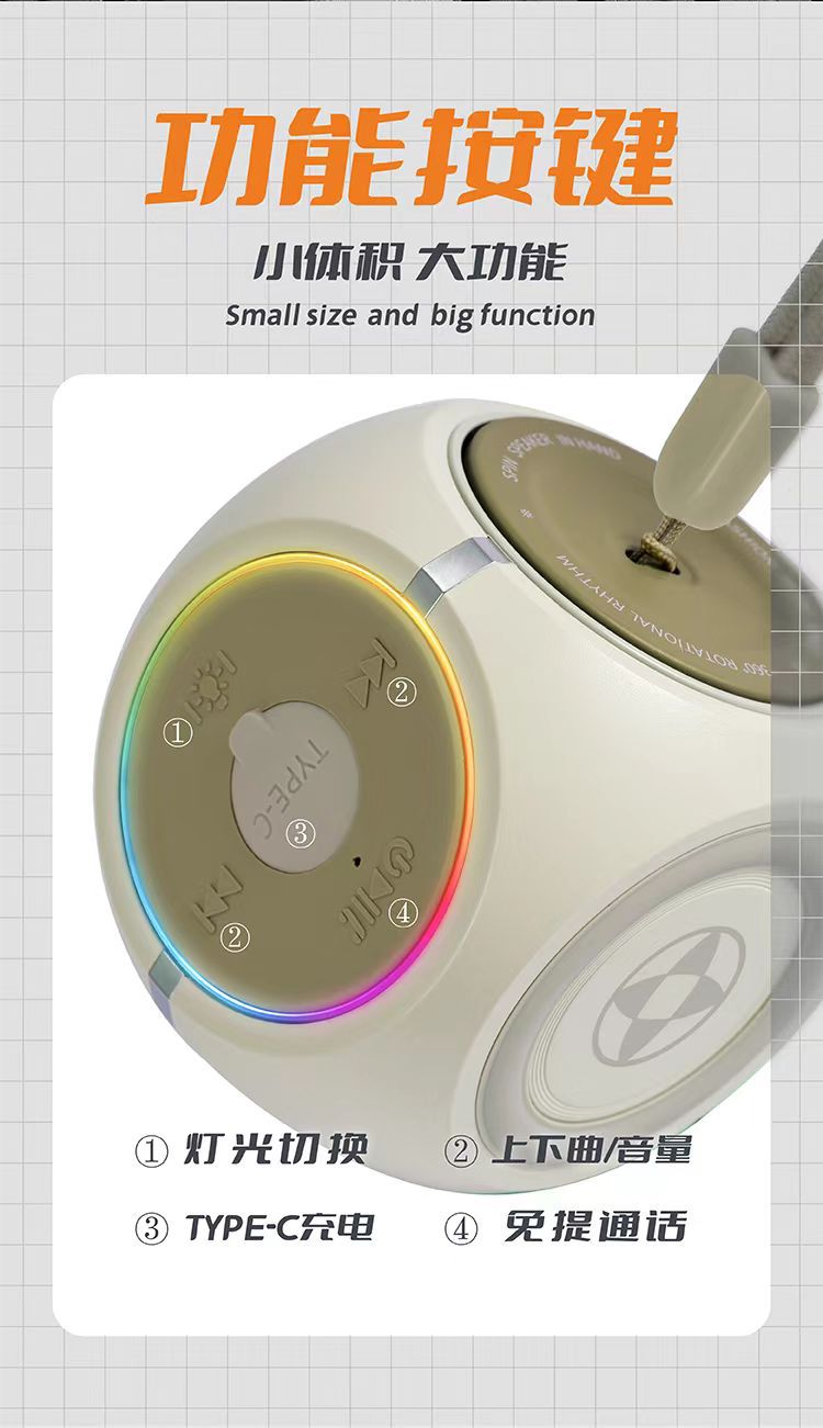 关键词:陀螺音响,蓝牙音响,解压神器,炫彩音响,小音响