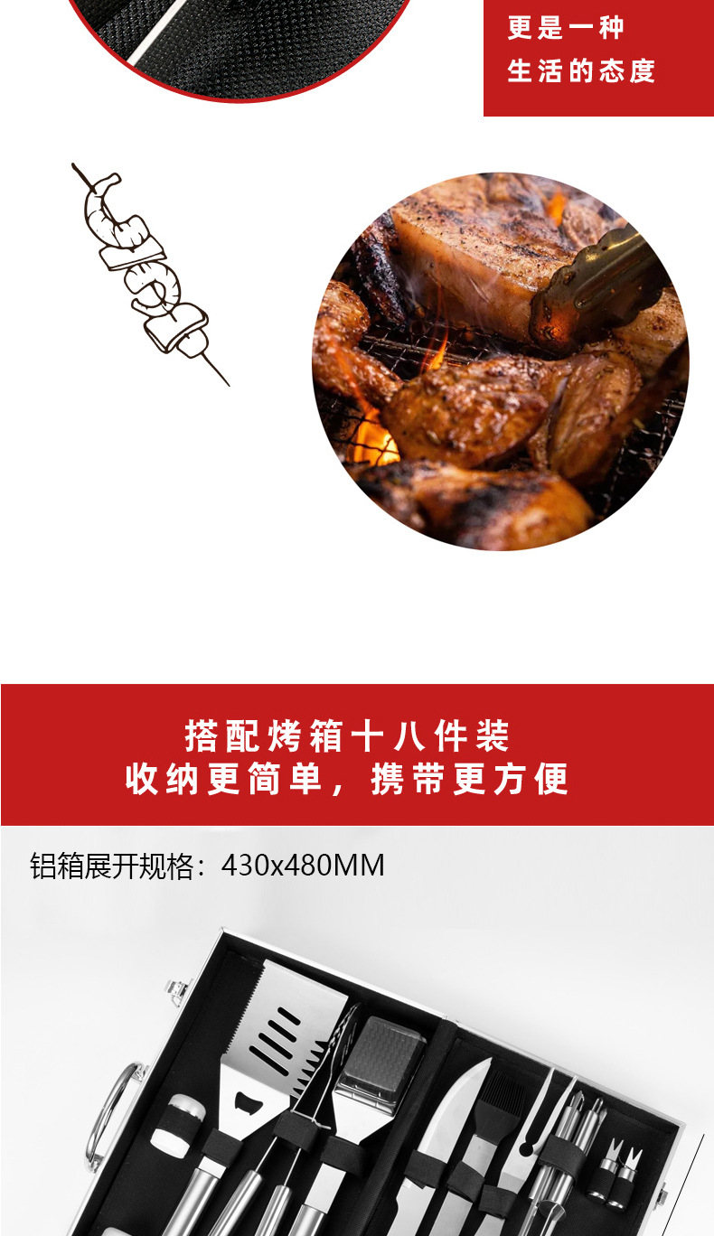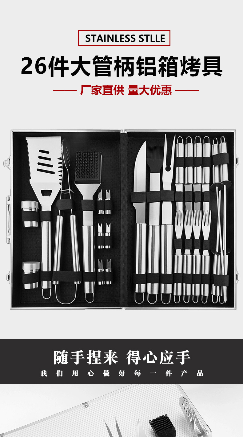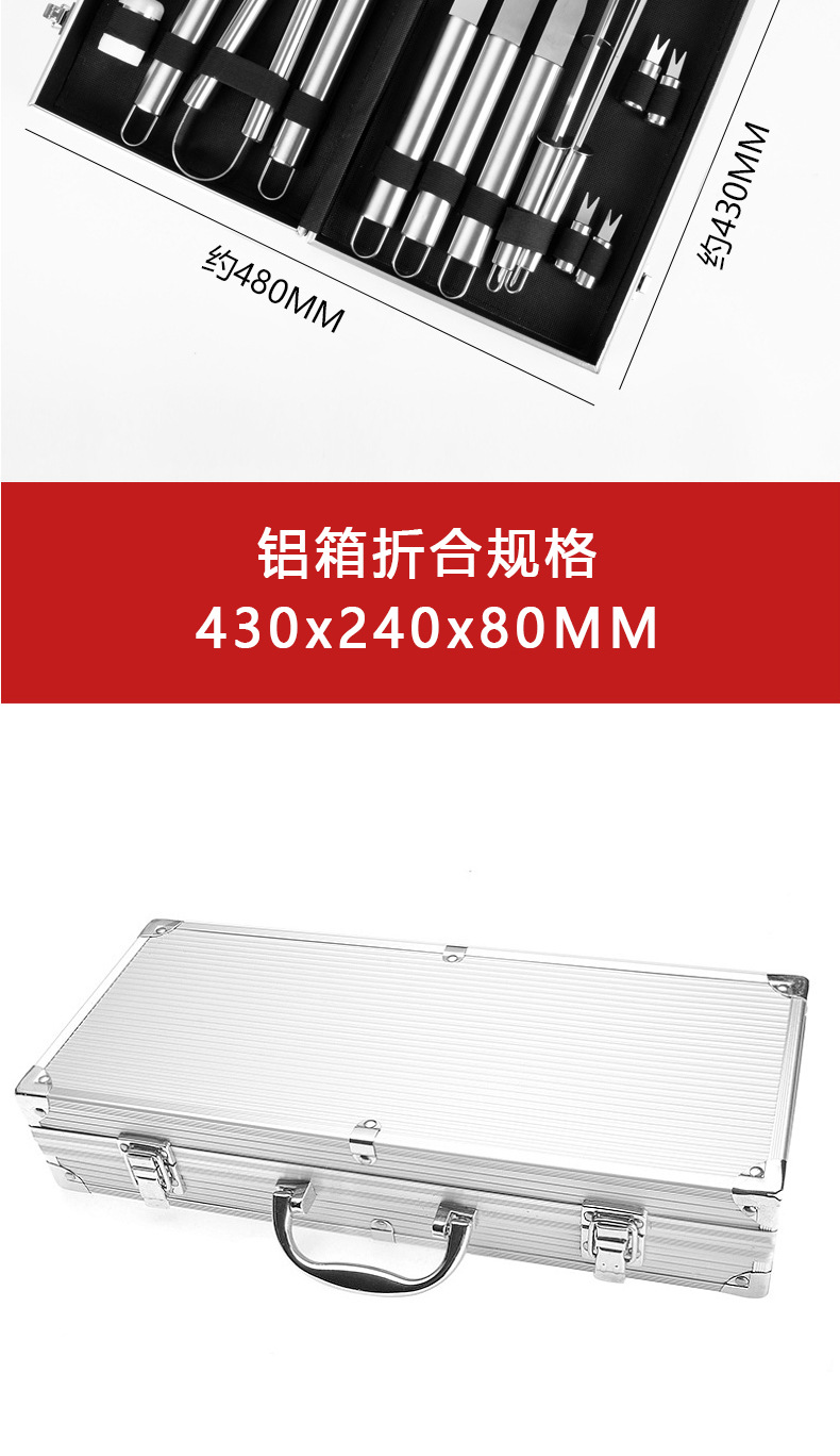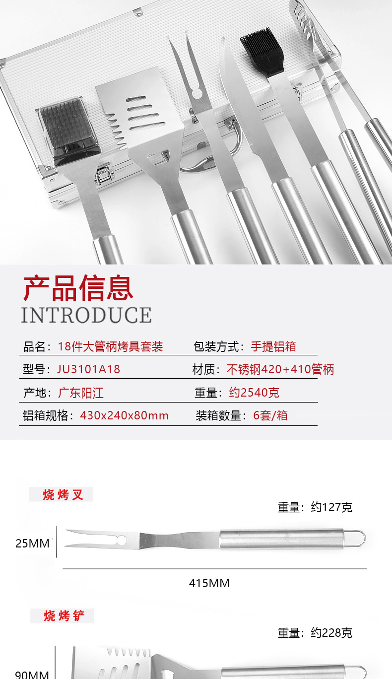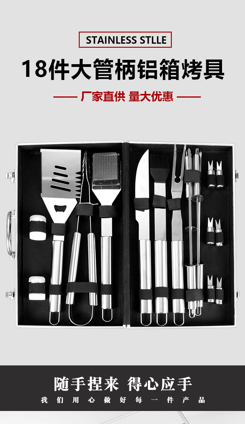 新品厂家铝箱烤具大管柄18件套烤具套装亚马逊跨境电商热卖烤具