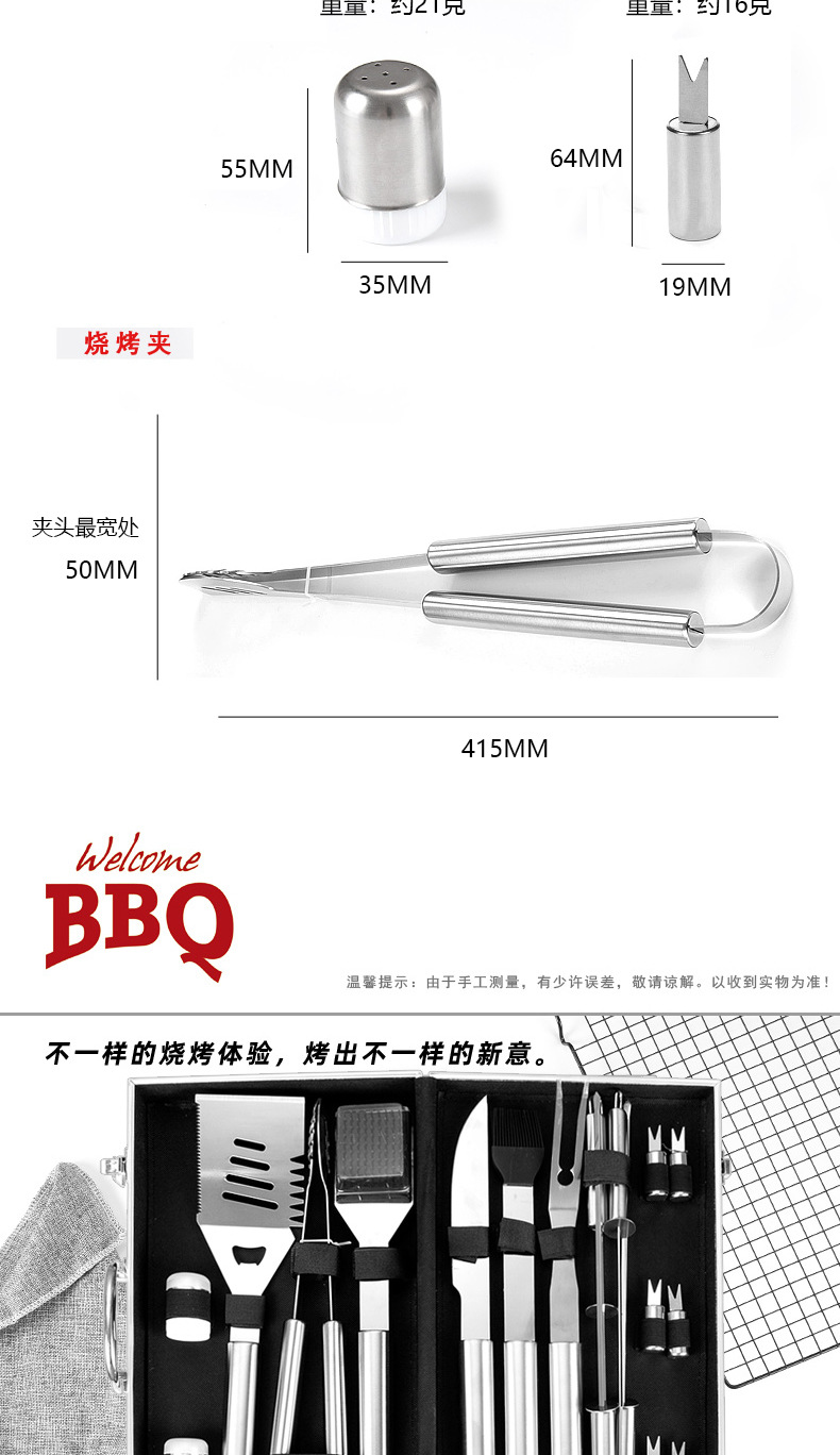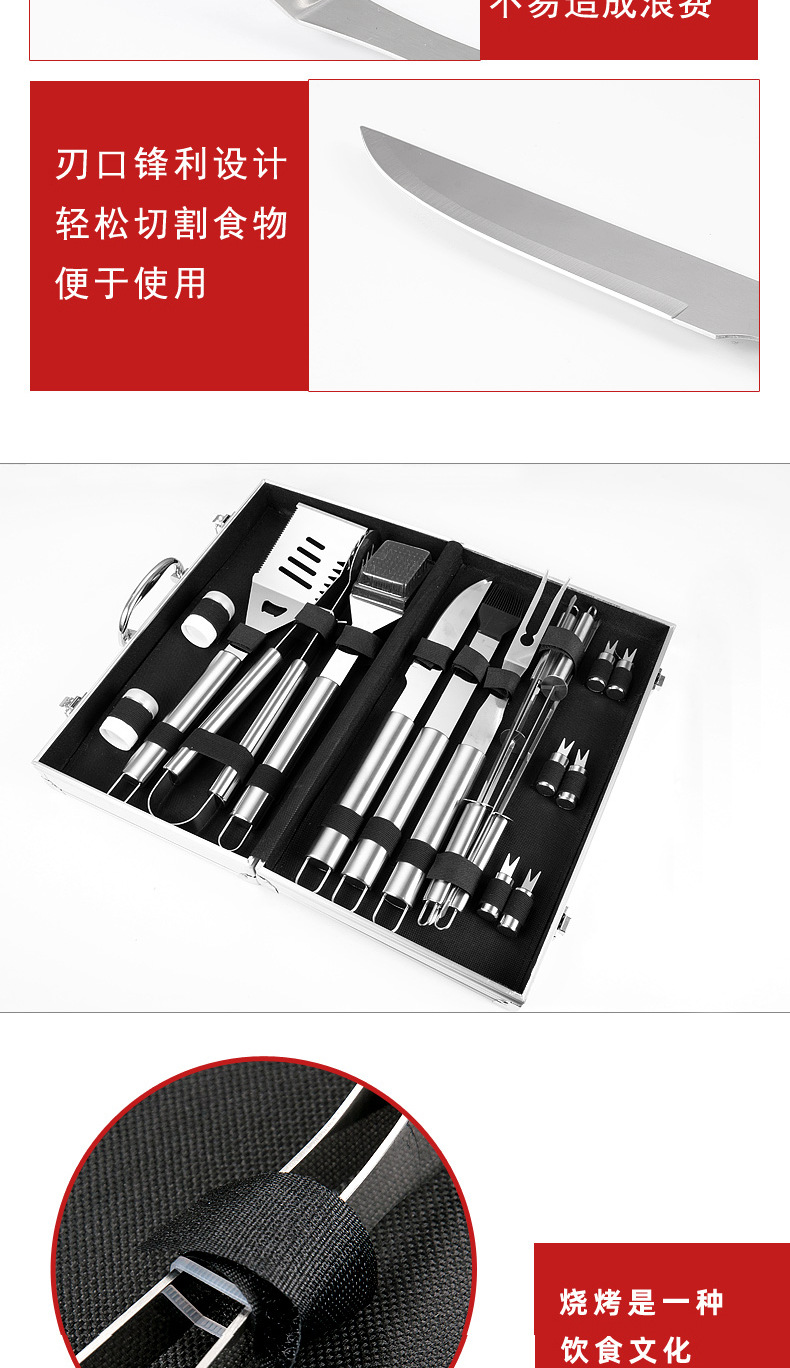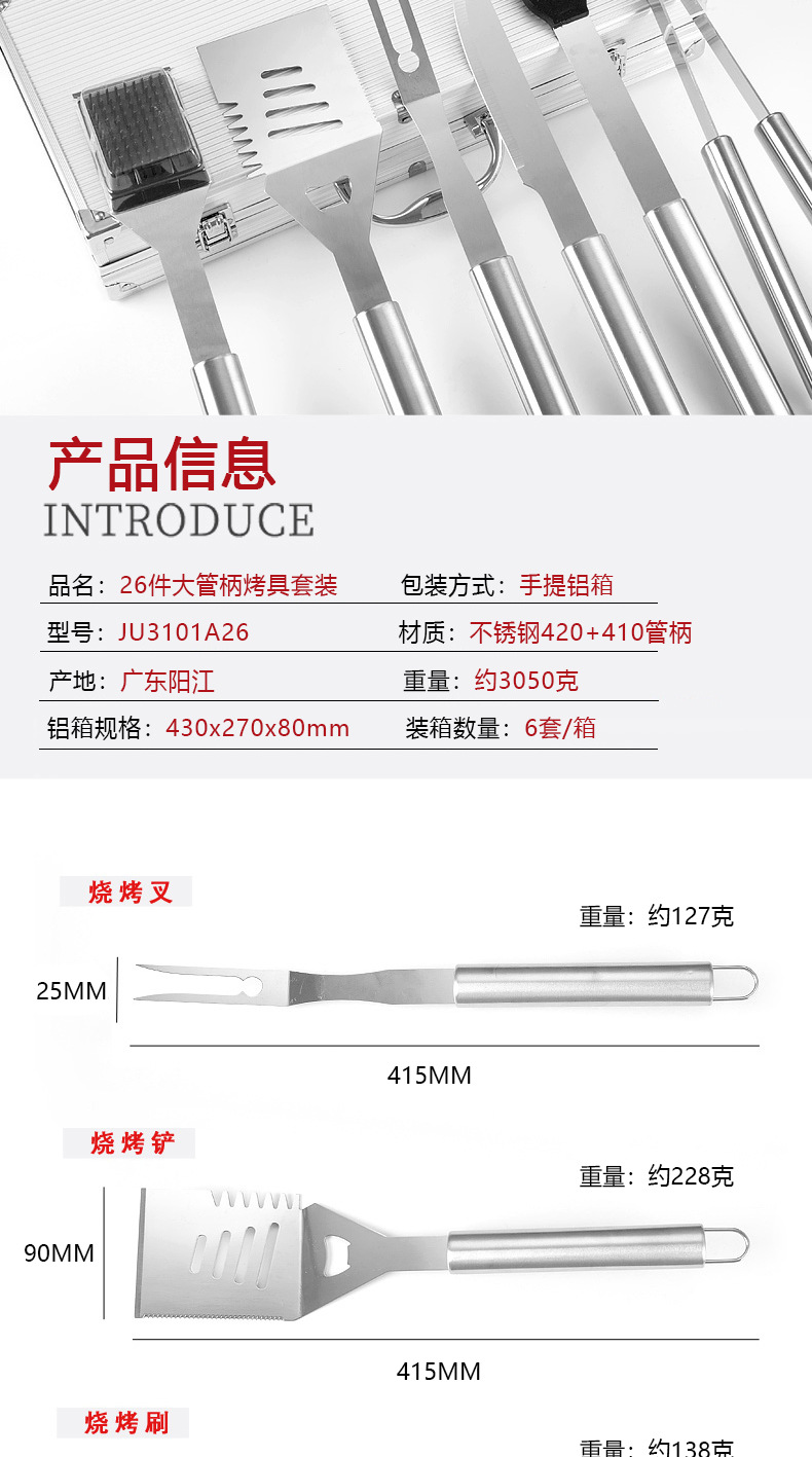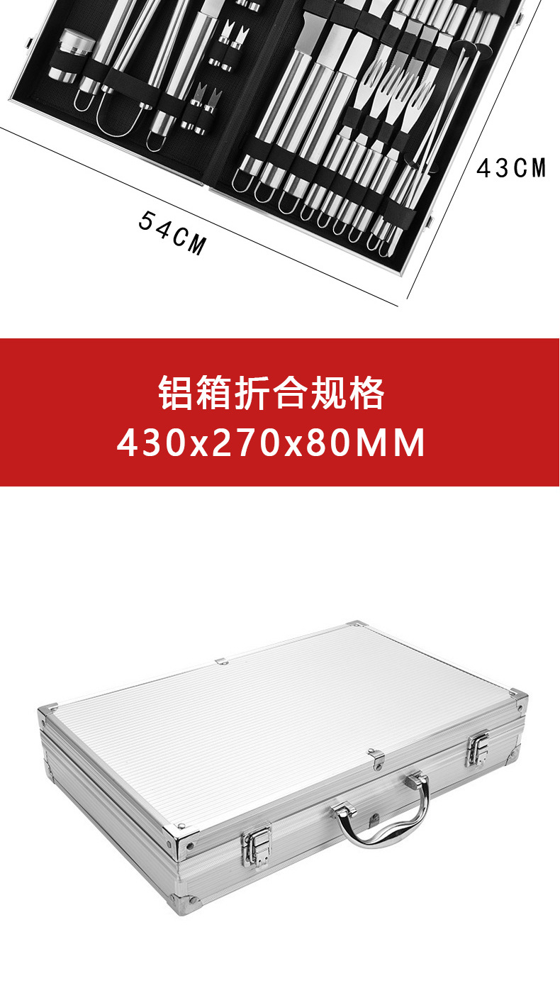 新品厂家铝箱烤具大管柄18件套烤具套装亚马逊跨境电商热卖烤具