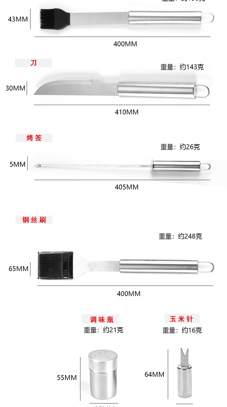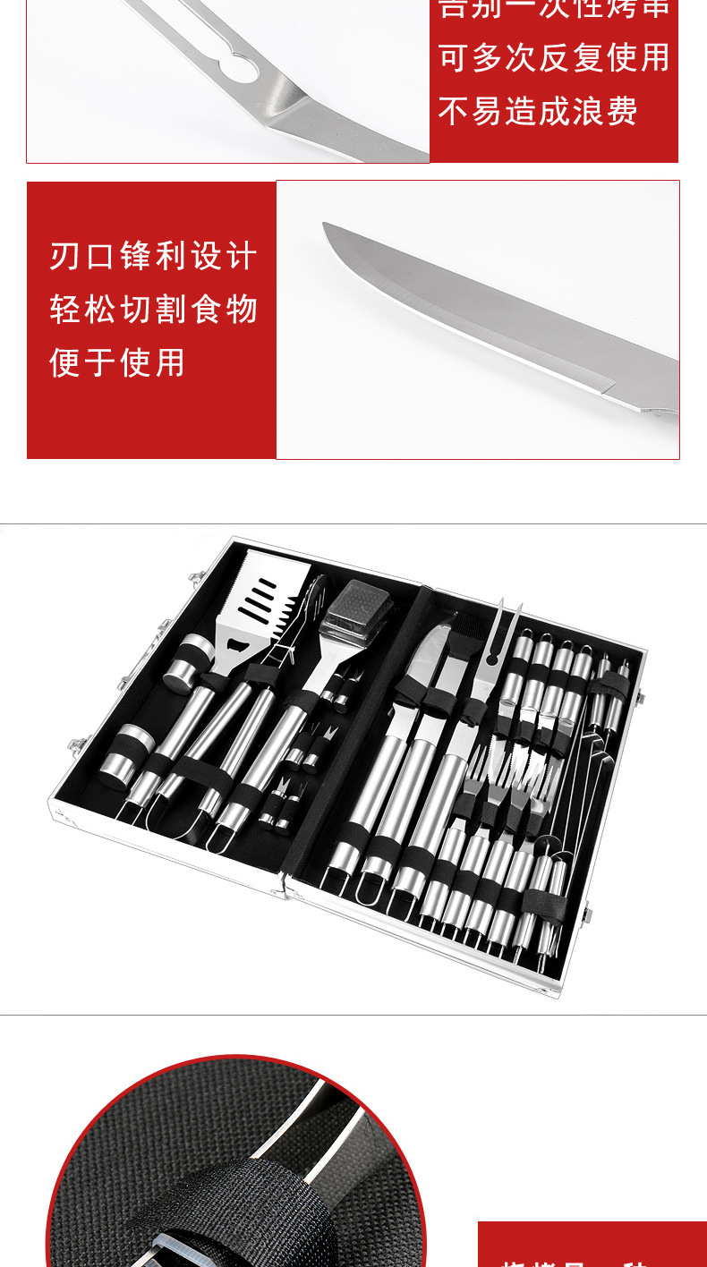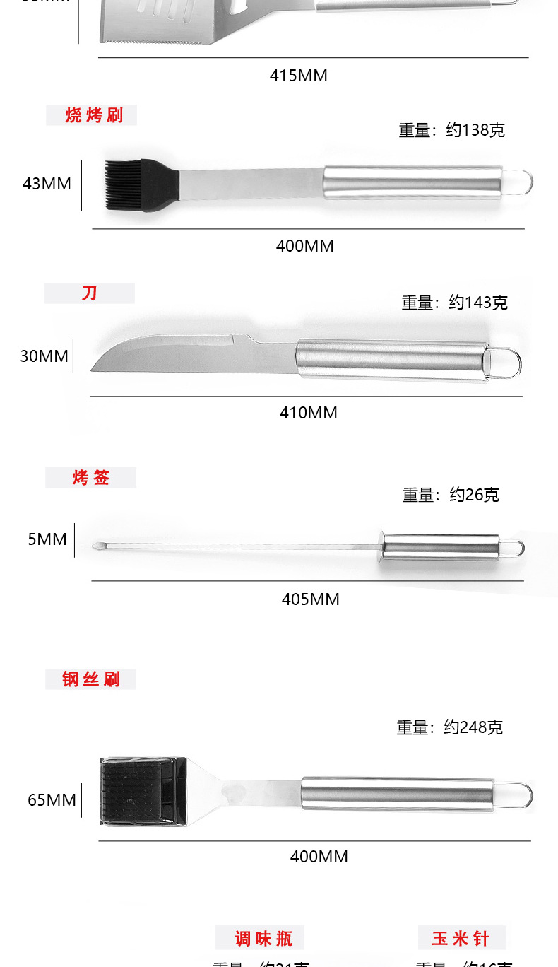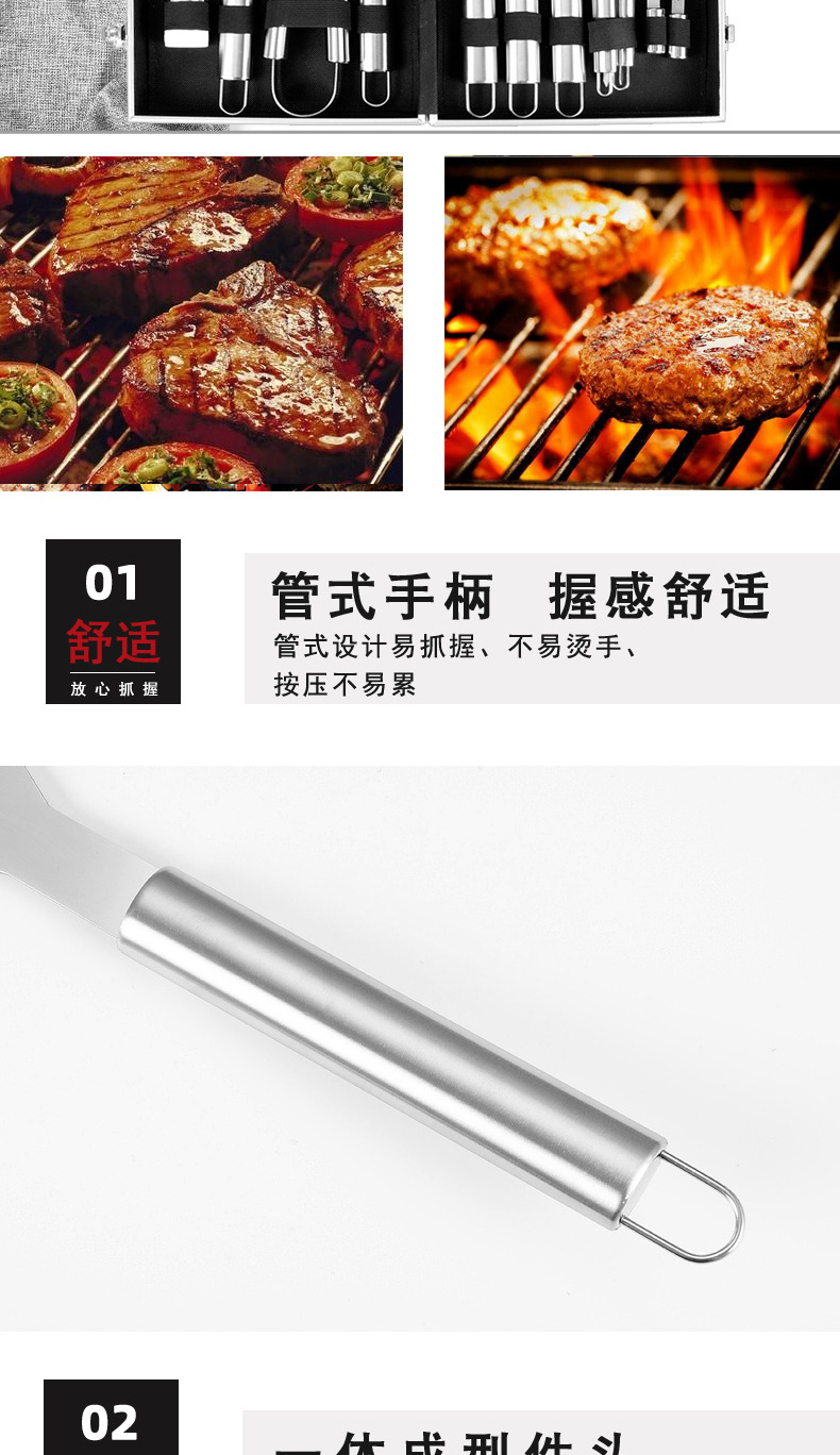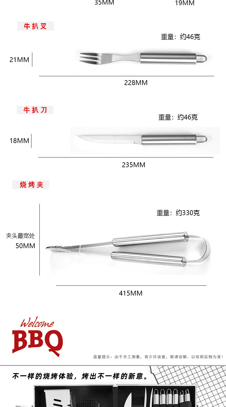 新品厂家铝箱烤具大管柄18件套烤具套装亚马逊跨境电商热卖烤具