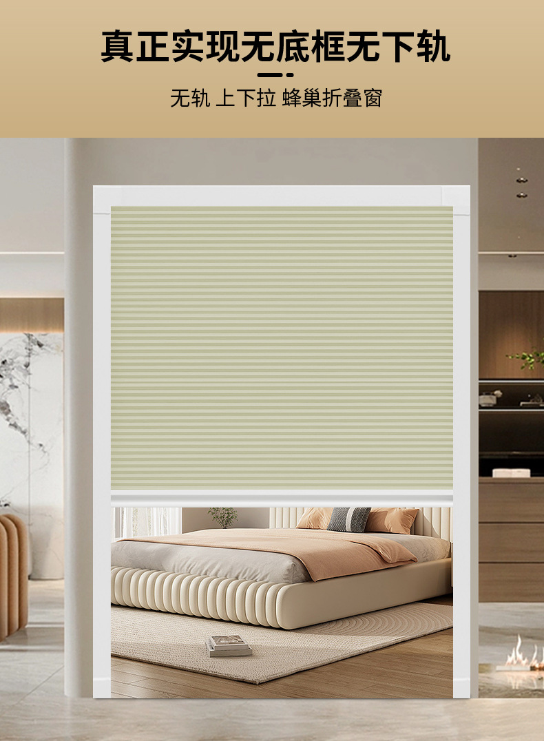 上下无轨推拉式蜂巢帘卧室阳台遮光遮阳折叠隐形帘卫生间隔断窗帘