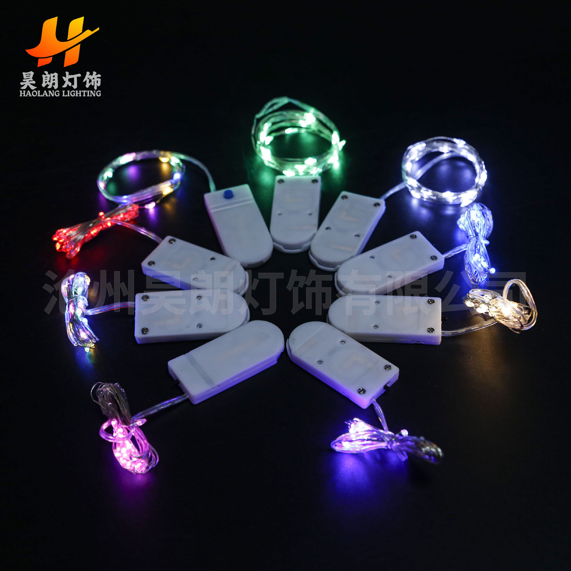 led灯串灯串蛋糕装饰纽扣电池盒三功能带闪氛围感装饰led铜线灯