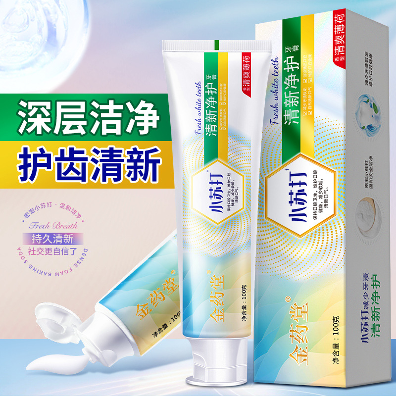 金药堂小苏打清爽薄荷牙膏100g皓齿清新深层洁净牙膏清新口气牙膏