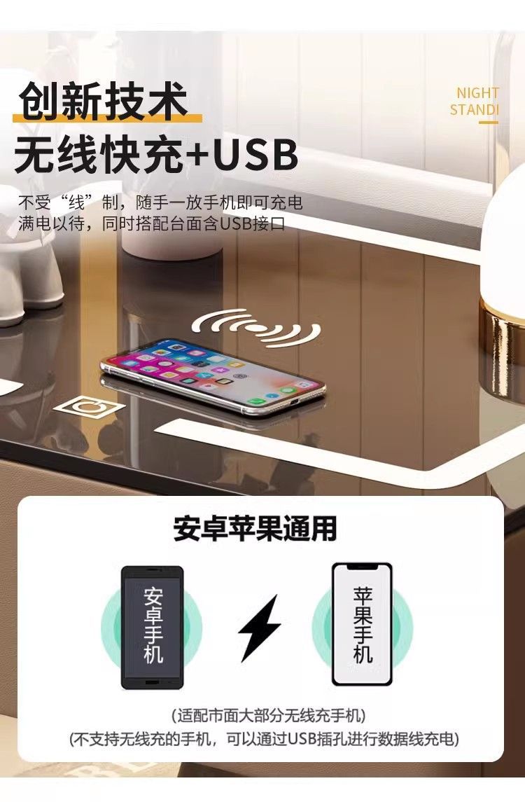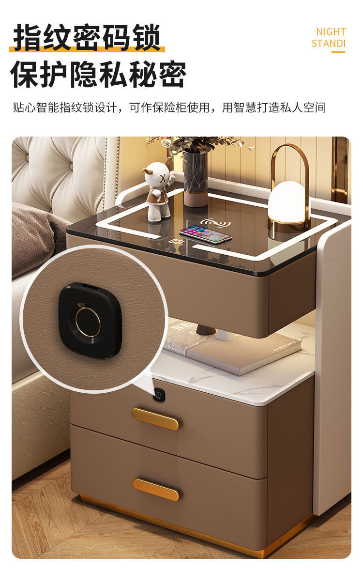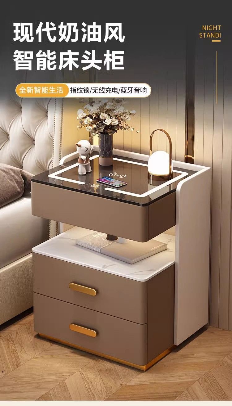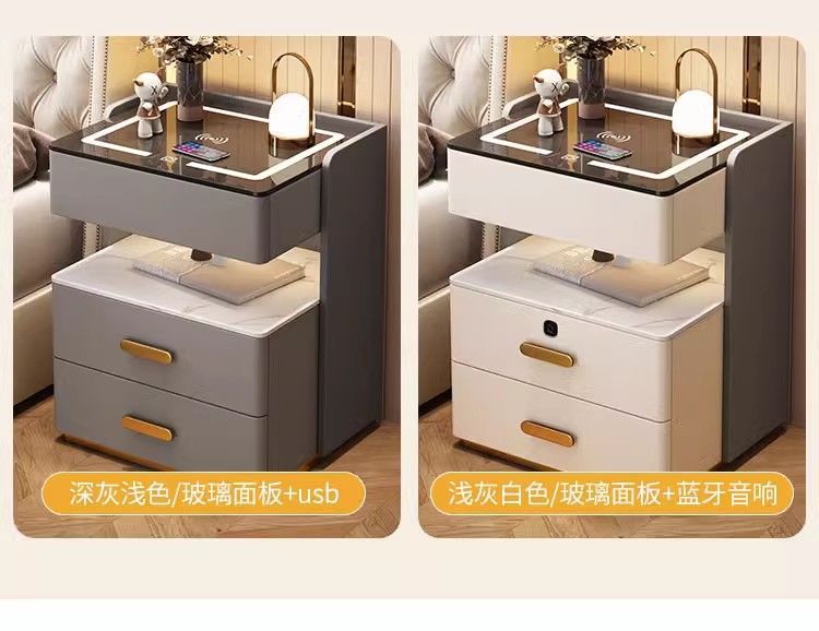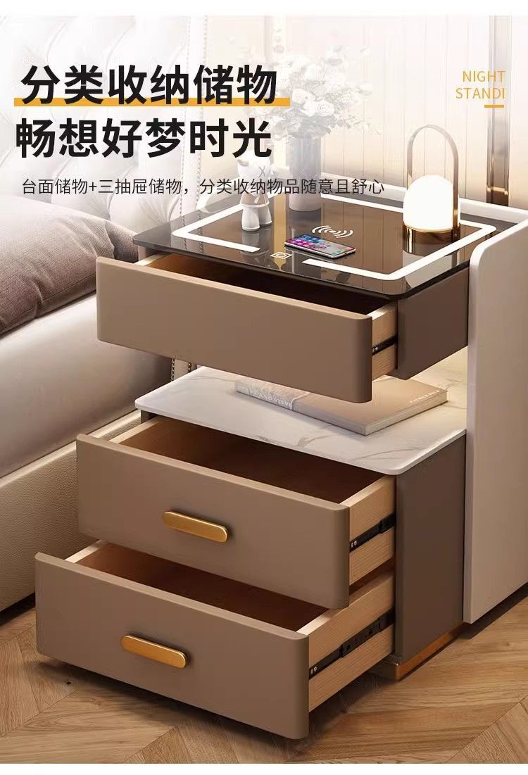 智能床头柜家用卧室多功能无线充带灯整理柜轻奢实木收纳床边柜子