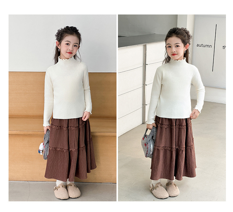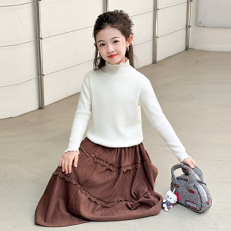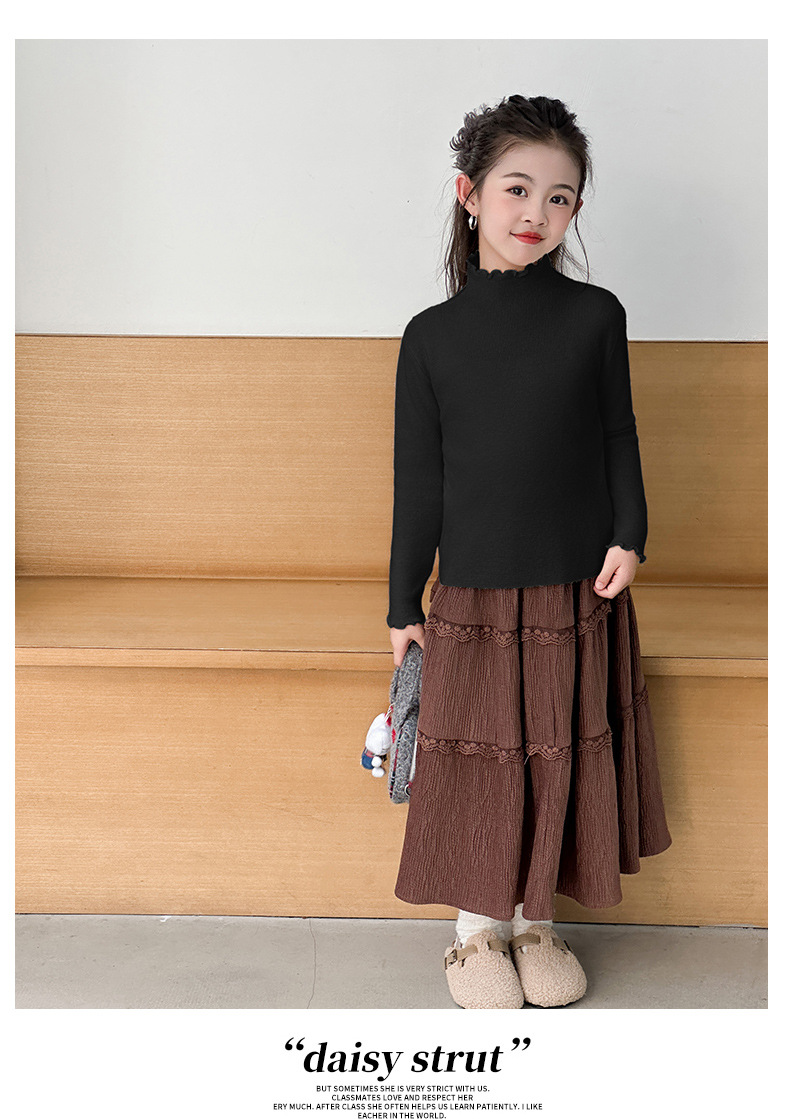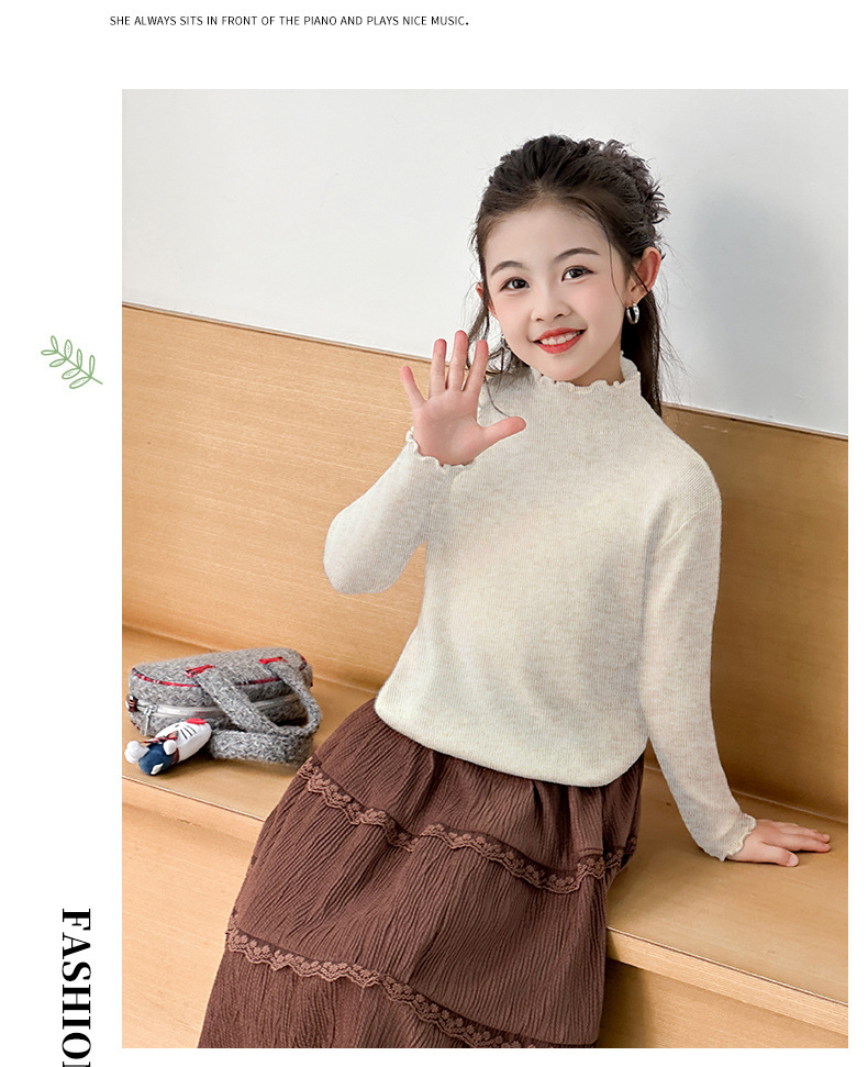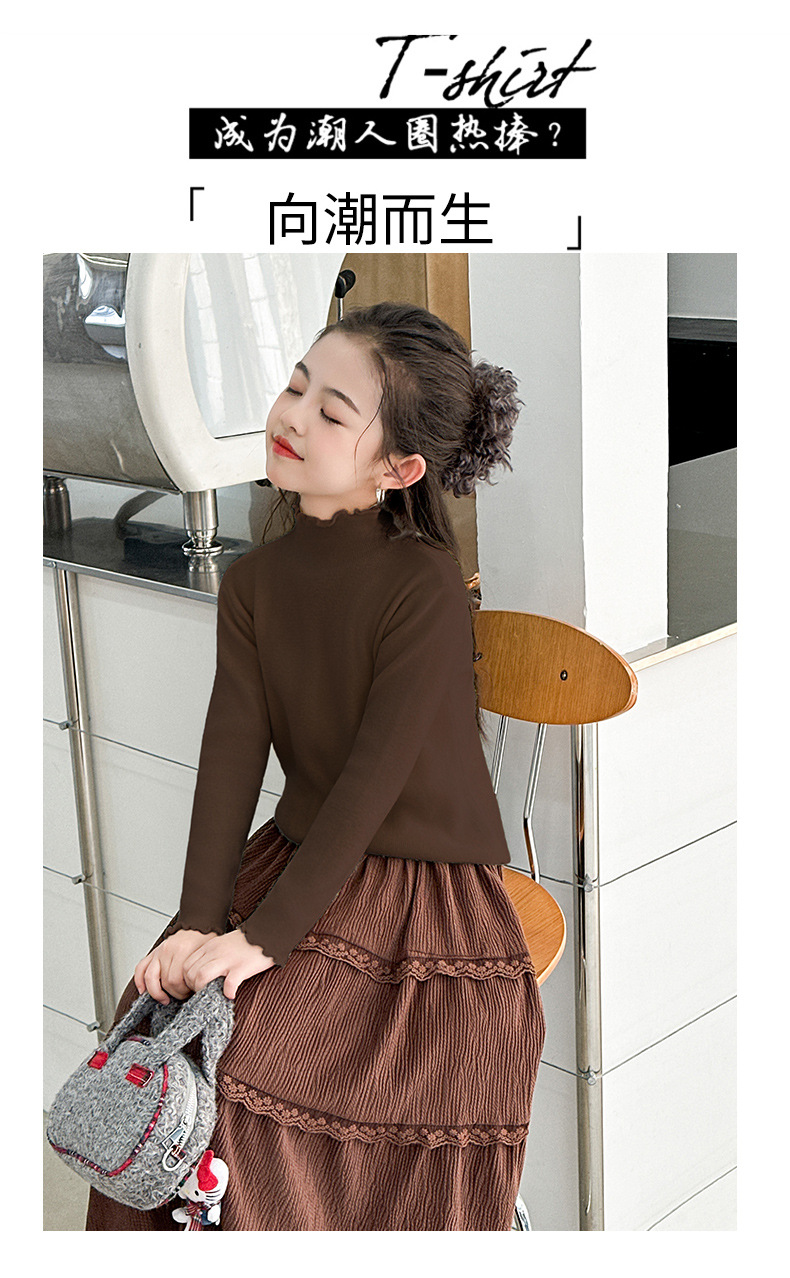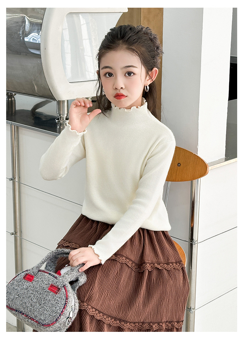 韩国女童装打底衫宝宝洋气儿童个性潮牌韩版纯色木耳边半高领毛衣