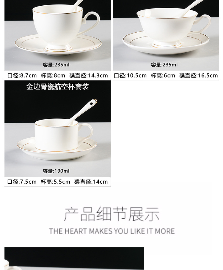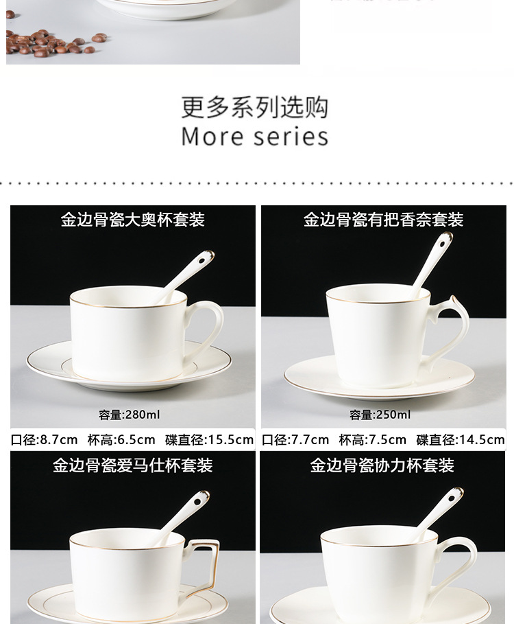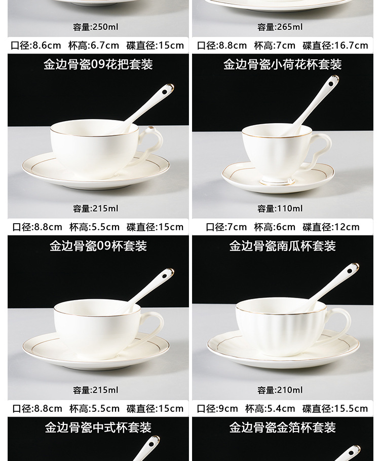 金边骨瓷咖啡杯套装小奢花陶瓷英式杯碟酒店欧式美式咖啡器具商业