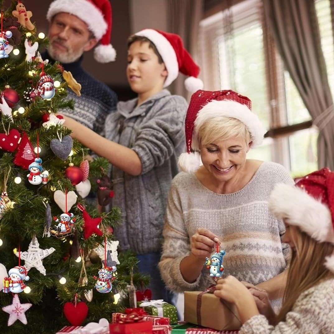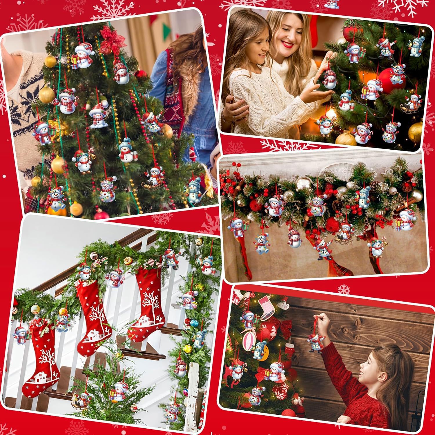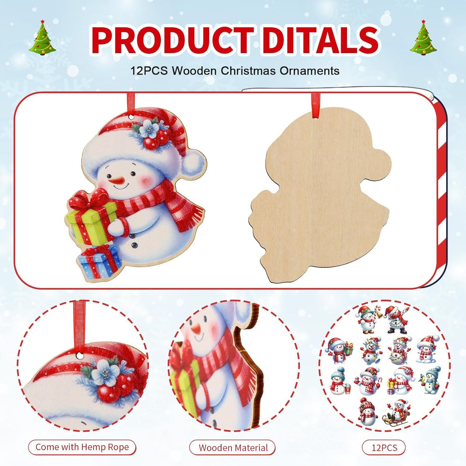 24件 雪人圣诞装饰品 木制挂饰圣诞树雪人装饰窗户室内家庭圣诞节