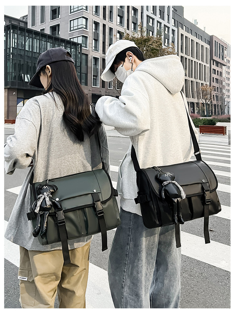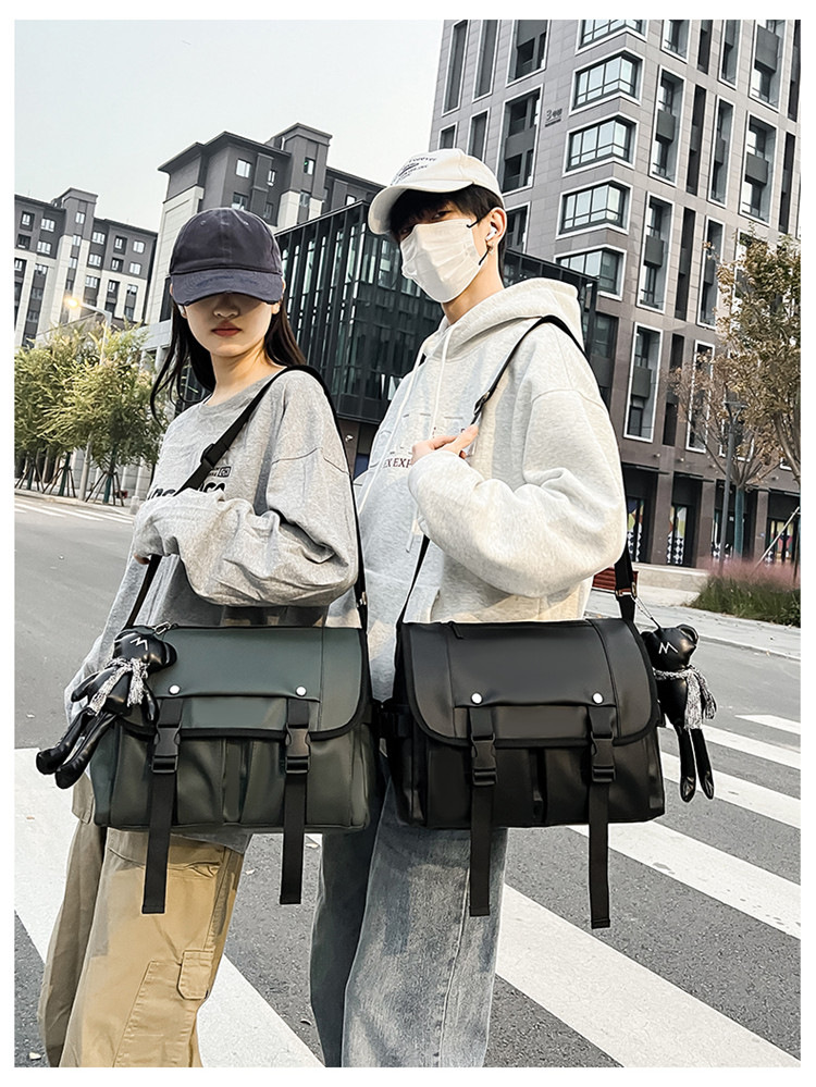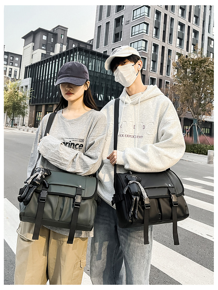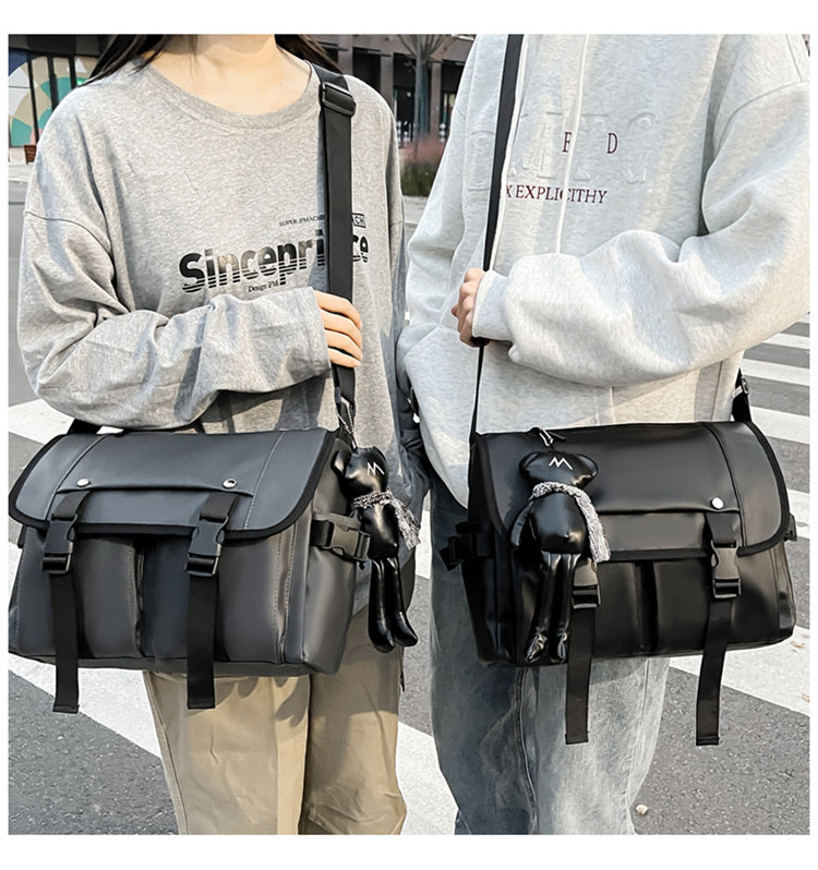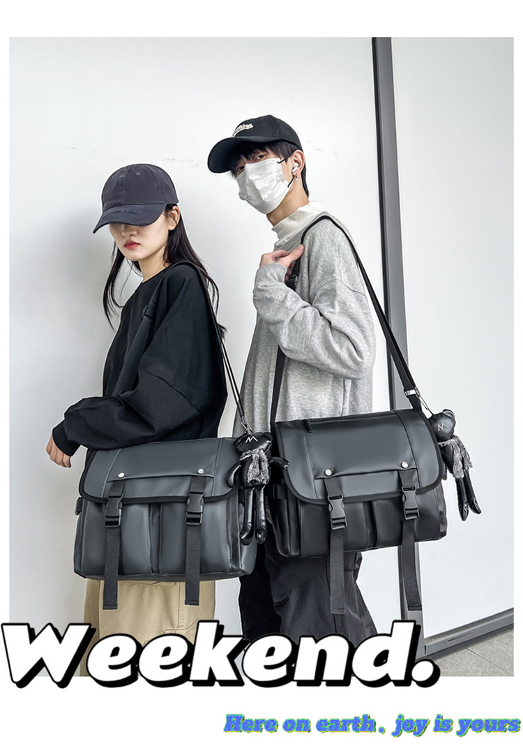 韩版潮流休闲情侣包包大容量工装风户外单肩包皮膜通勤旅行斜挎包